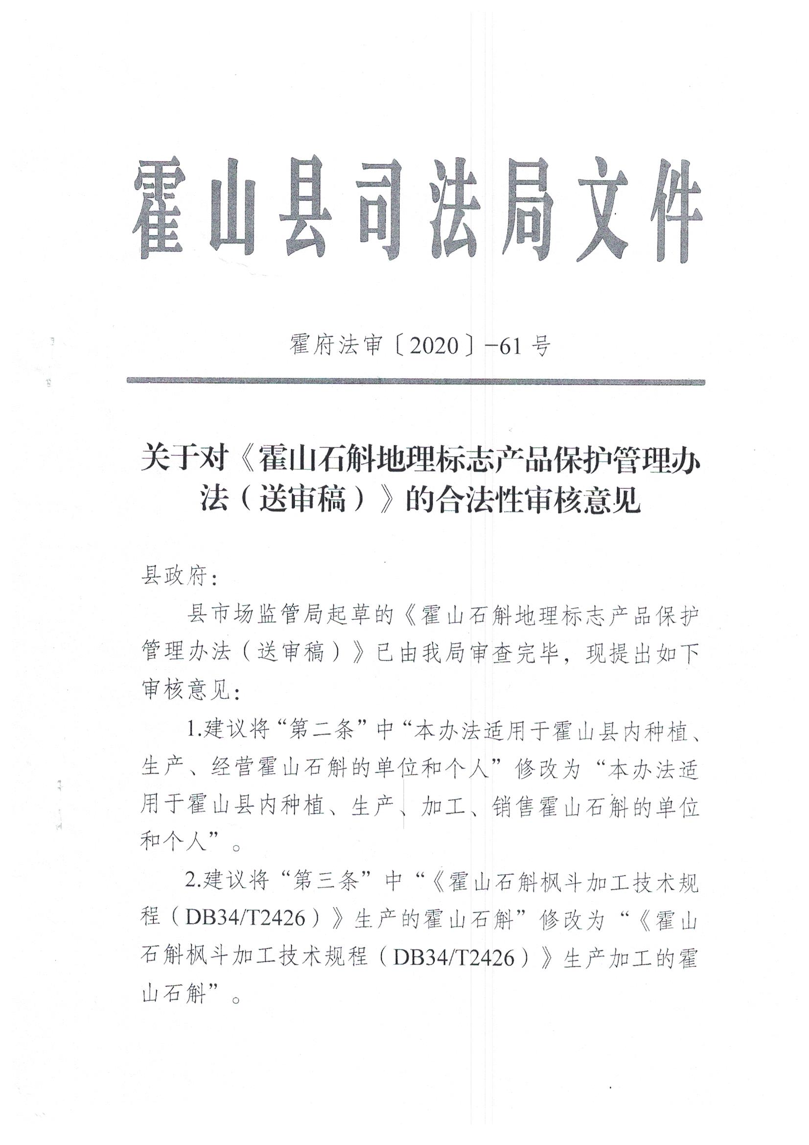 【合法性审查】《霍山石斛地理标志产品保护管理办法》合法性审核意见