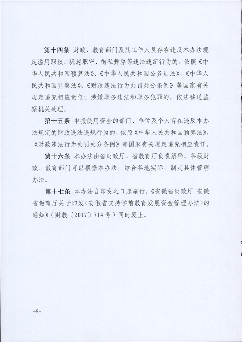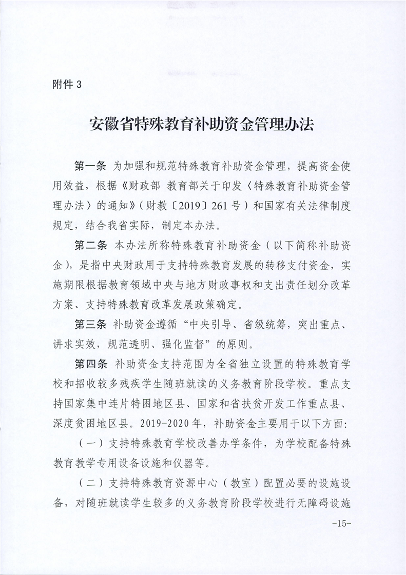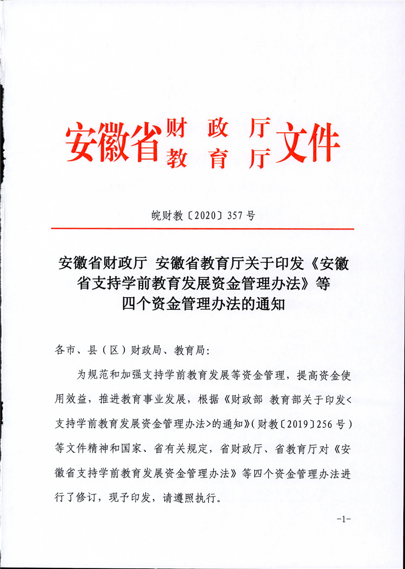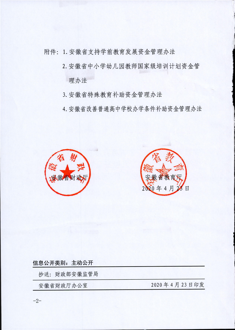 安徽省财政厅 安徽省教育厅关于印发《安徽省支持学期教育发展资金管理办法》等四个资金管理办法的通知