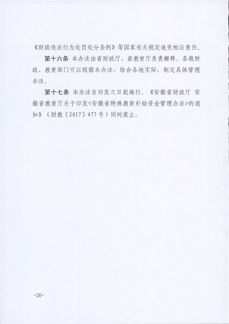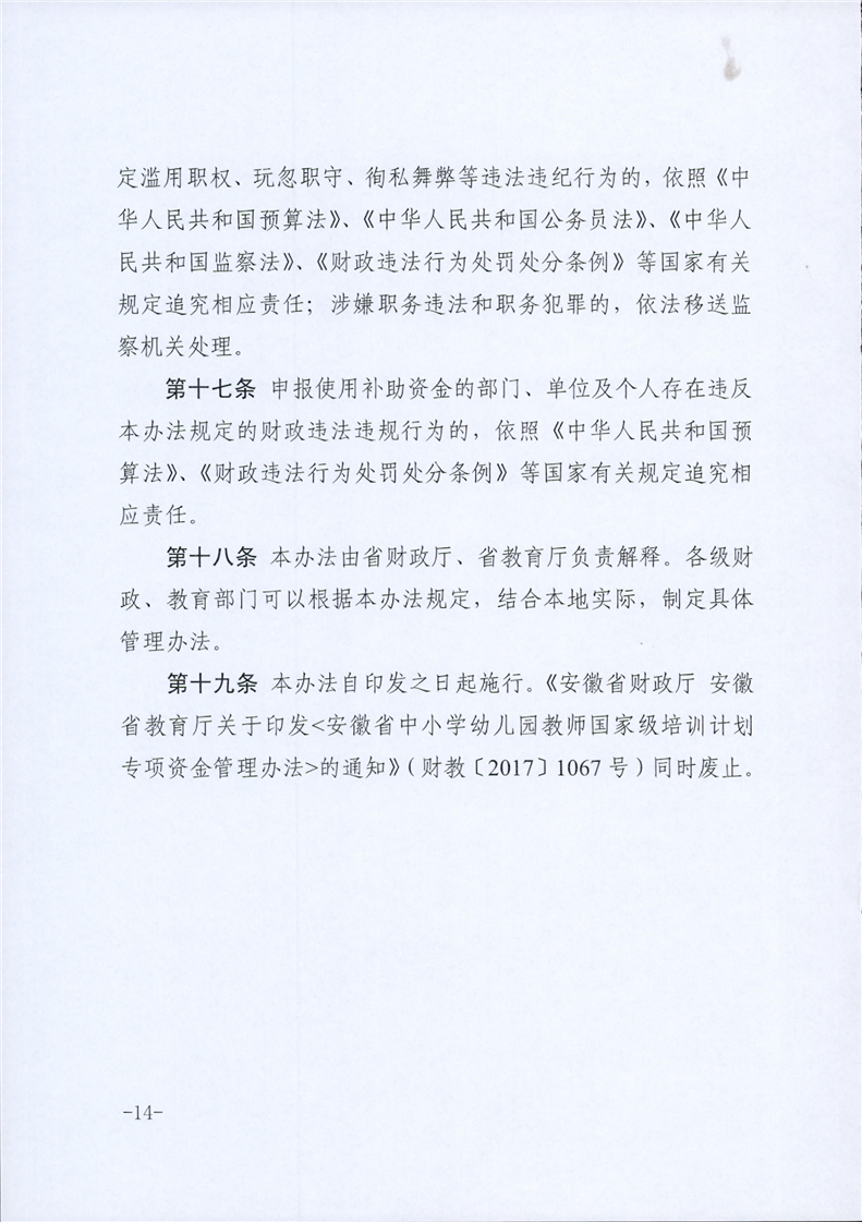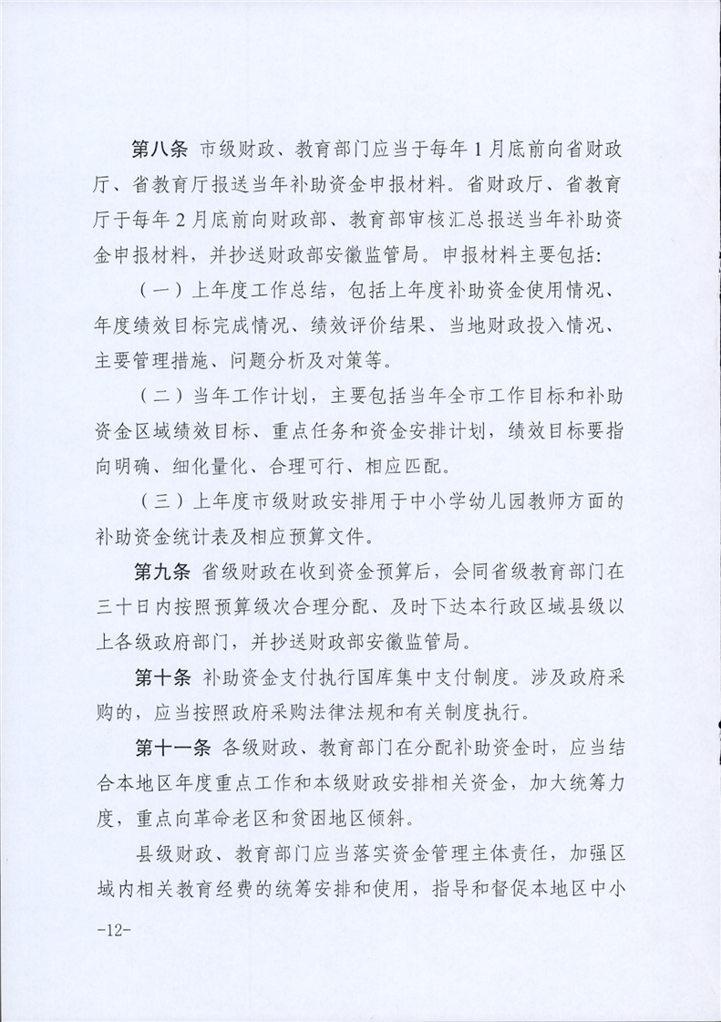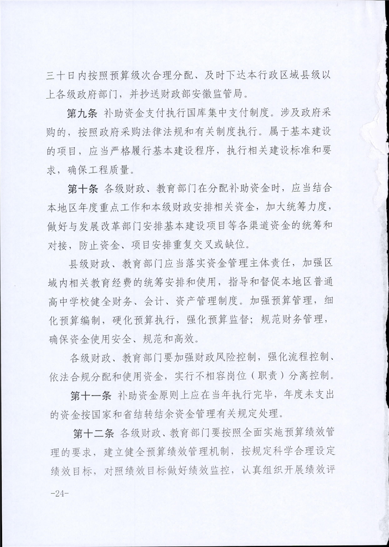 安徽省财政厅 安徽省教育厅关于印发《安徽省支持学期教育发展资金管理办法》等四个资金管理办法的通知