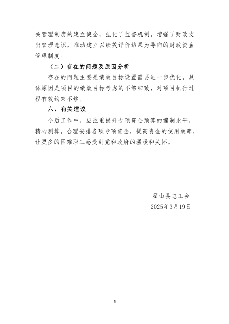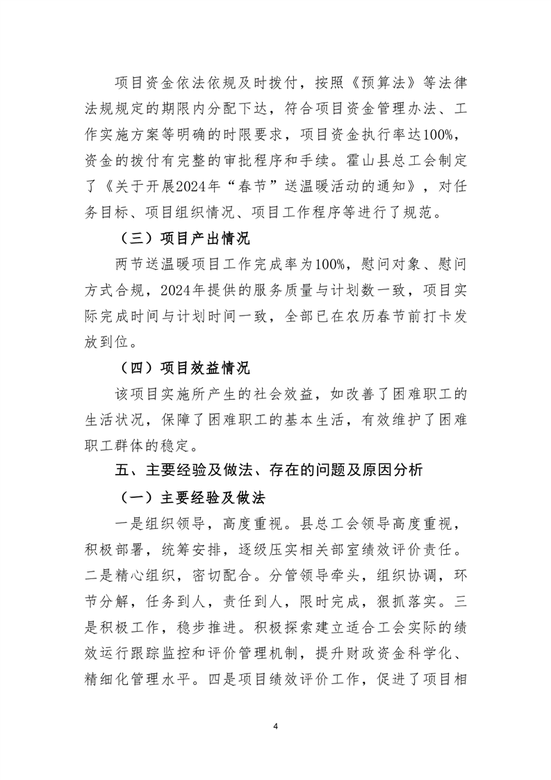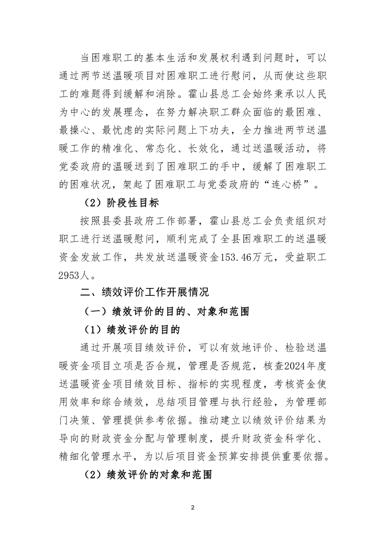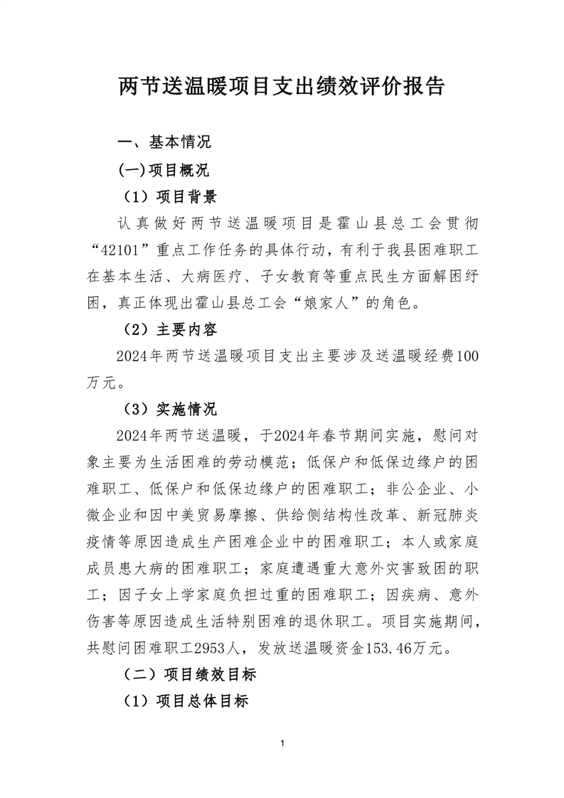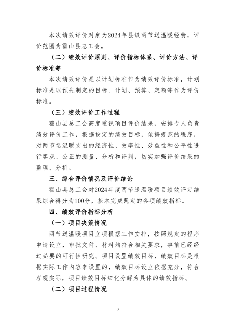 霍山县总工会2024年度两节送温暖项目支出绩效评价报告