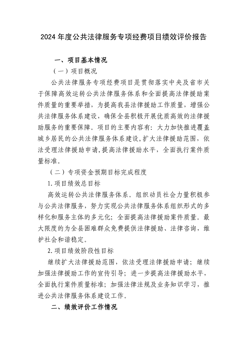 霍山县司法局2024年度公共法律服务专项经费项目绩效评价报告