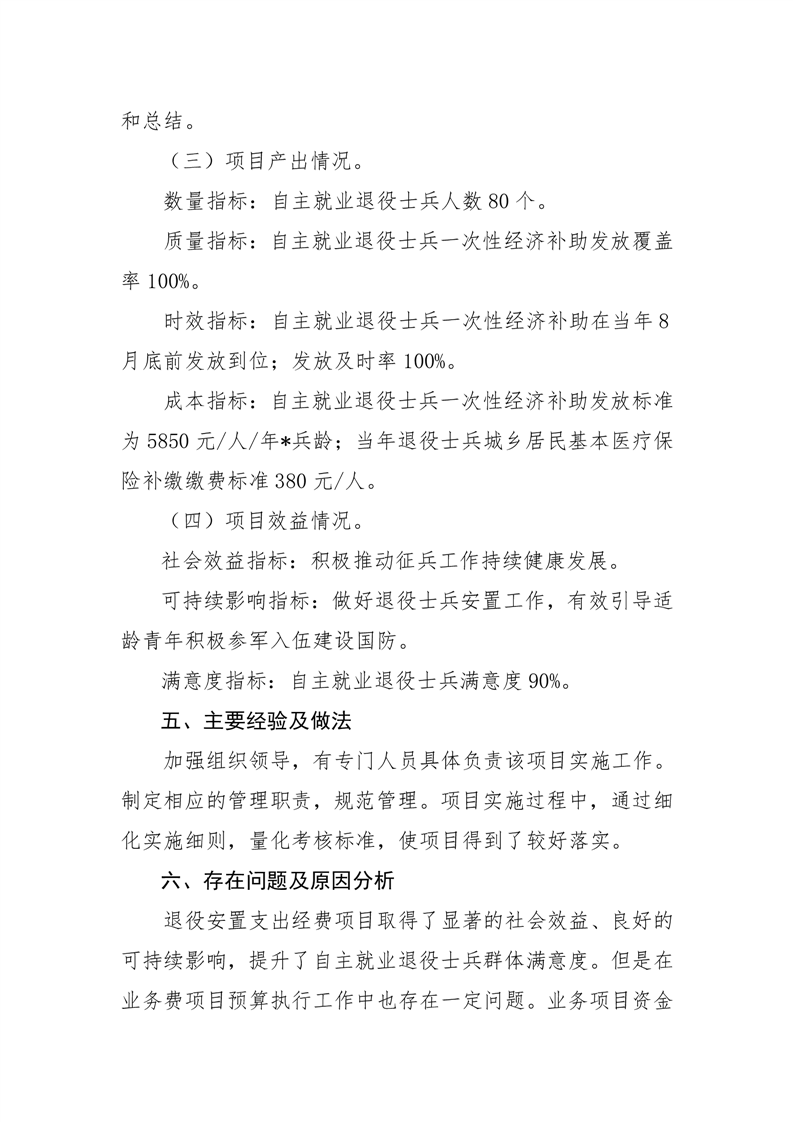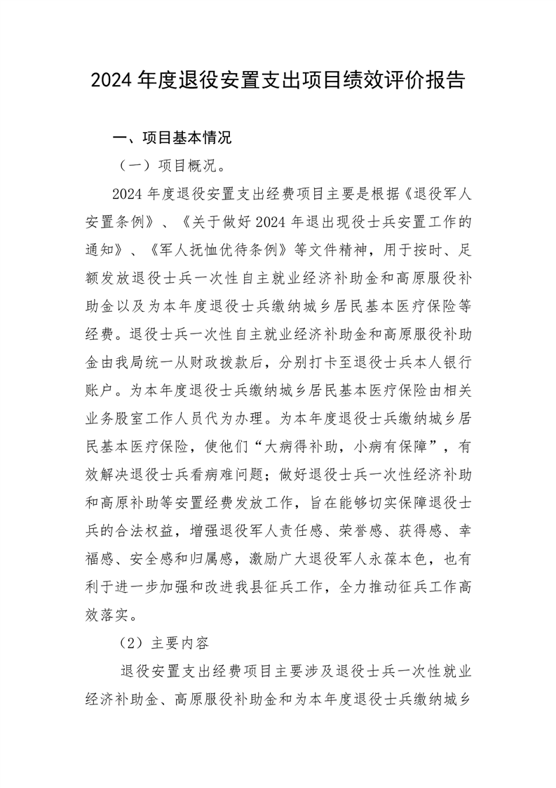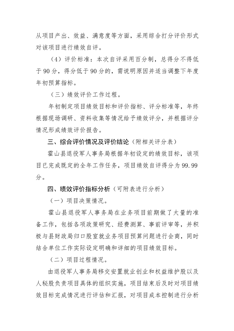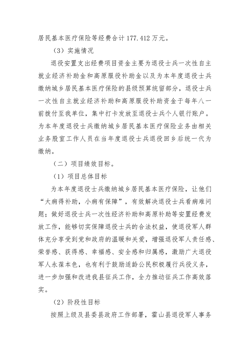 霍山县退役军人事务局2024年度退役安置支出项目绩效评价报告