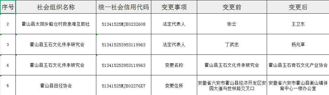 霍山县民政局2025年第三季度社会团体变更情况
