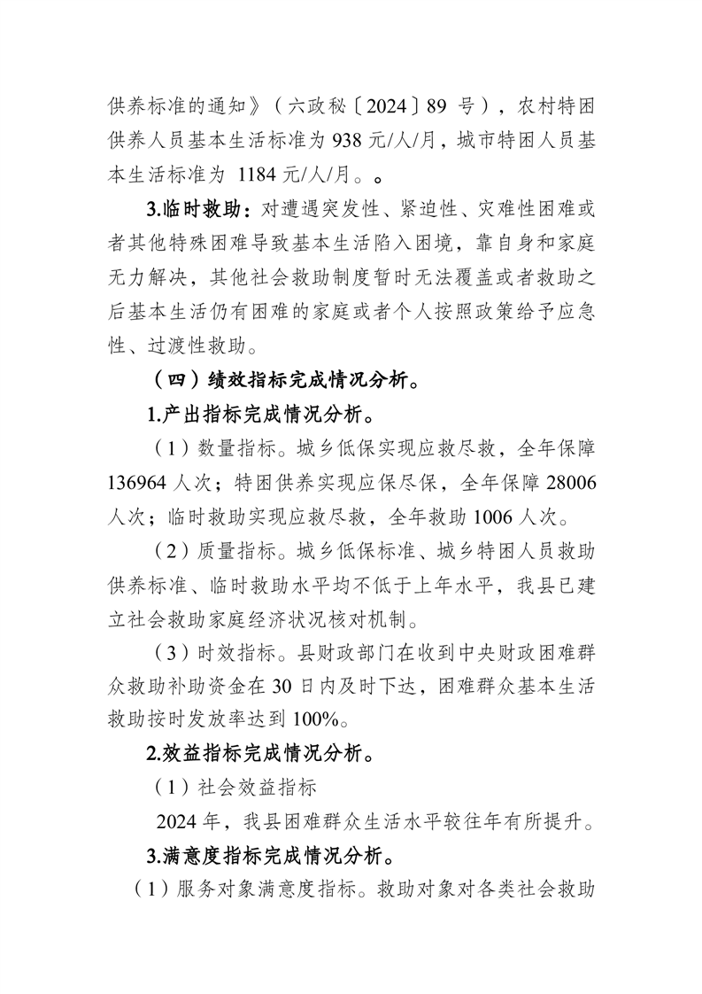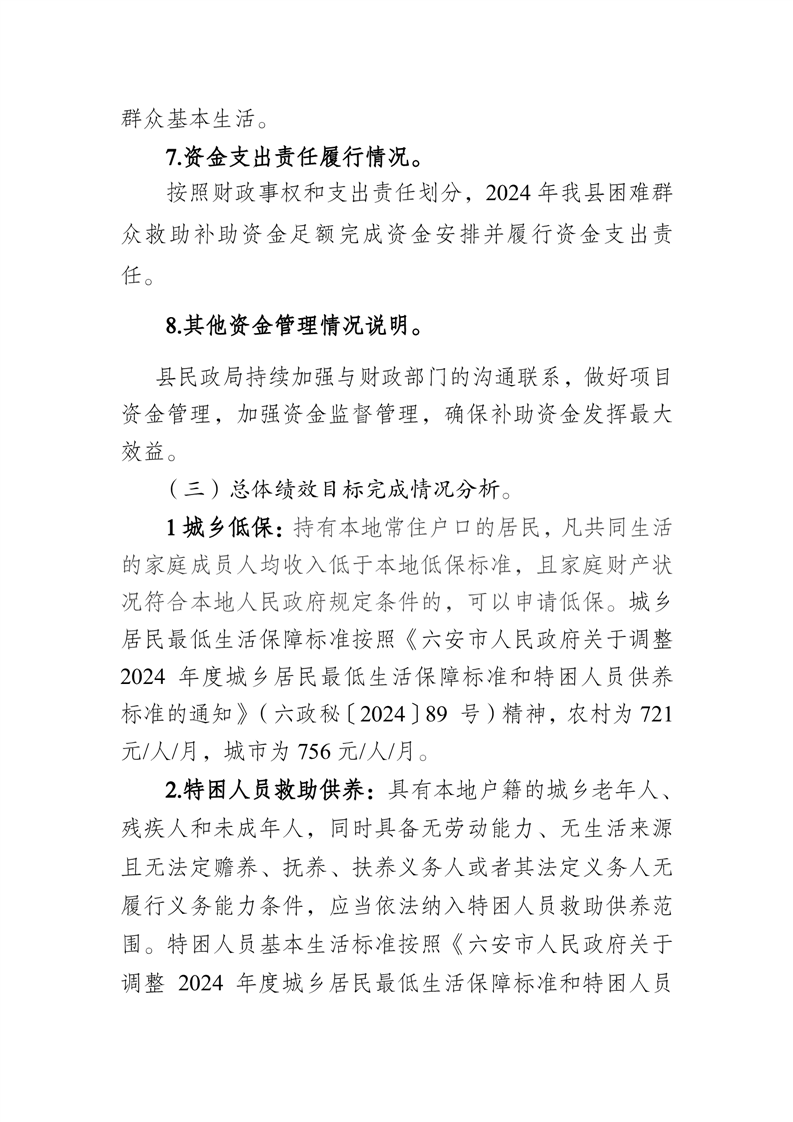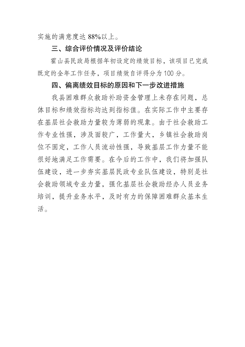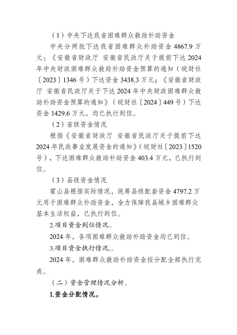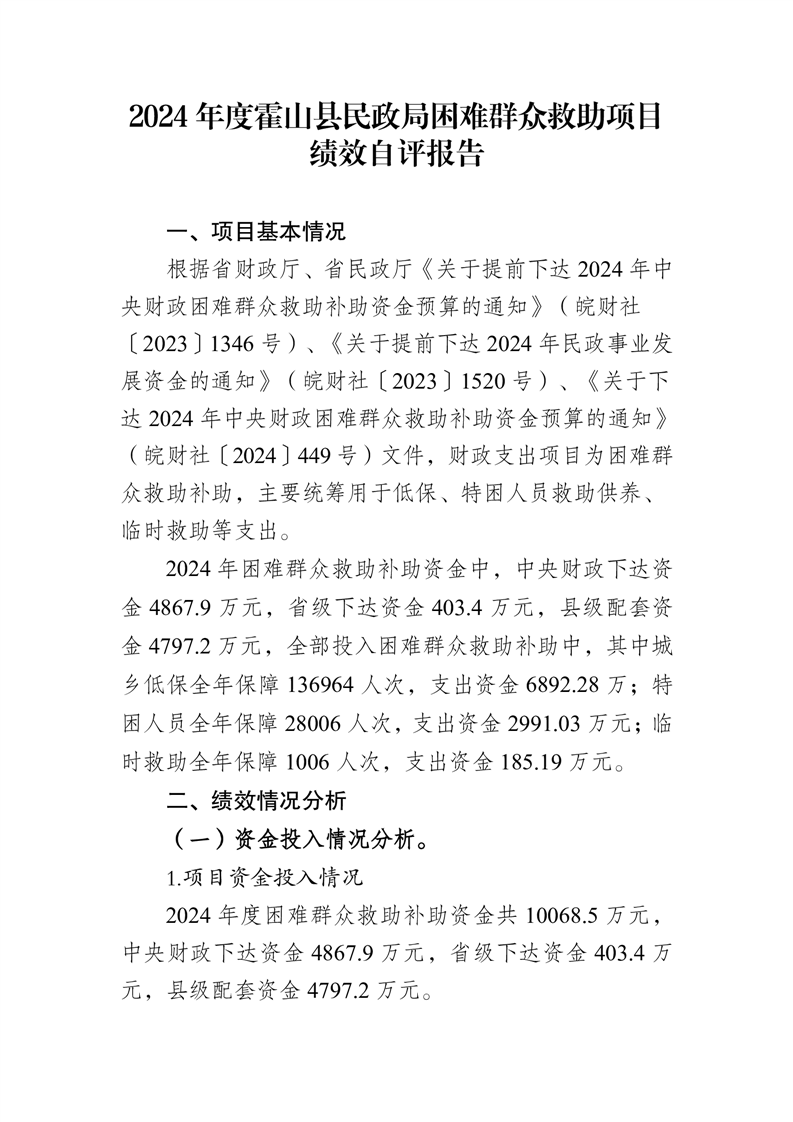 2024年度霍山县民政局困难群众救助项目绩效自评报告