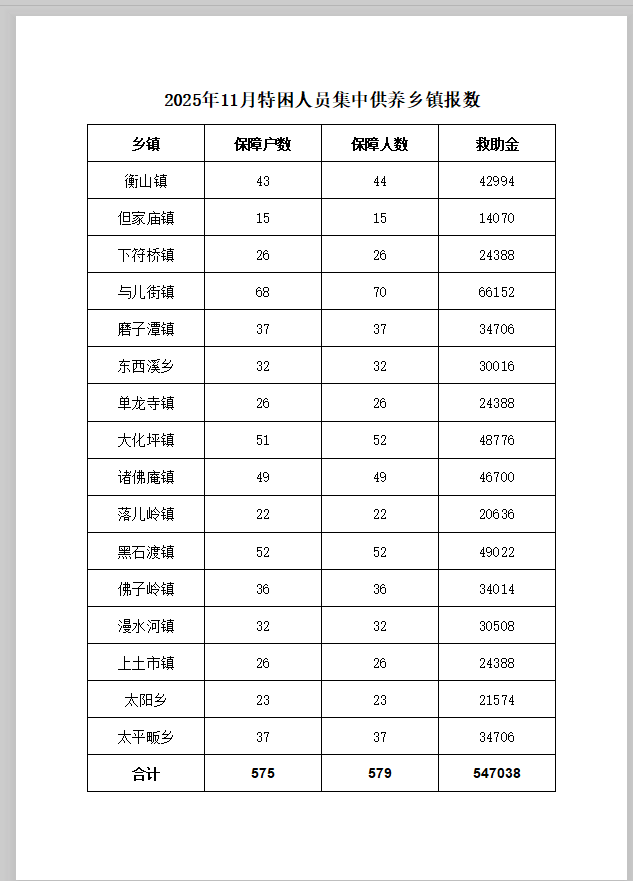 霍山县民政局2025年11月城乡特困人员救助供养拨款统计表