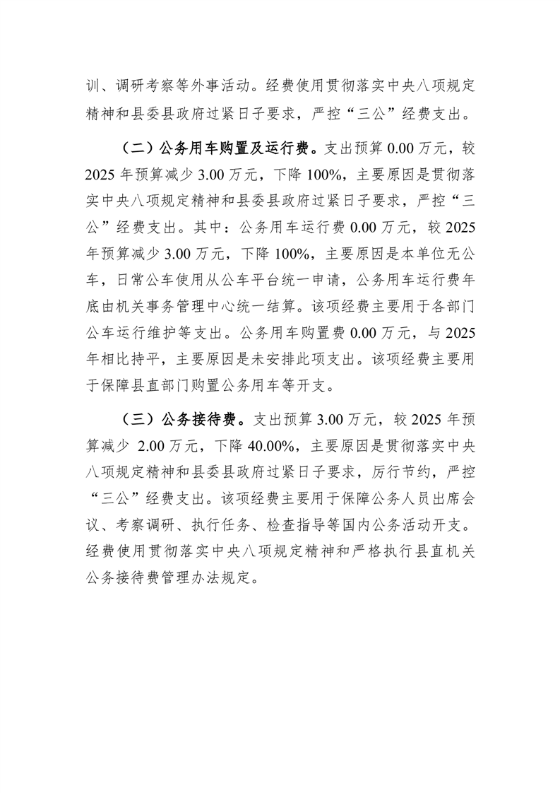 霍山县退役军人事务局2026年一般公共预算安排“三公”经费情况