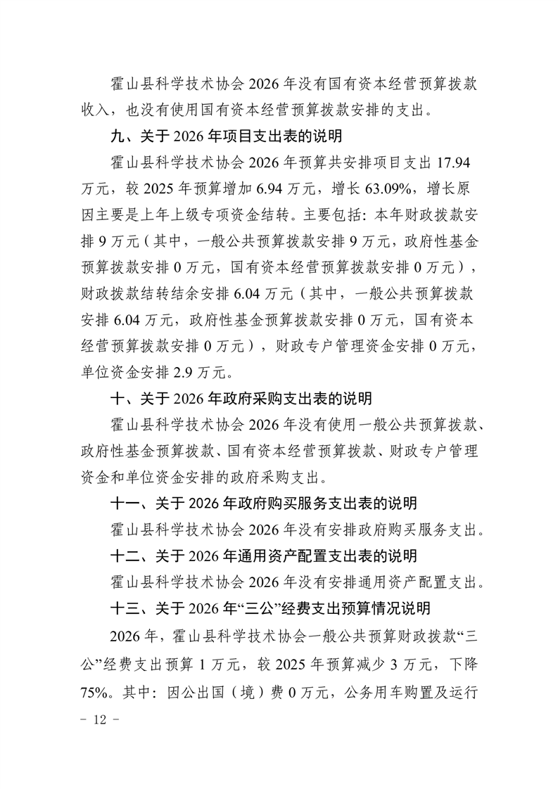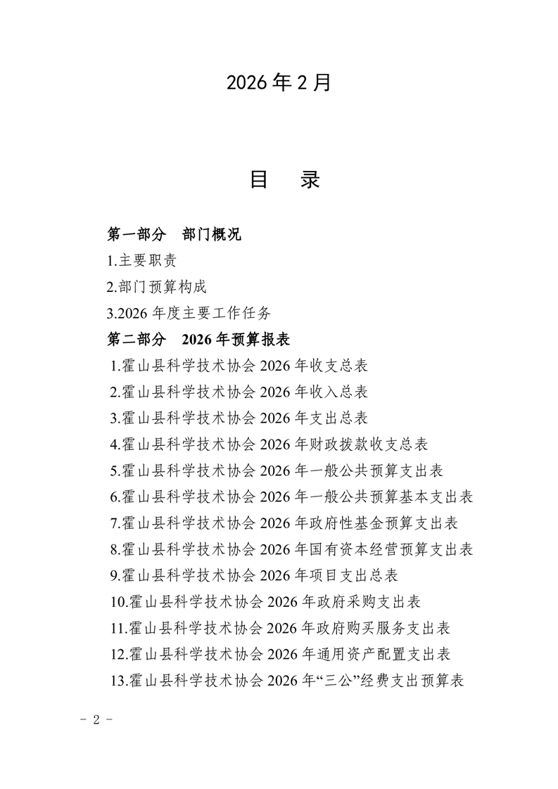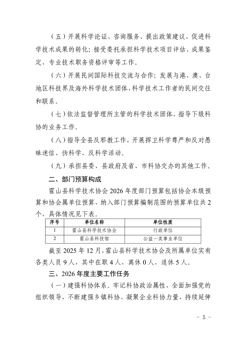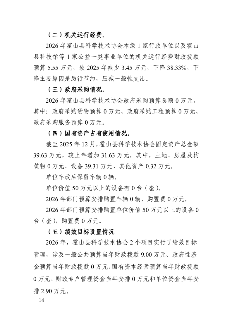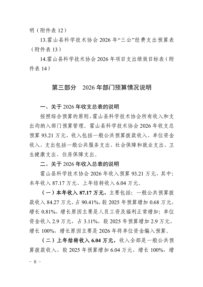 霍山县科学技术协会2026年部门预算