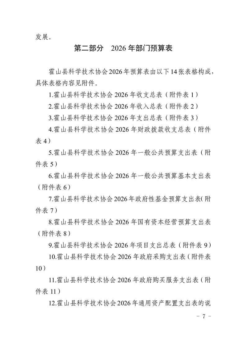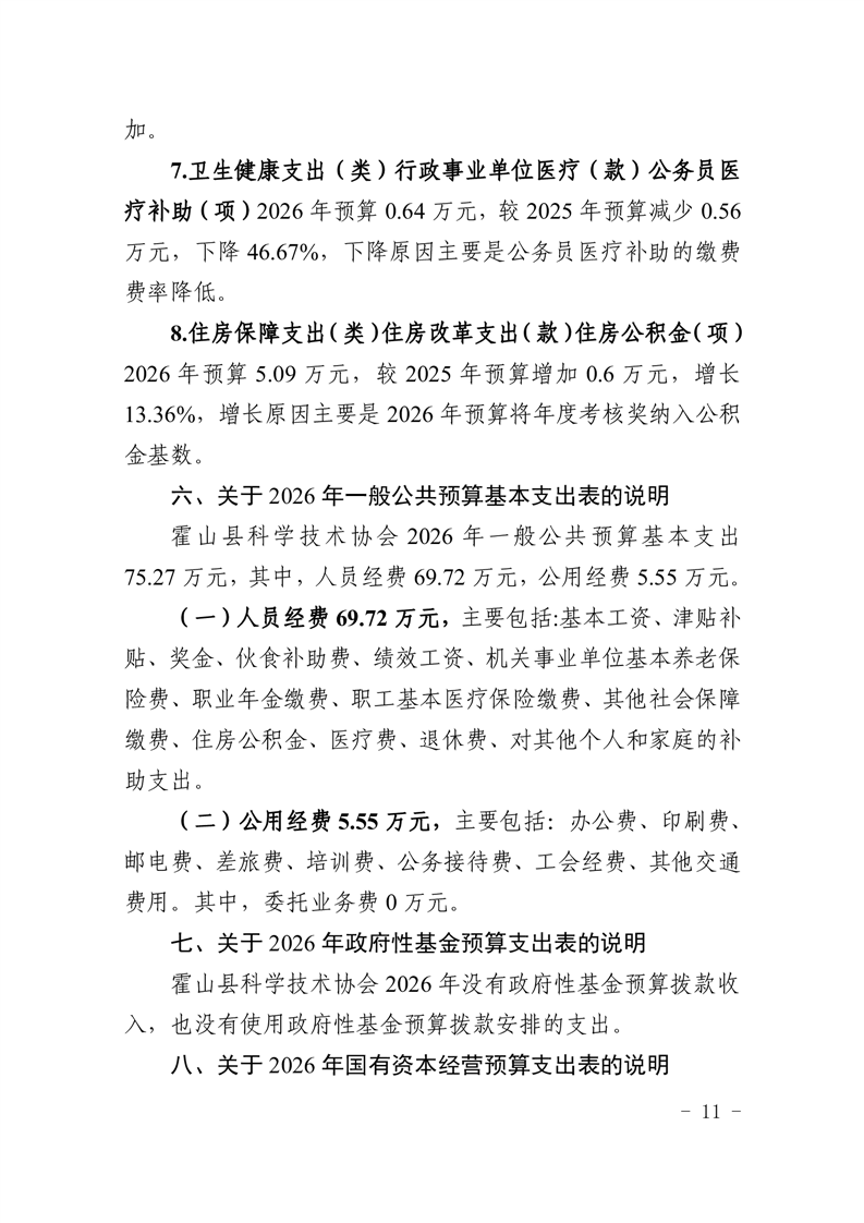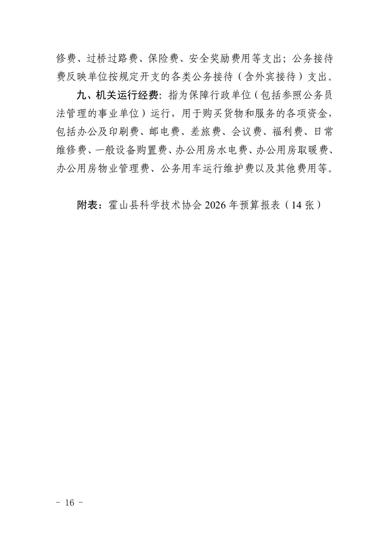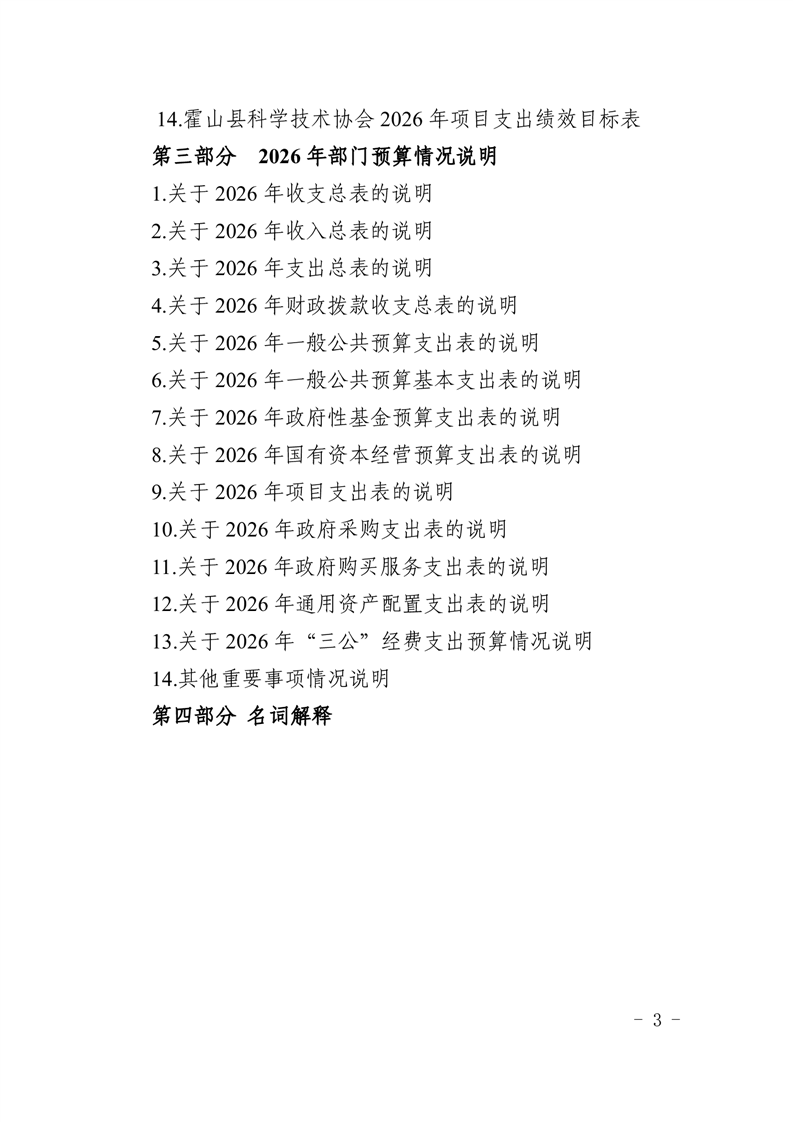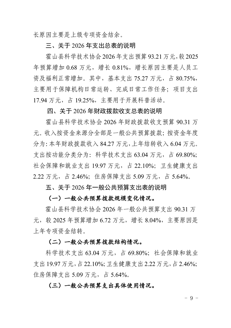 霍山县科学技术协会2026年部门预算