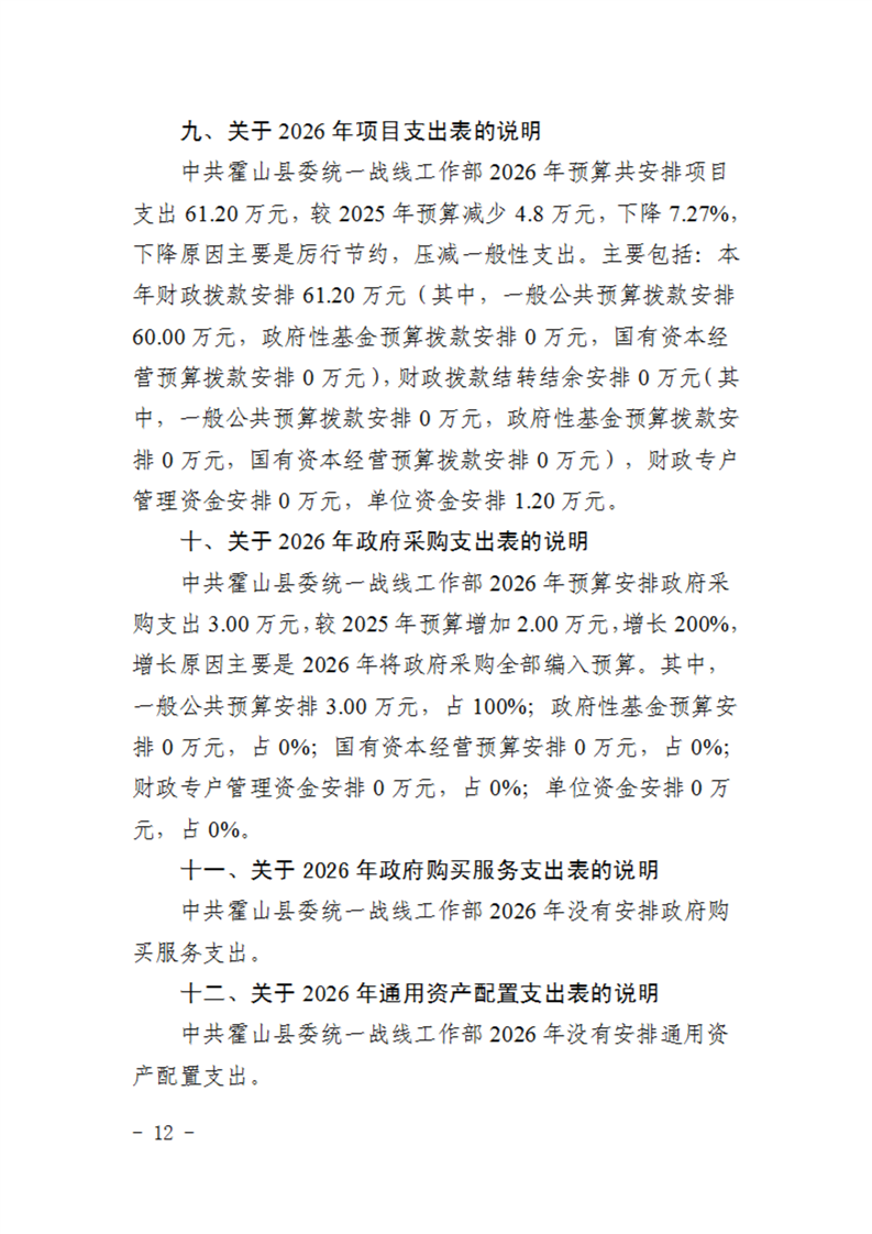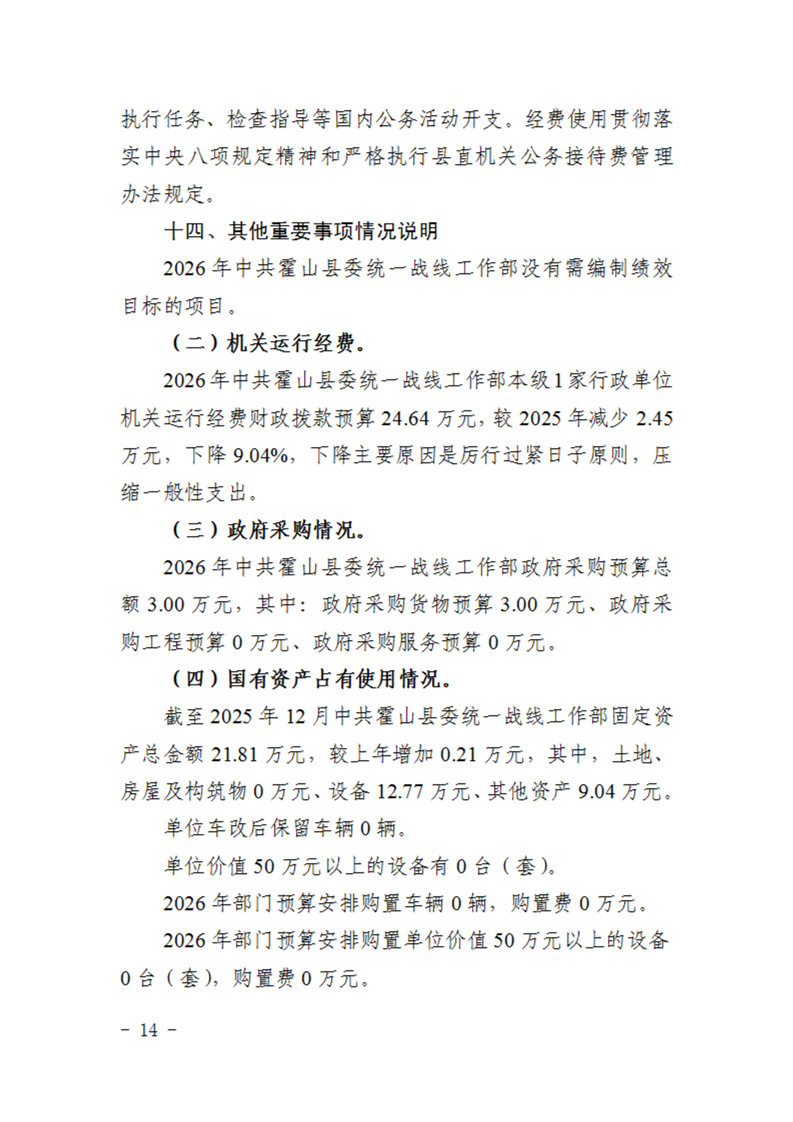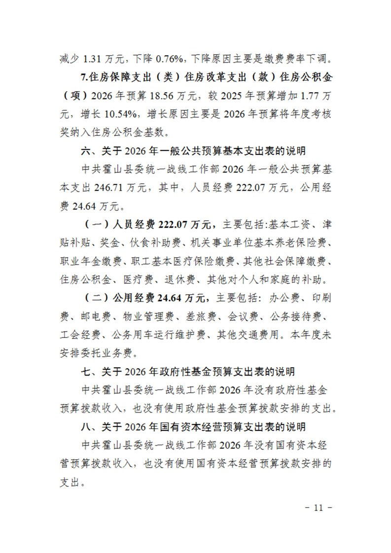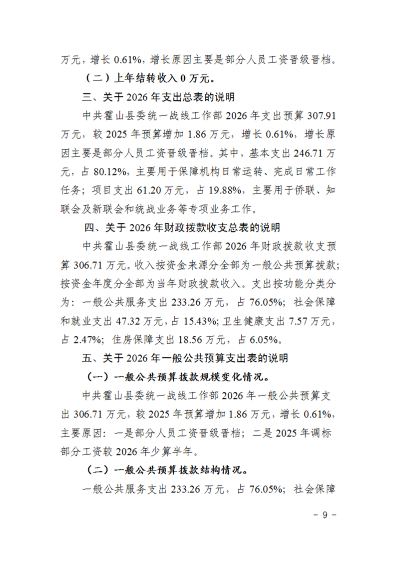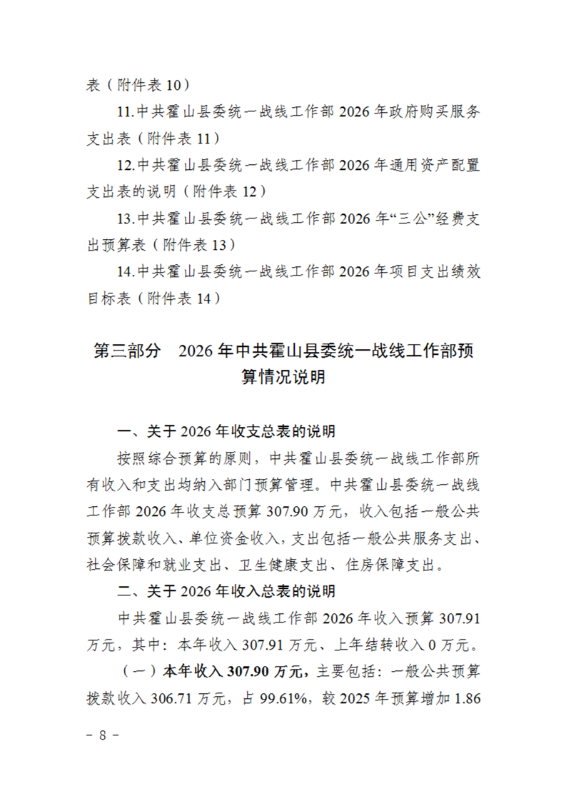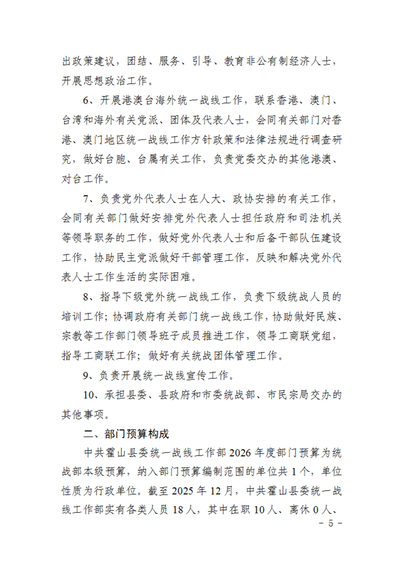 中共霍山县委统一战线工作部2026年部门预算