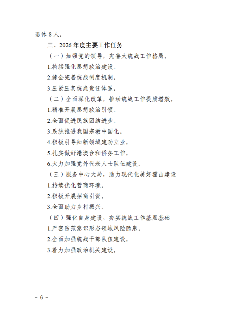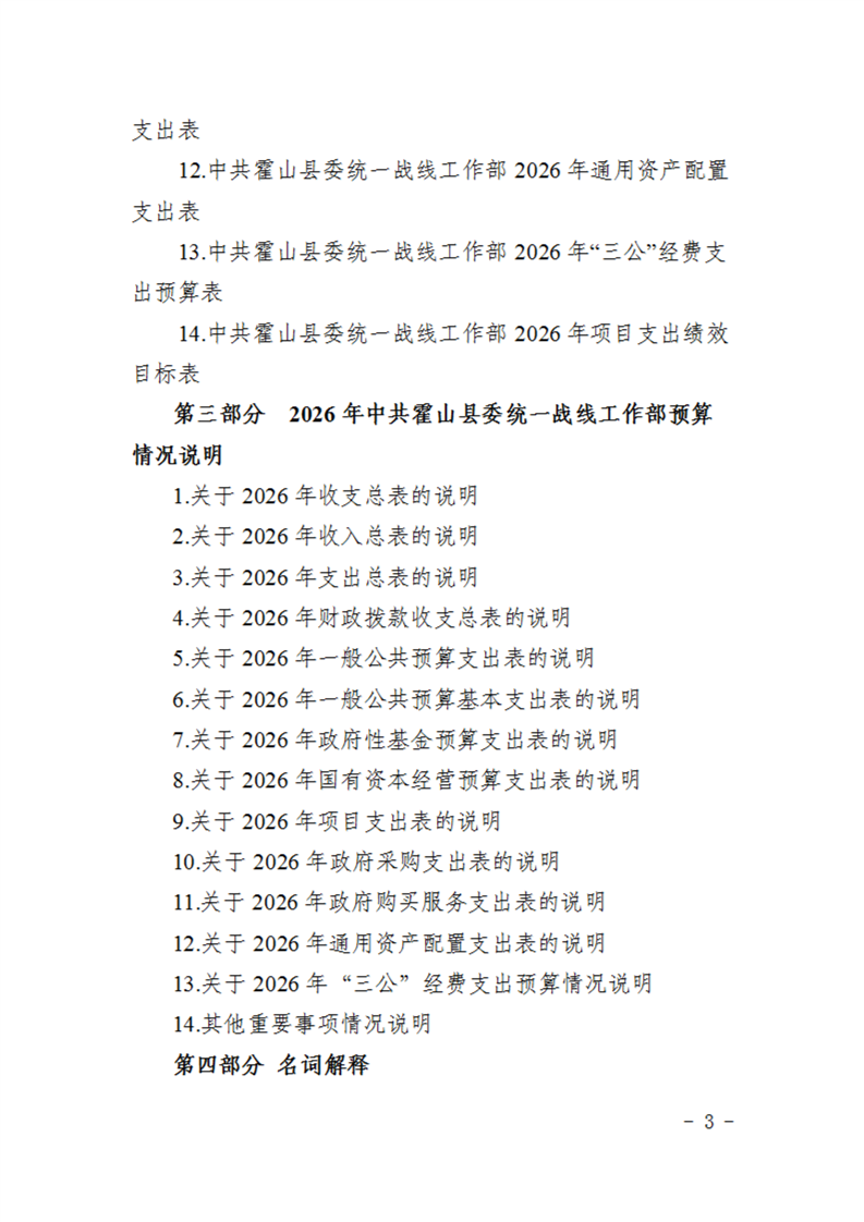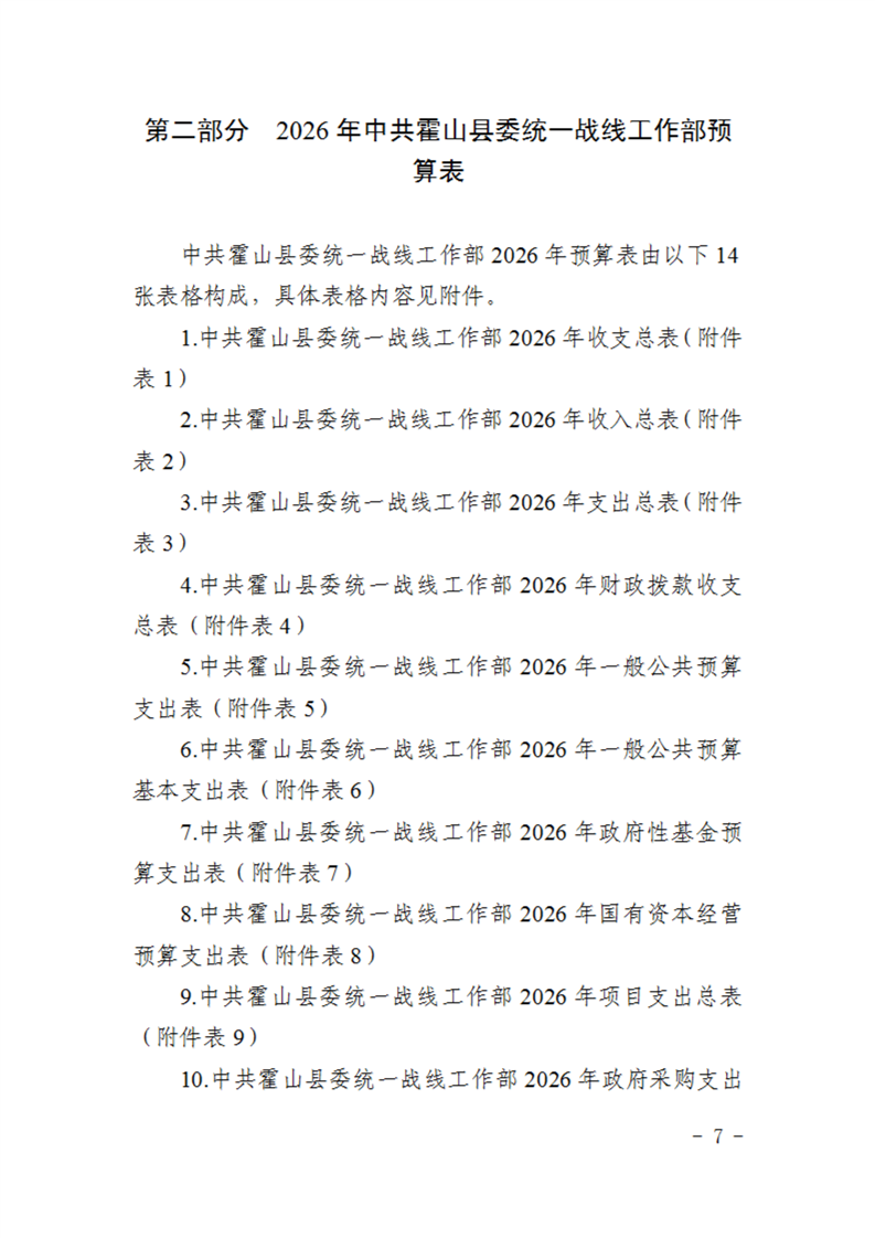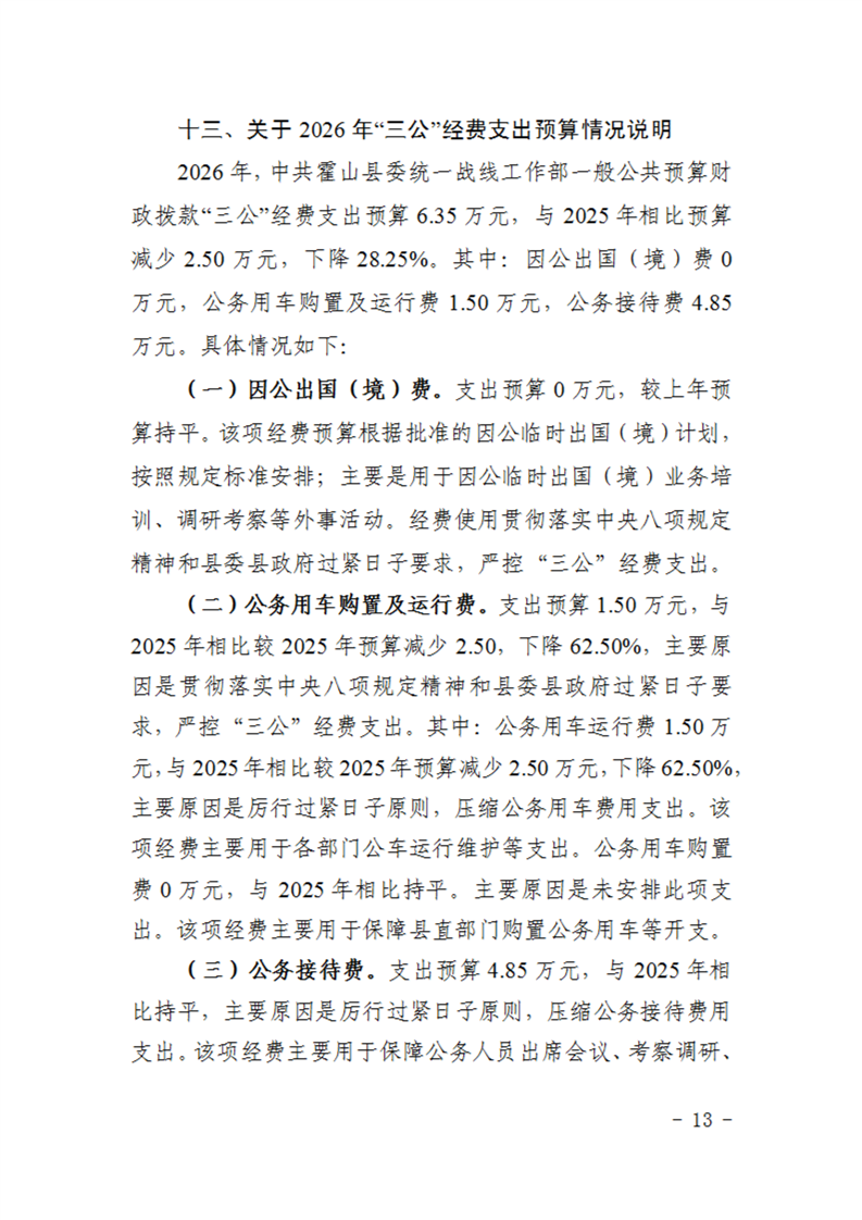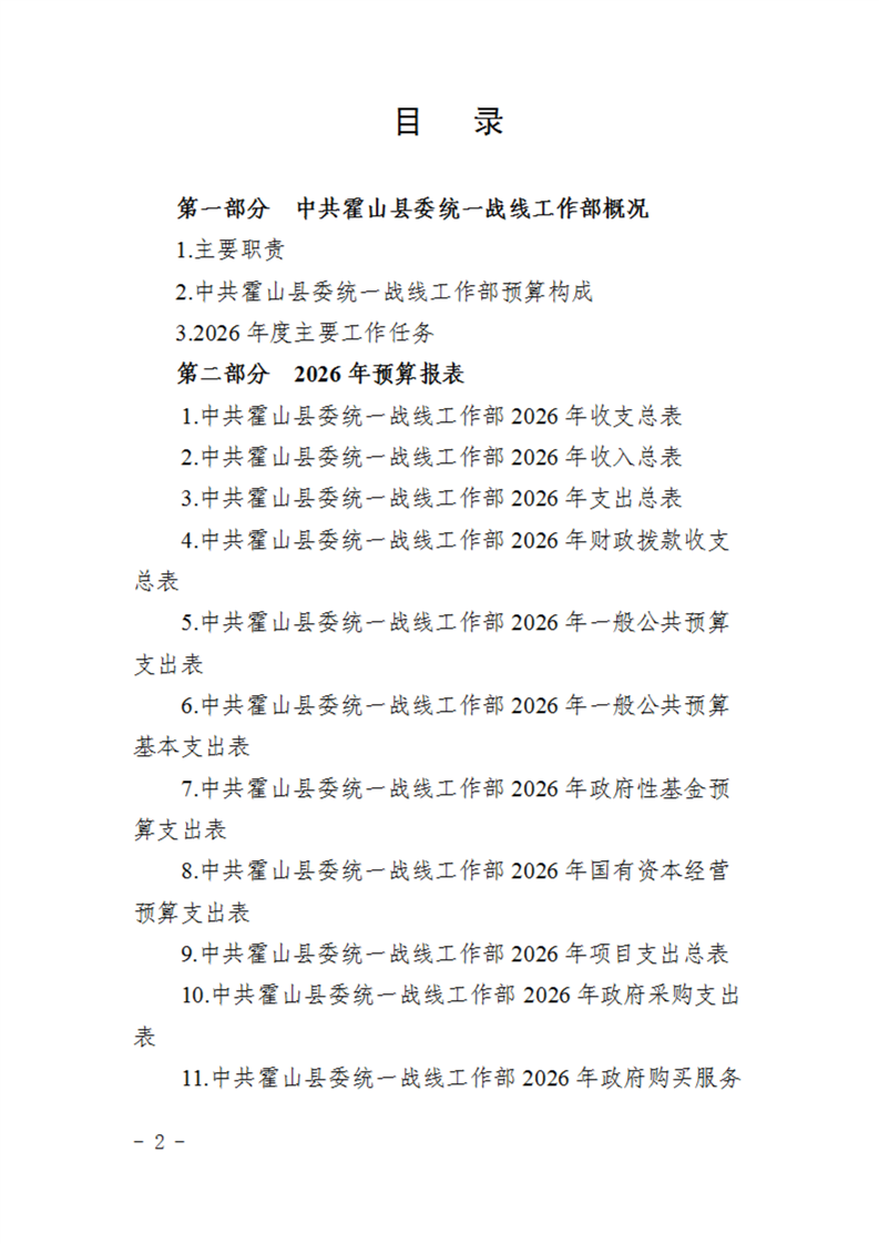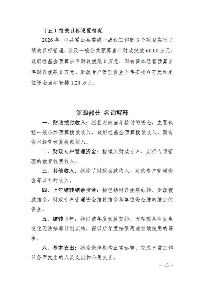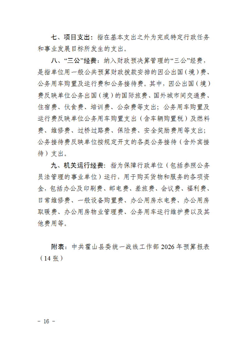 中共霍山县委统一战线工作部2026年部门预算