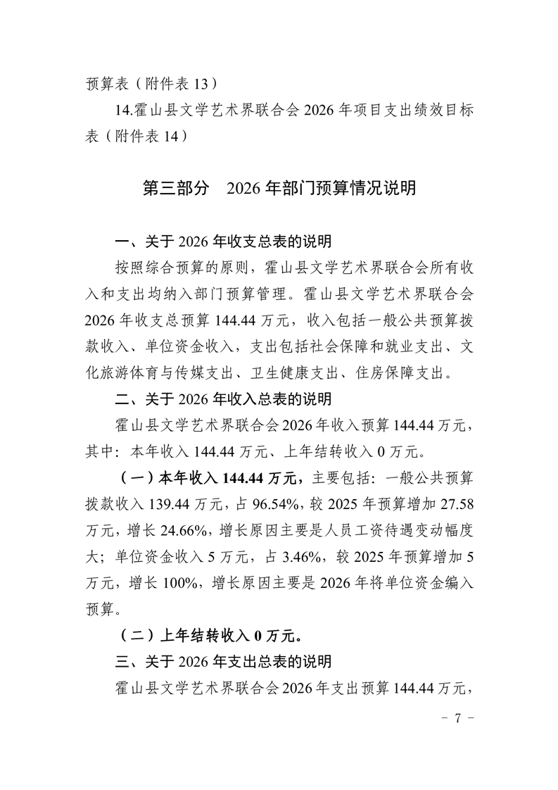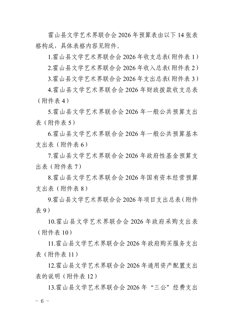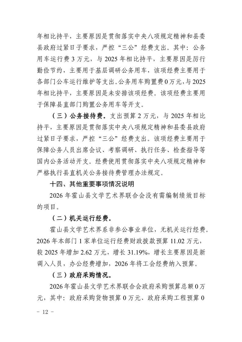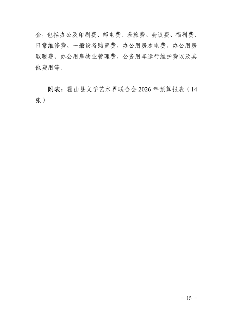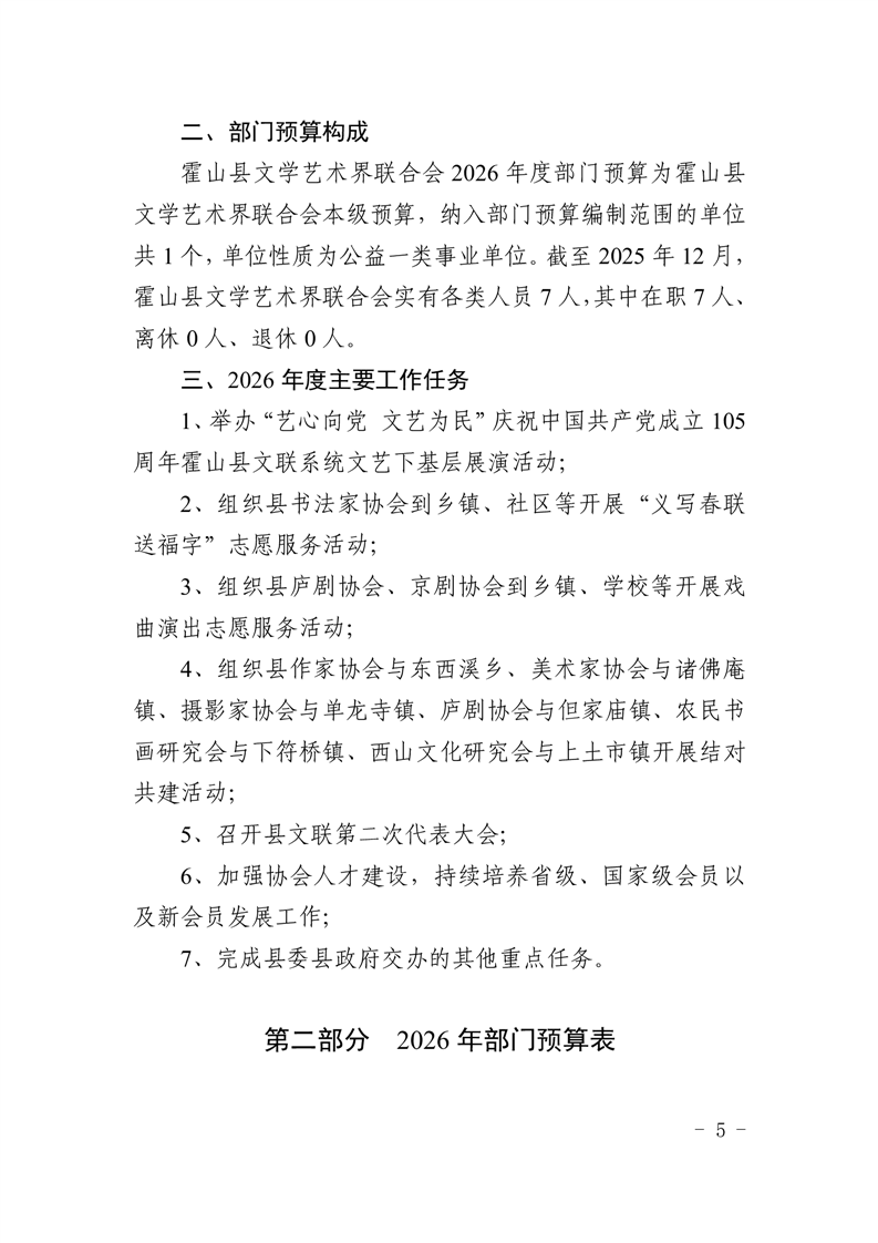 霍山县文学艺术界联合会2026年部门预算