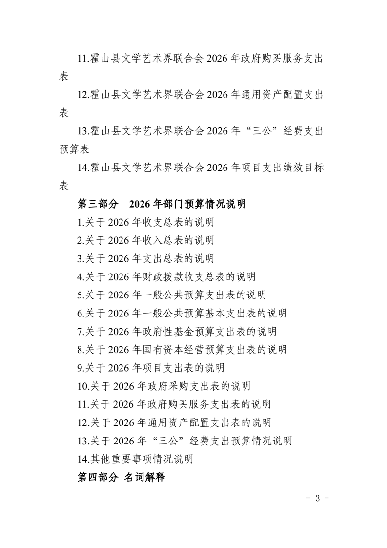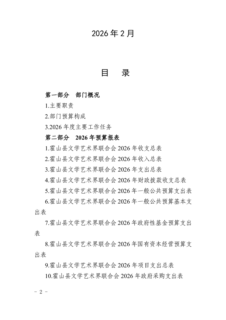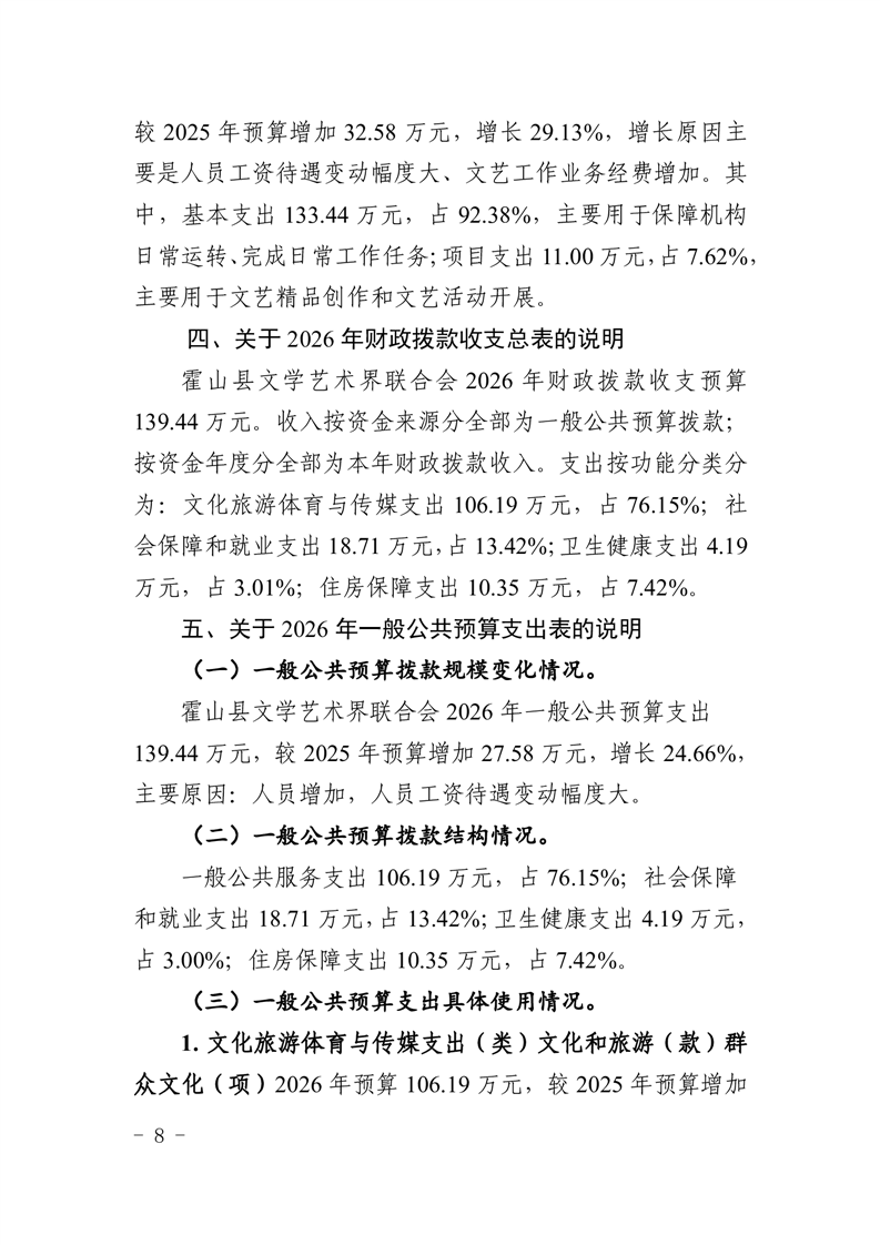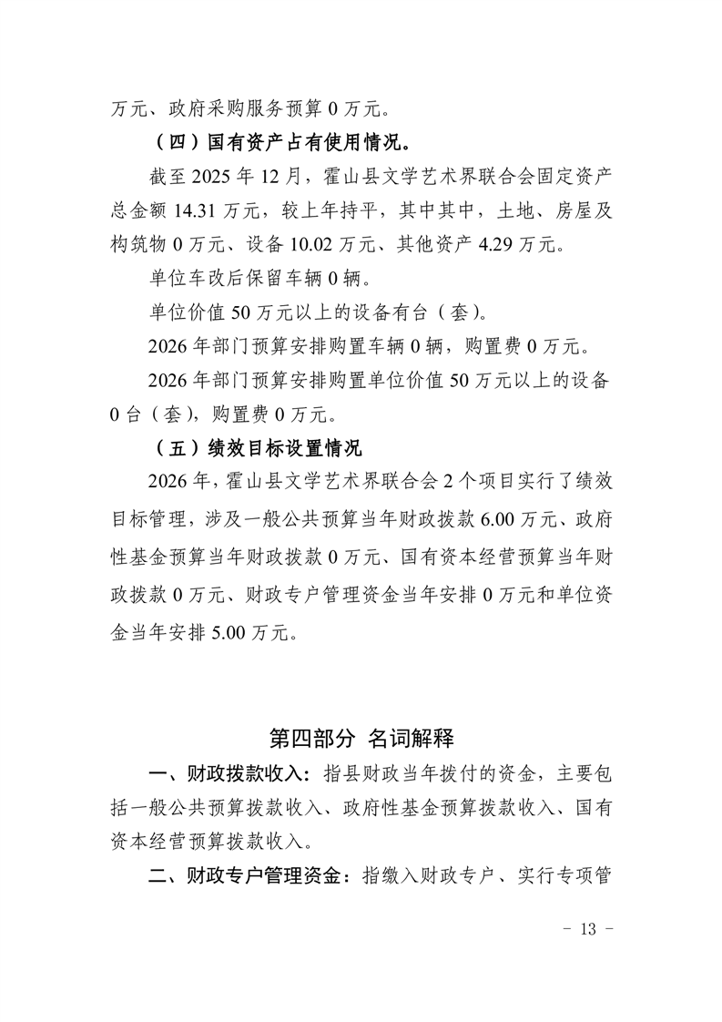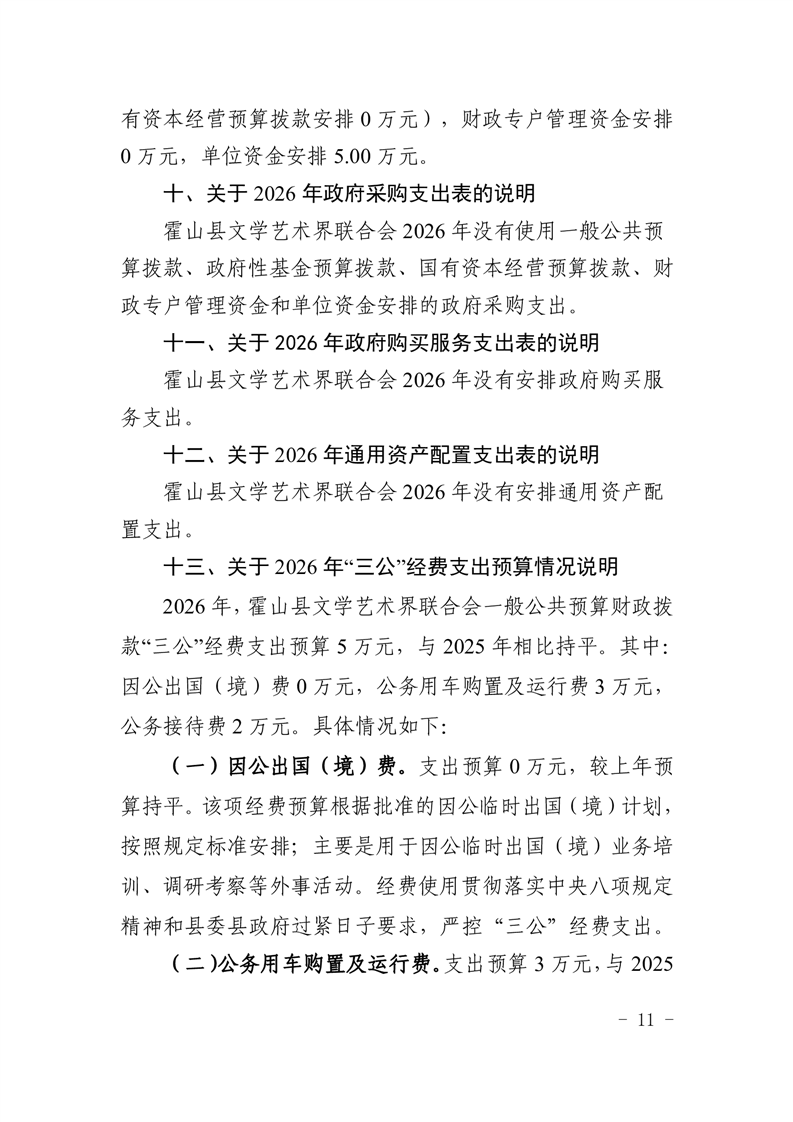 霍山县文学艺术界联合会2026年部门预算
