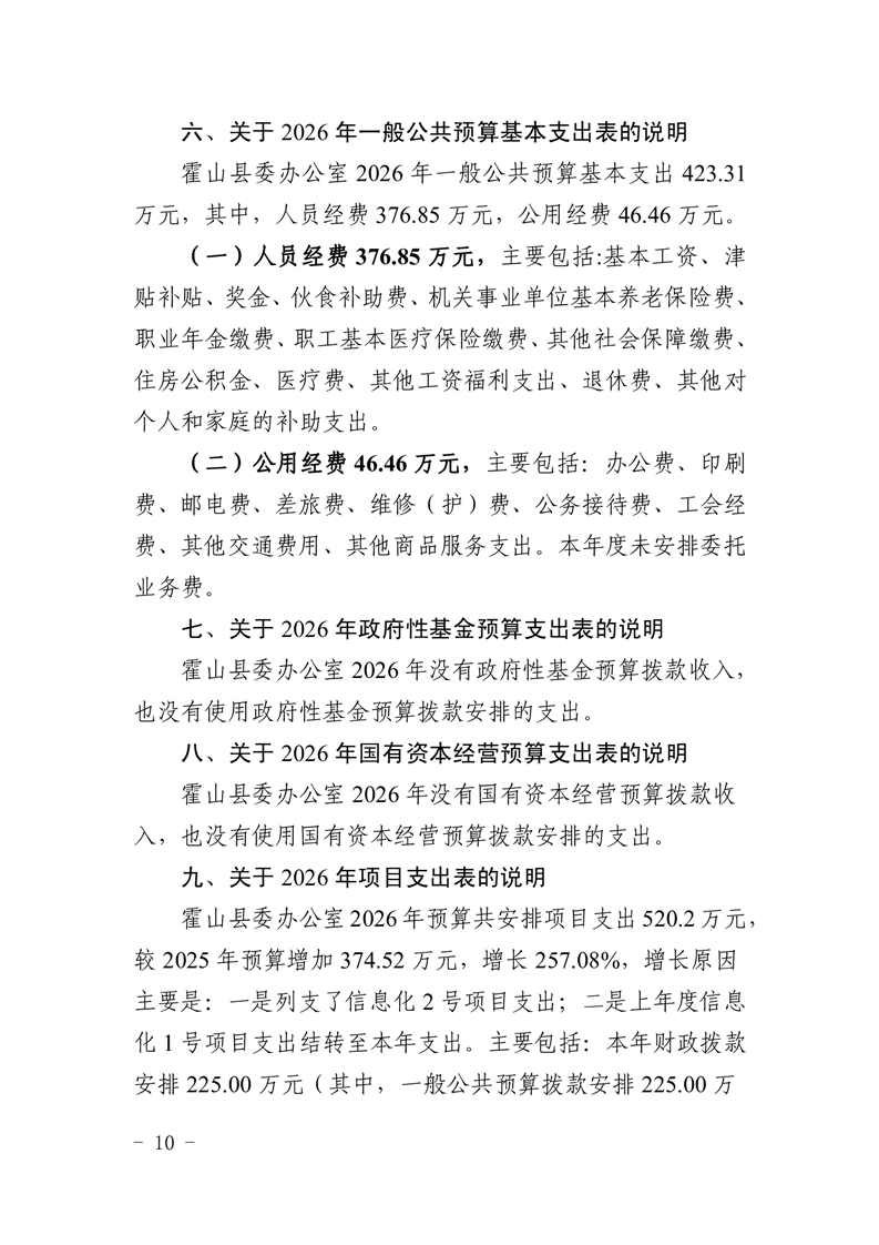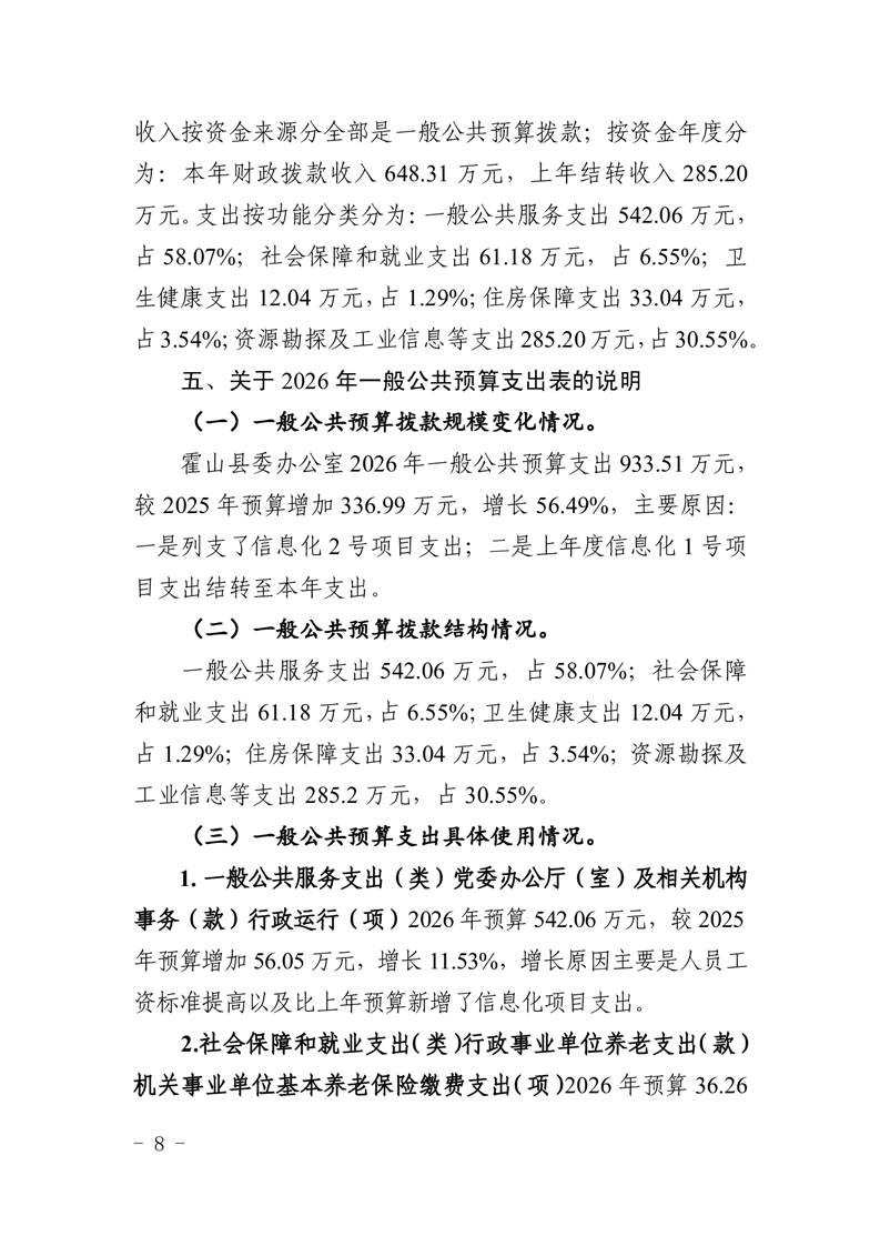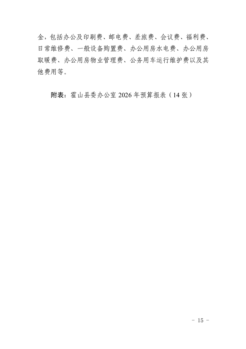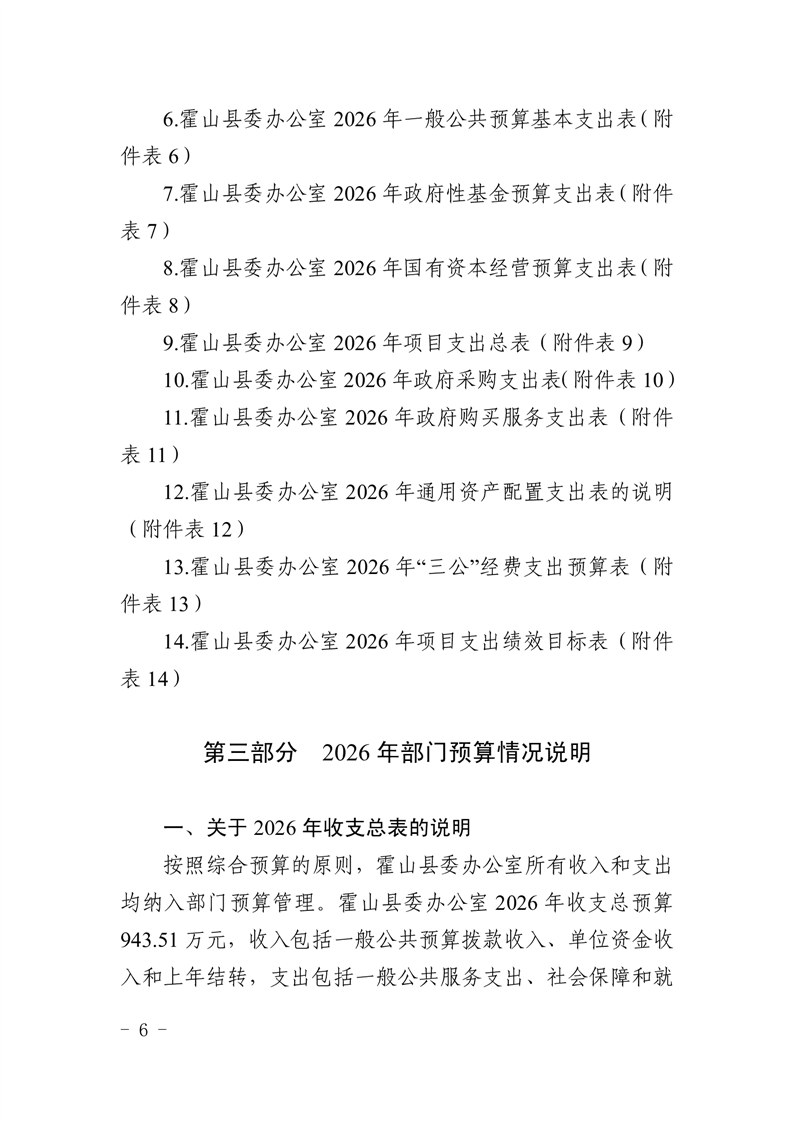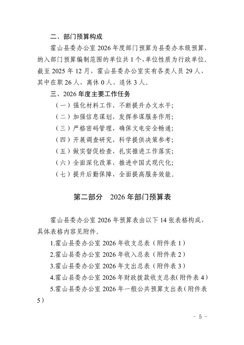 霍山县委办公室2026年部门预算