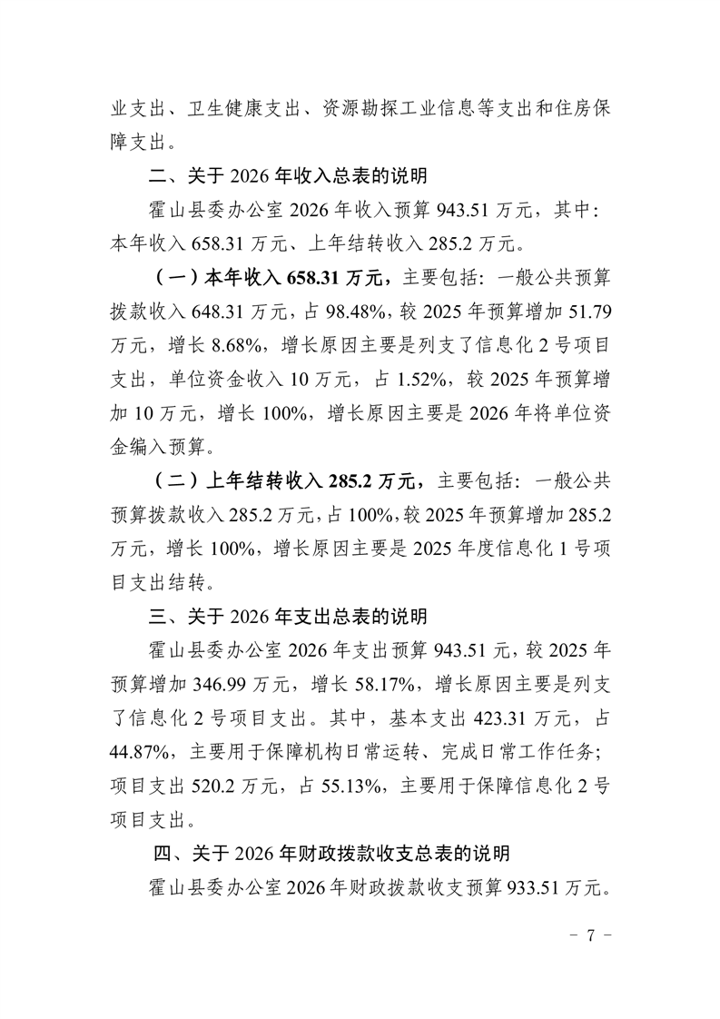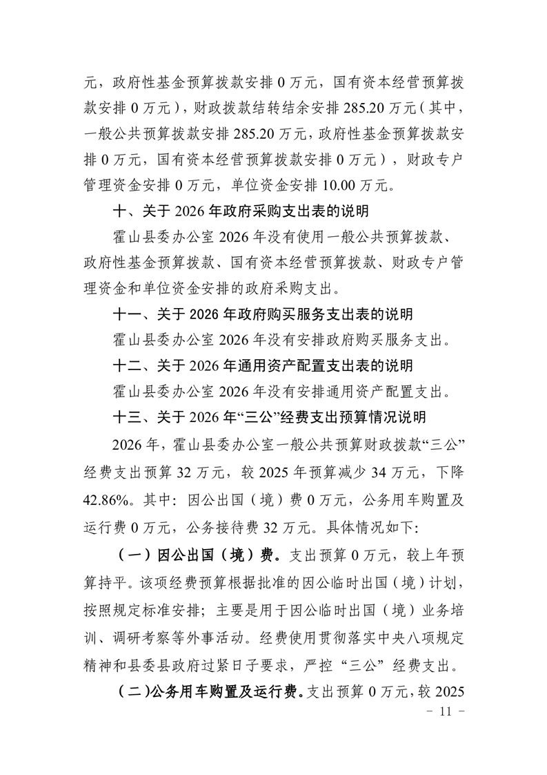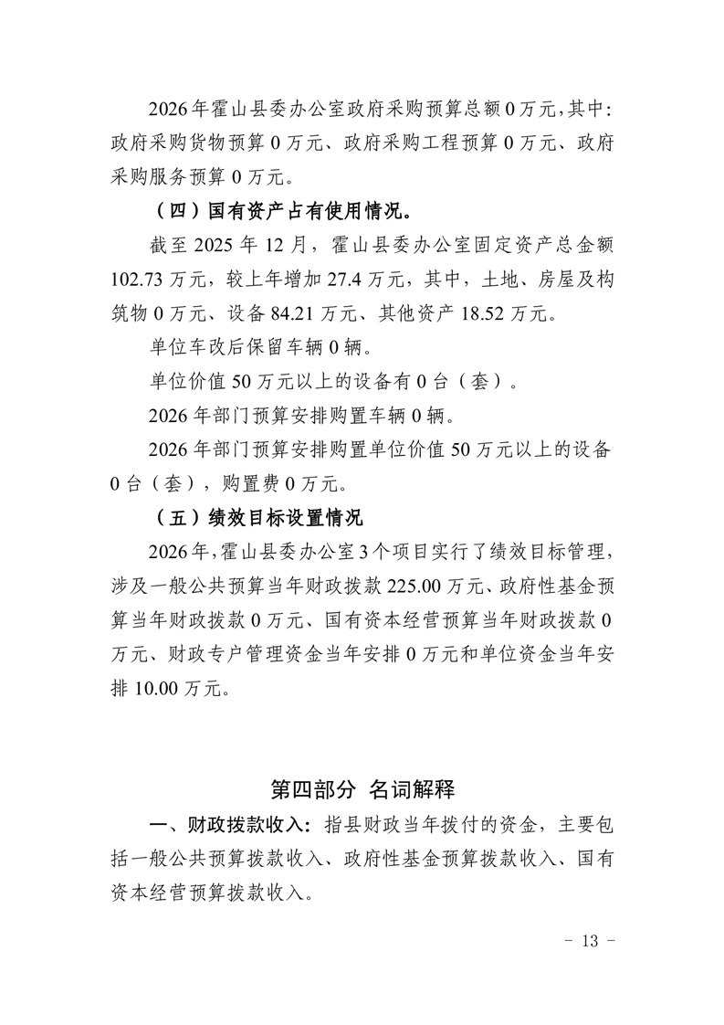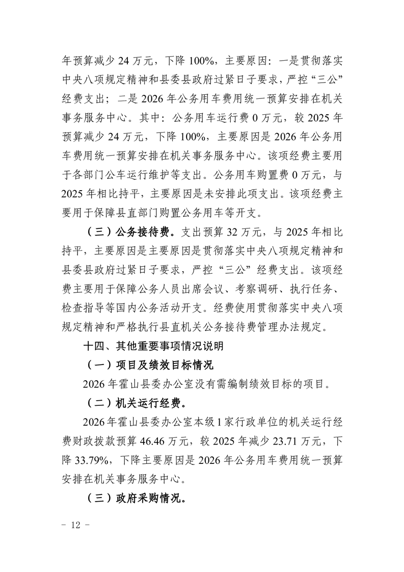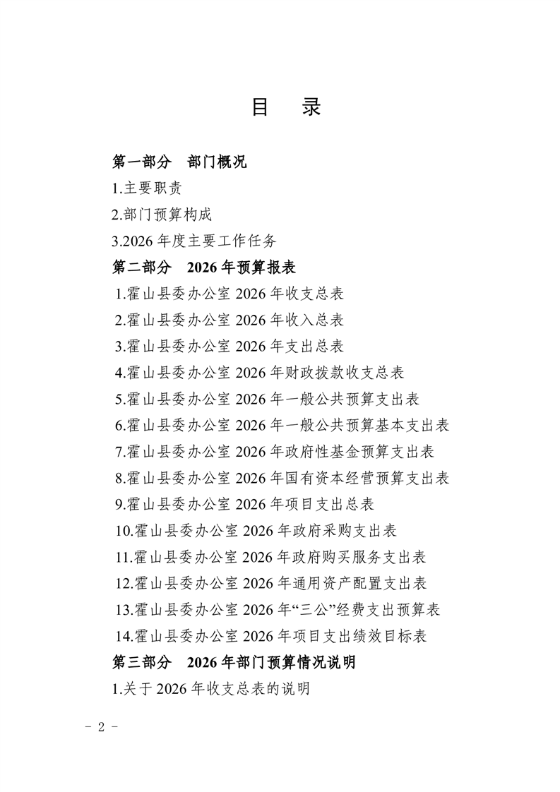 霍山县委办公室2026年部门预算