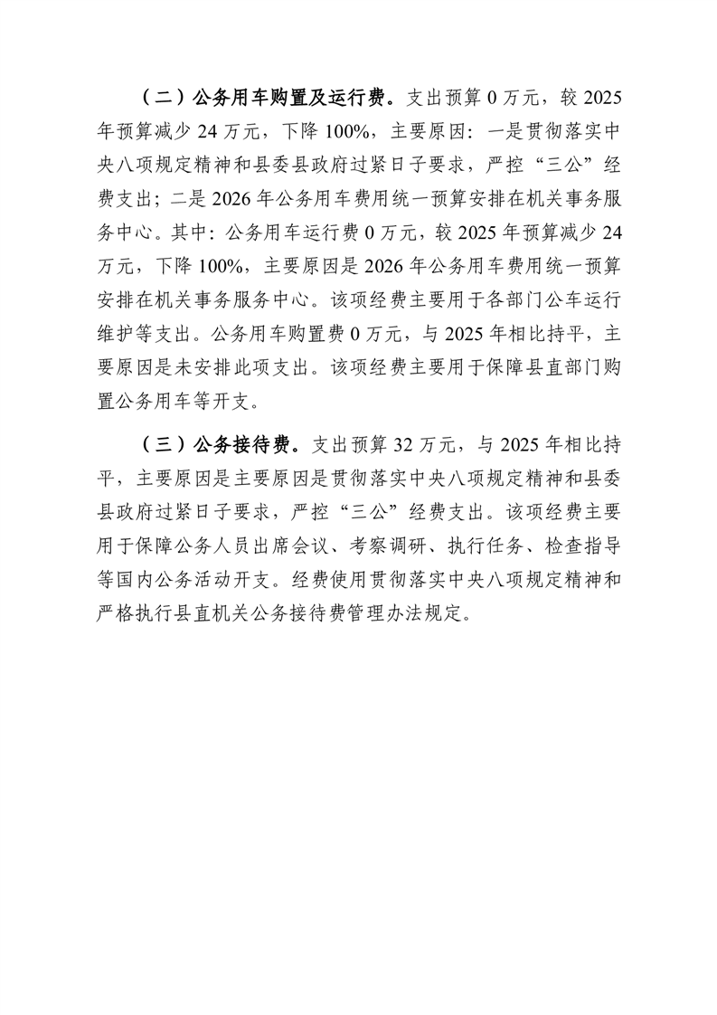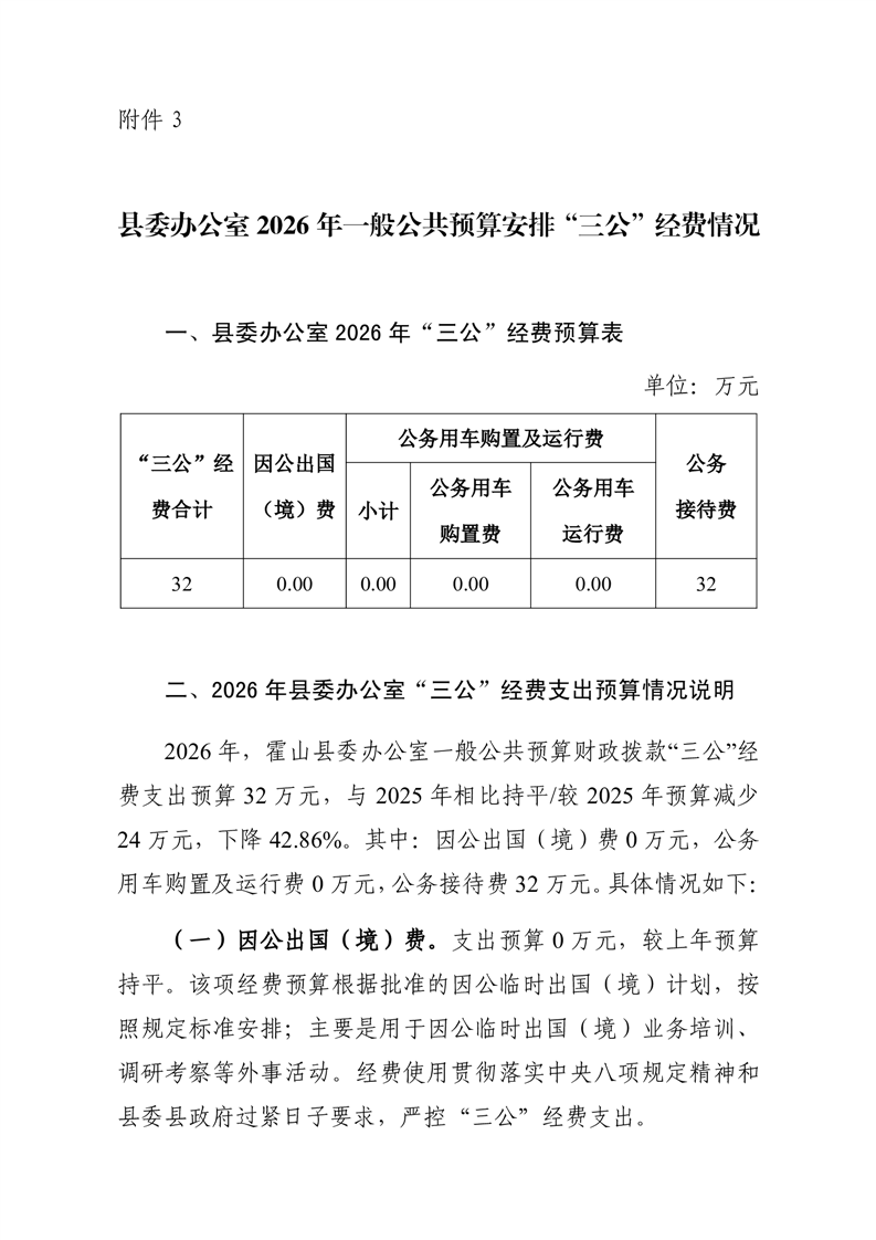 霍山县委办公室2026年一般公共预算安排“三公”经费情况