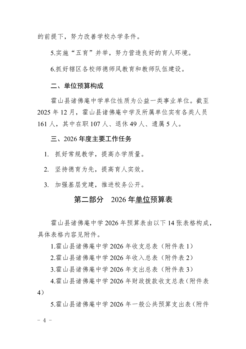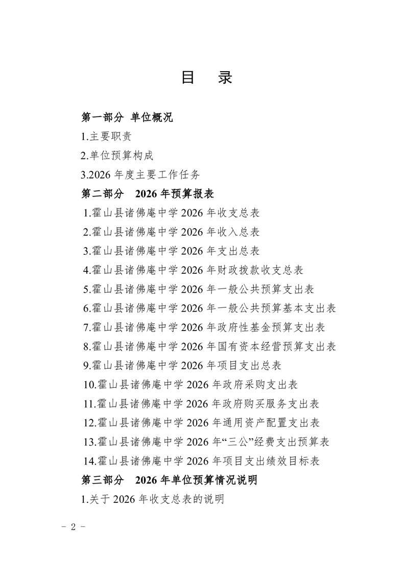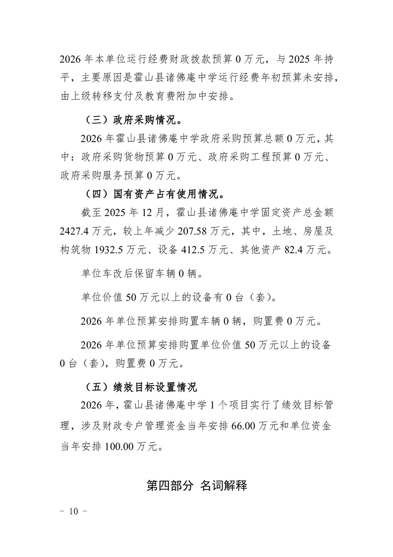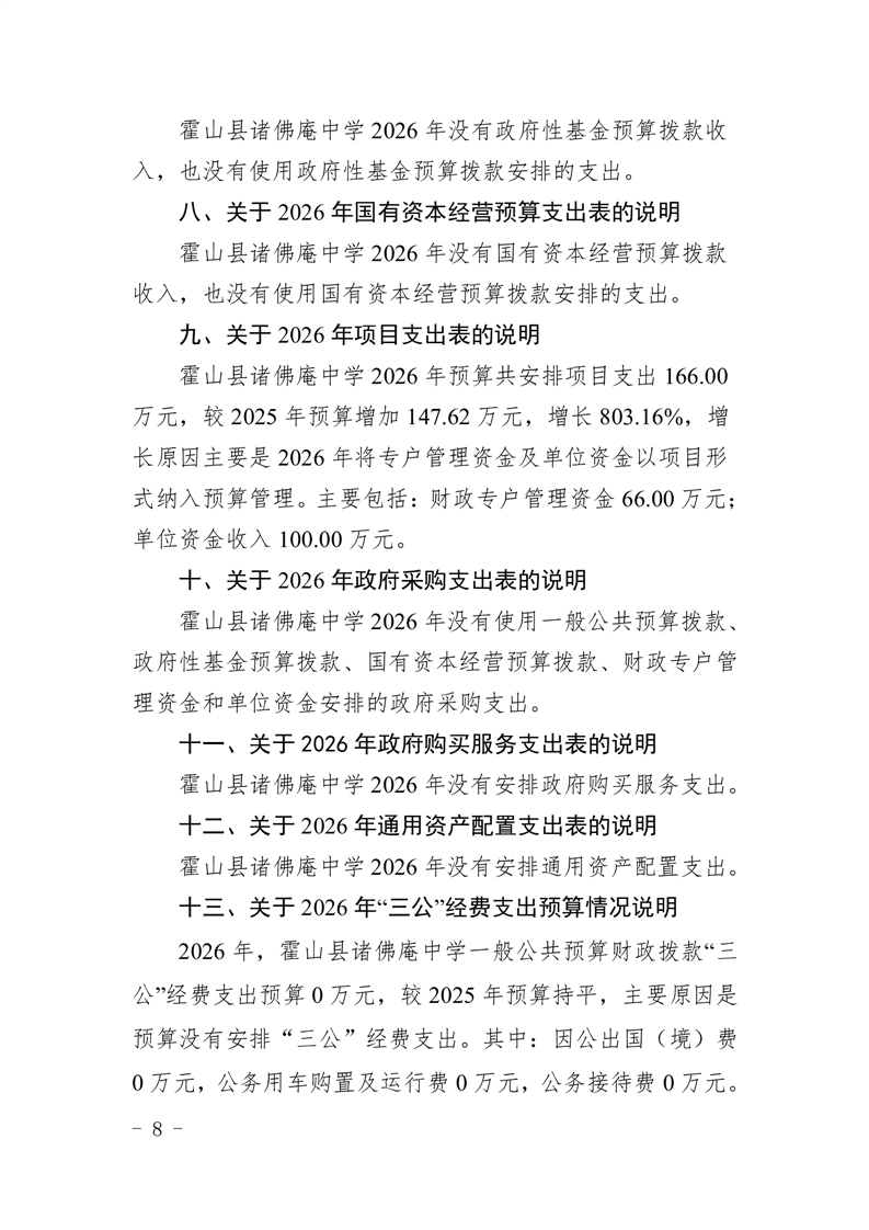 霍山县诸佛庵中学2026年单位预算