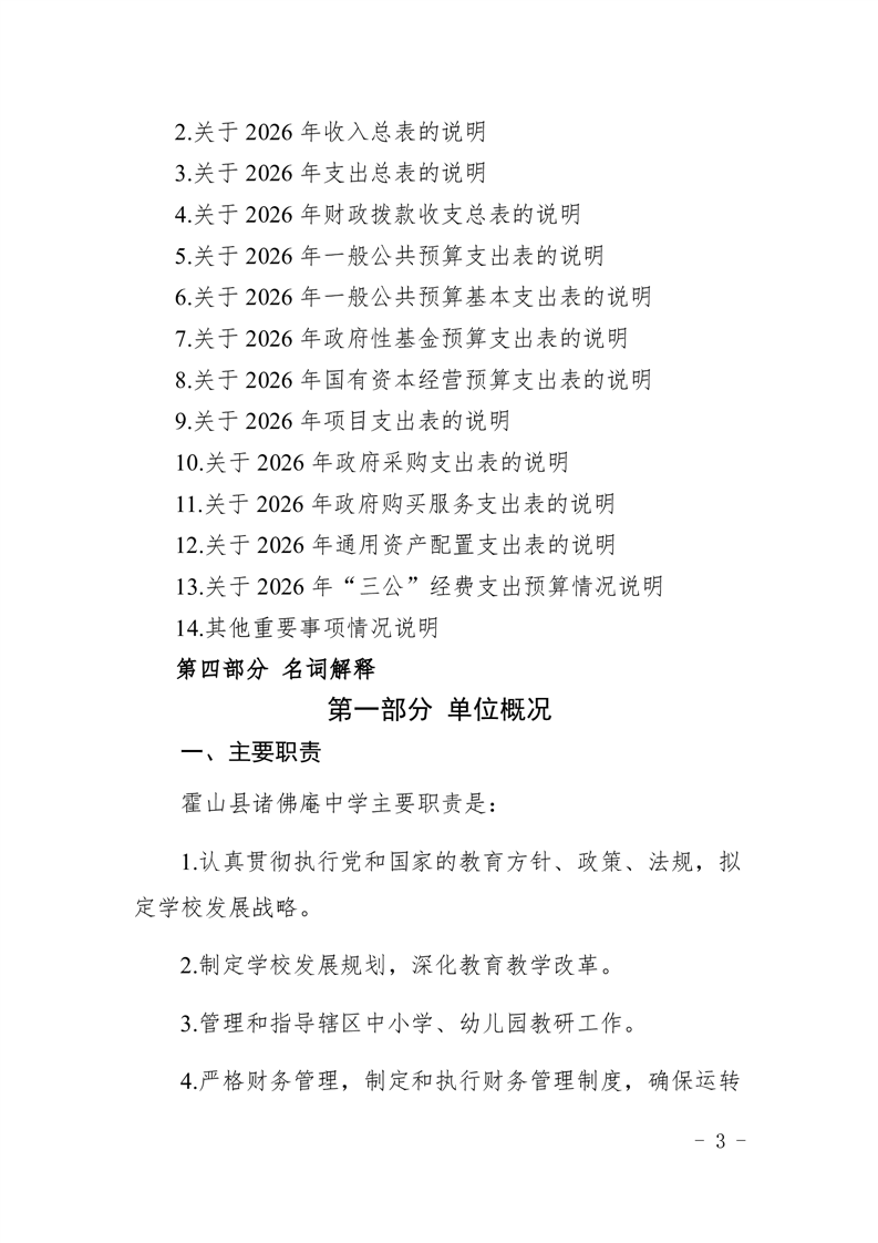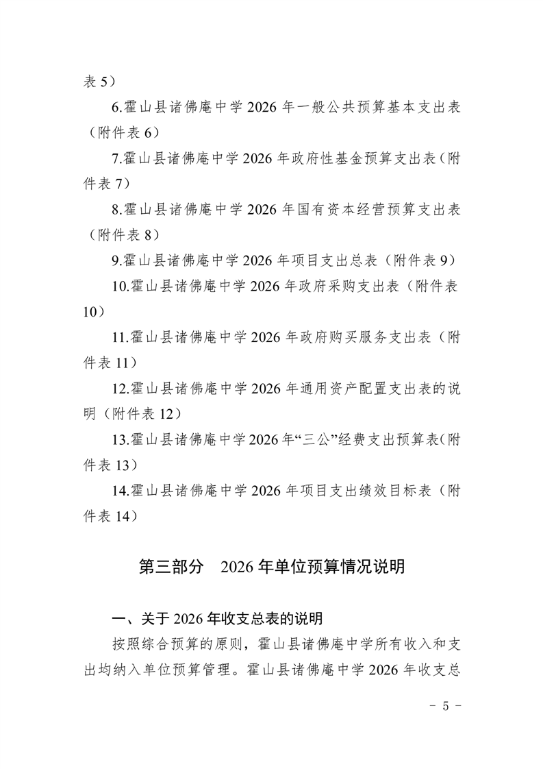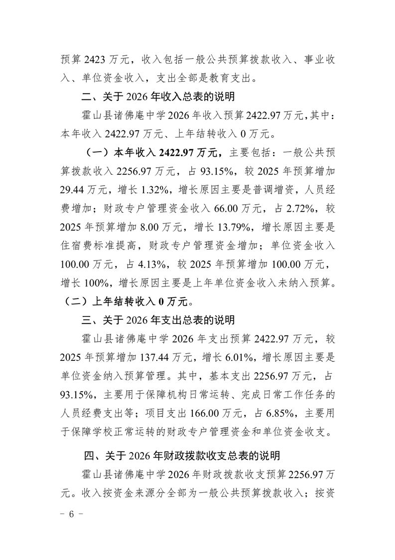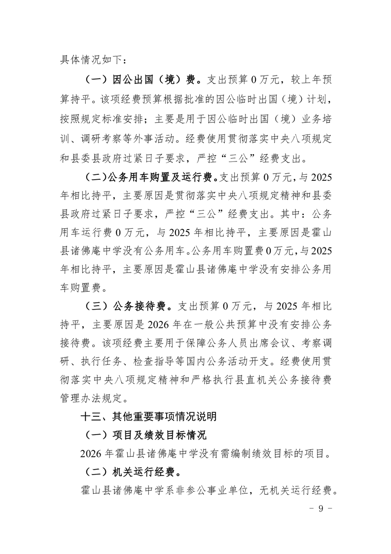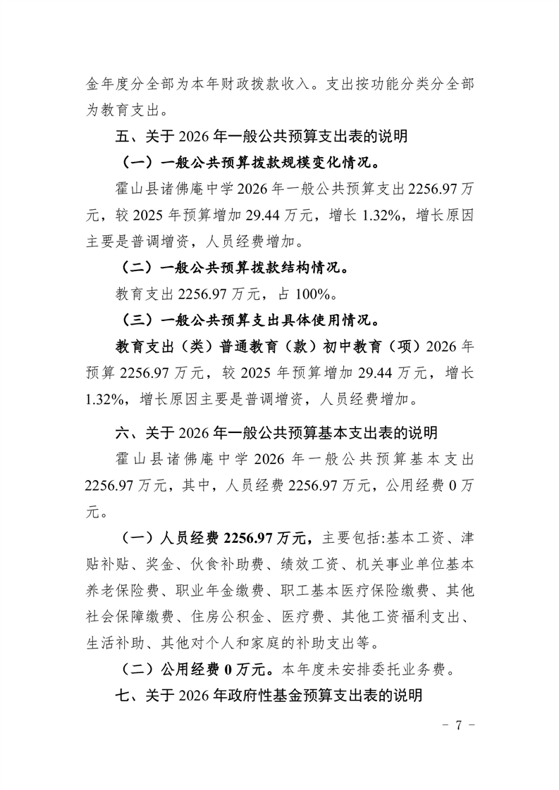 霍山县诸佛庵中学2026年单位预算