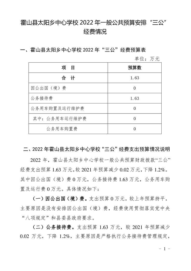 霍山县太阳乡中心学校2022年一般公共预算安排“三公”经费情况