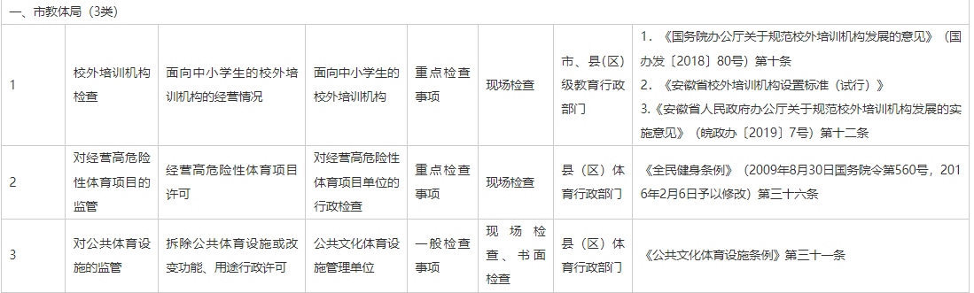 六安市教育体育局2025年“双随机、一公开”统一抽查事项清单