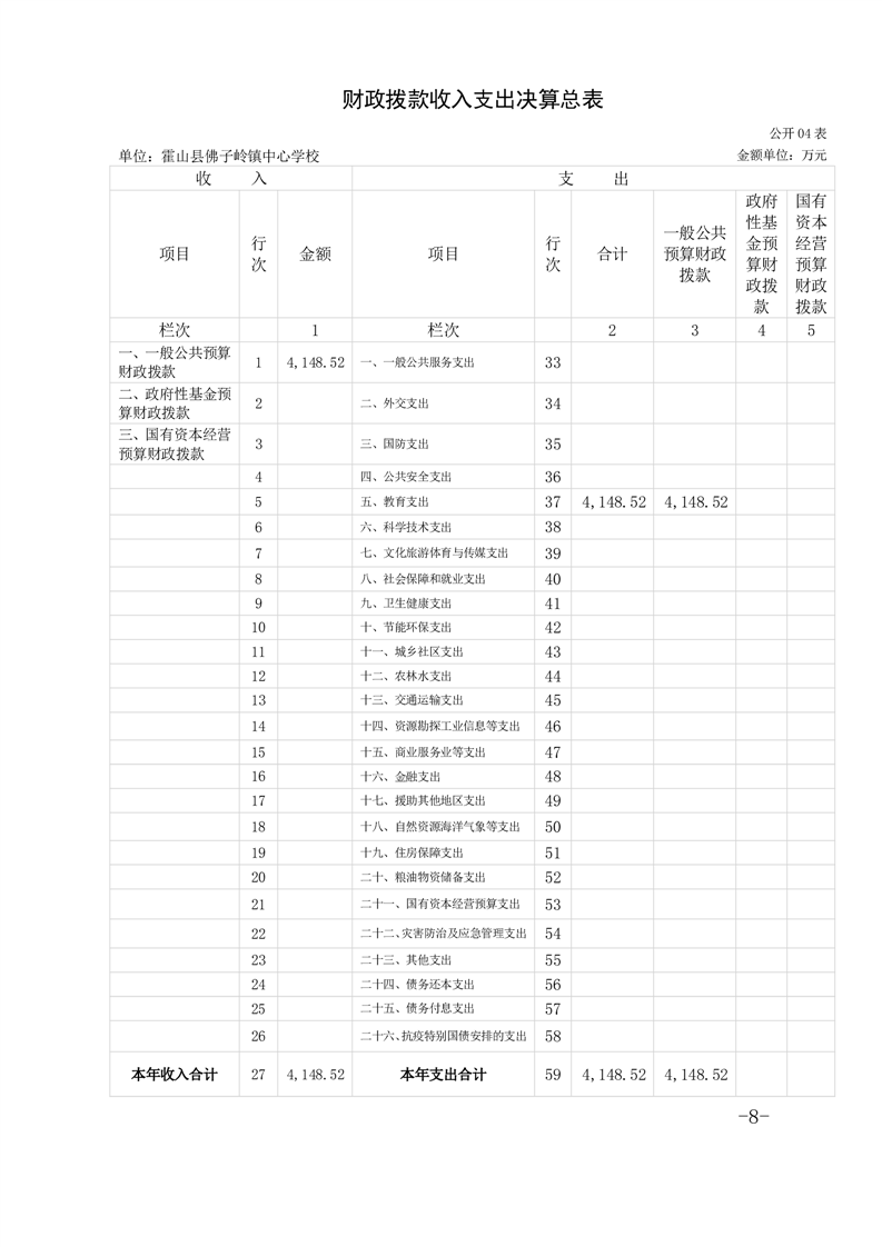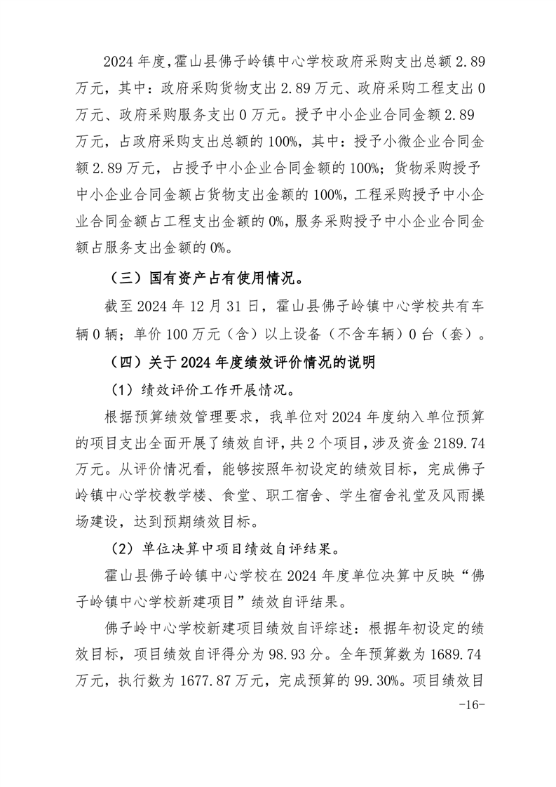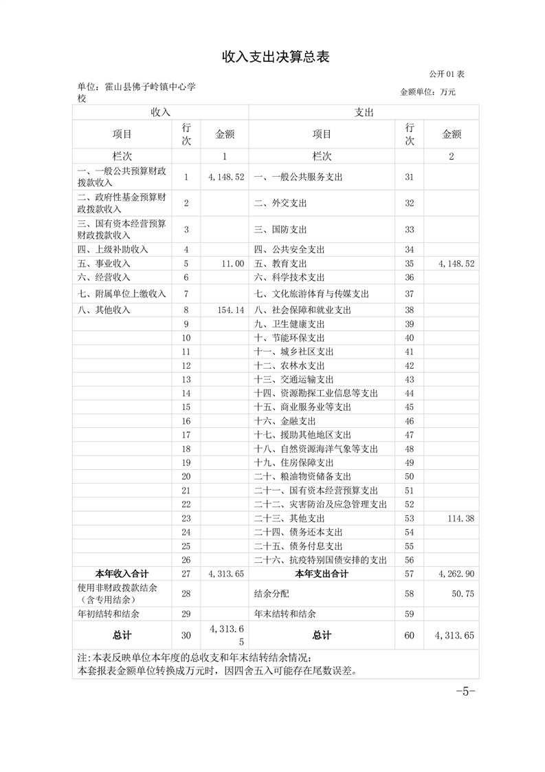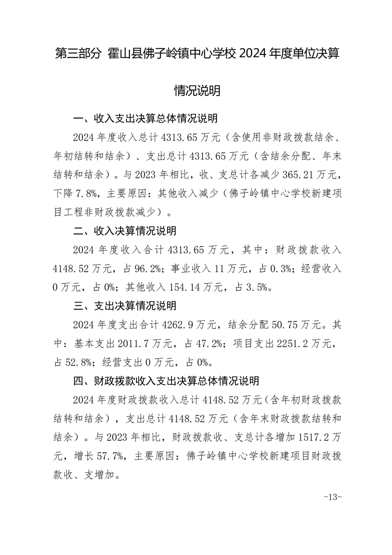 霍山县佛子岭镇中心学校2024年单位决算公开