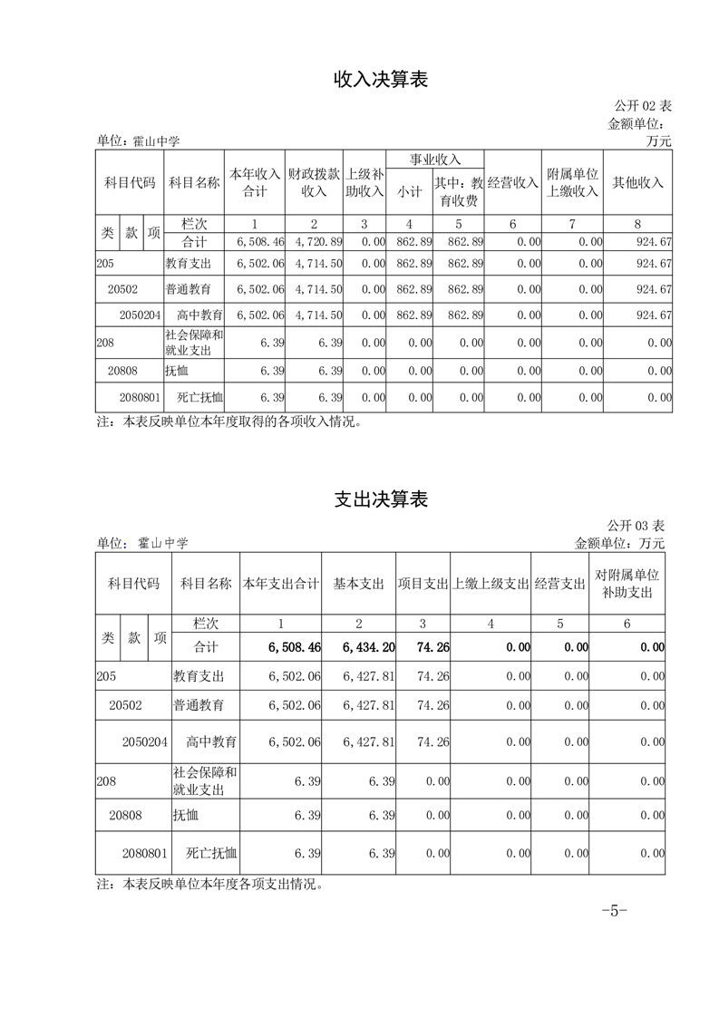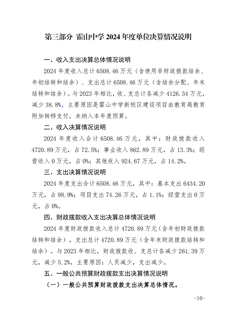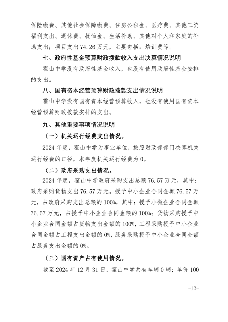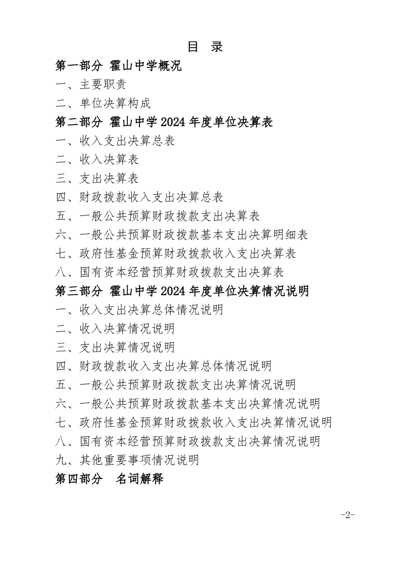 霍山中学2024年单位决算公开