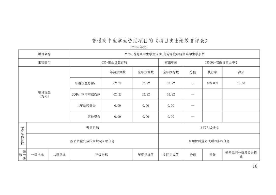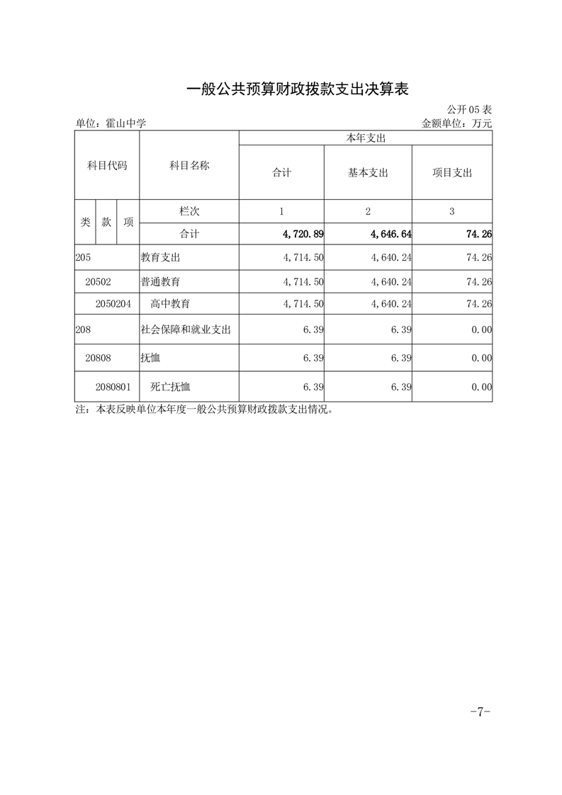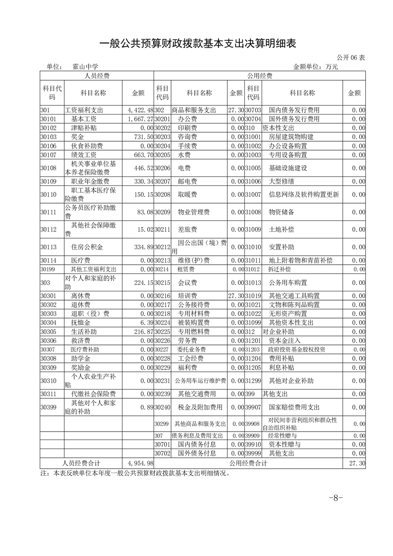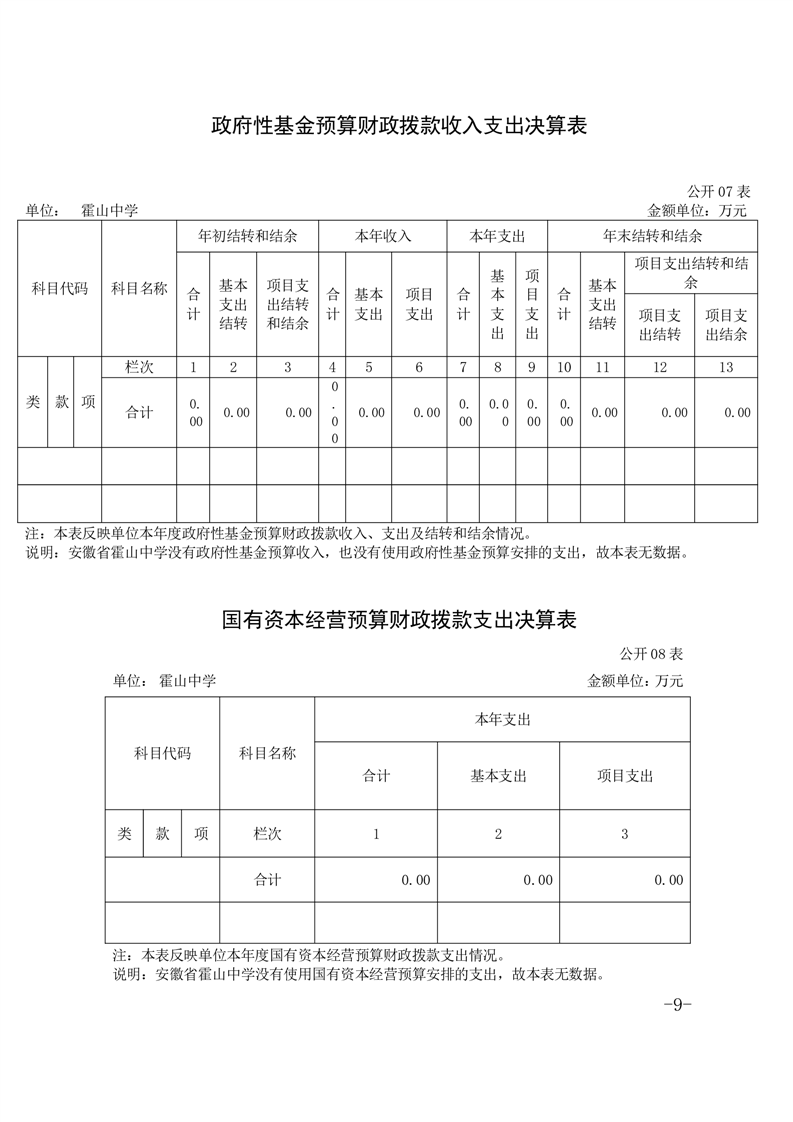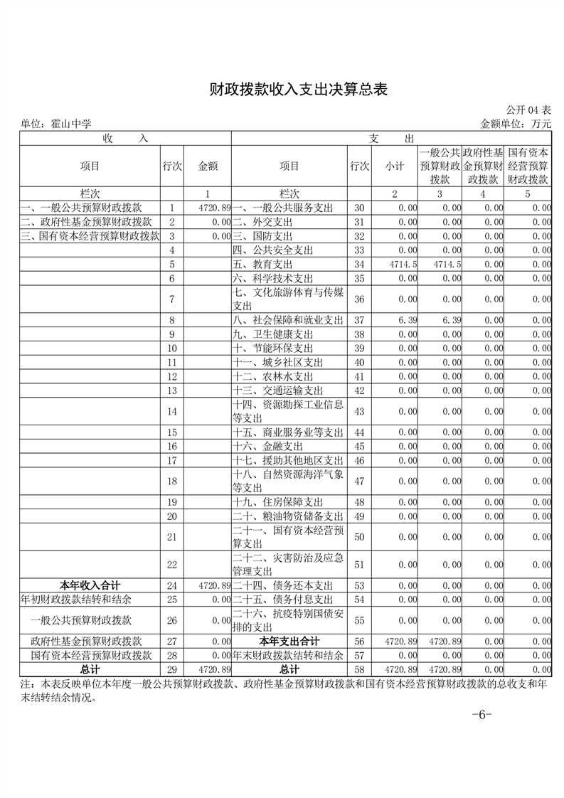 霍山中学2024年单位决算公开