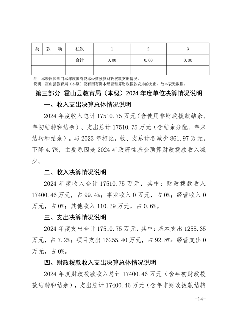 霍山县教育局(本级)2024年度单位决算公开