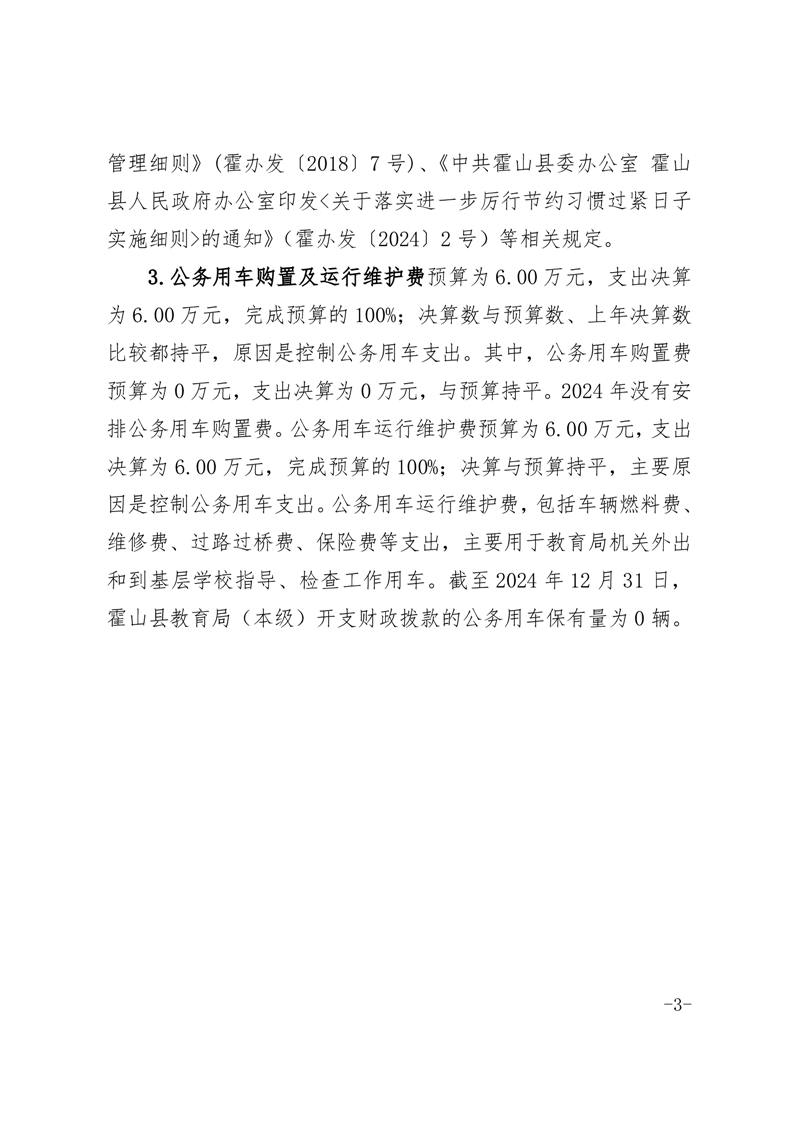 霍山县教育局(本级)2024年三公经费决算公开