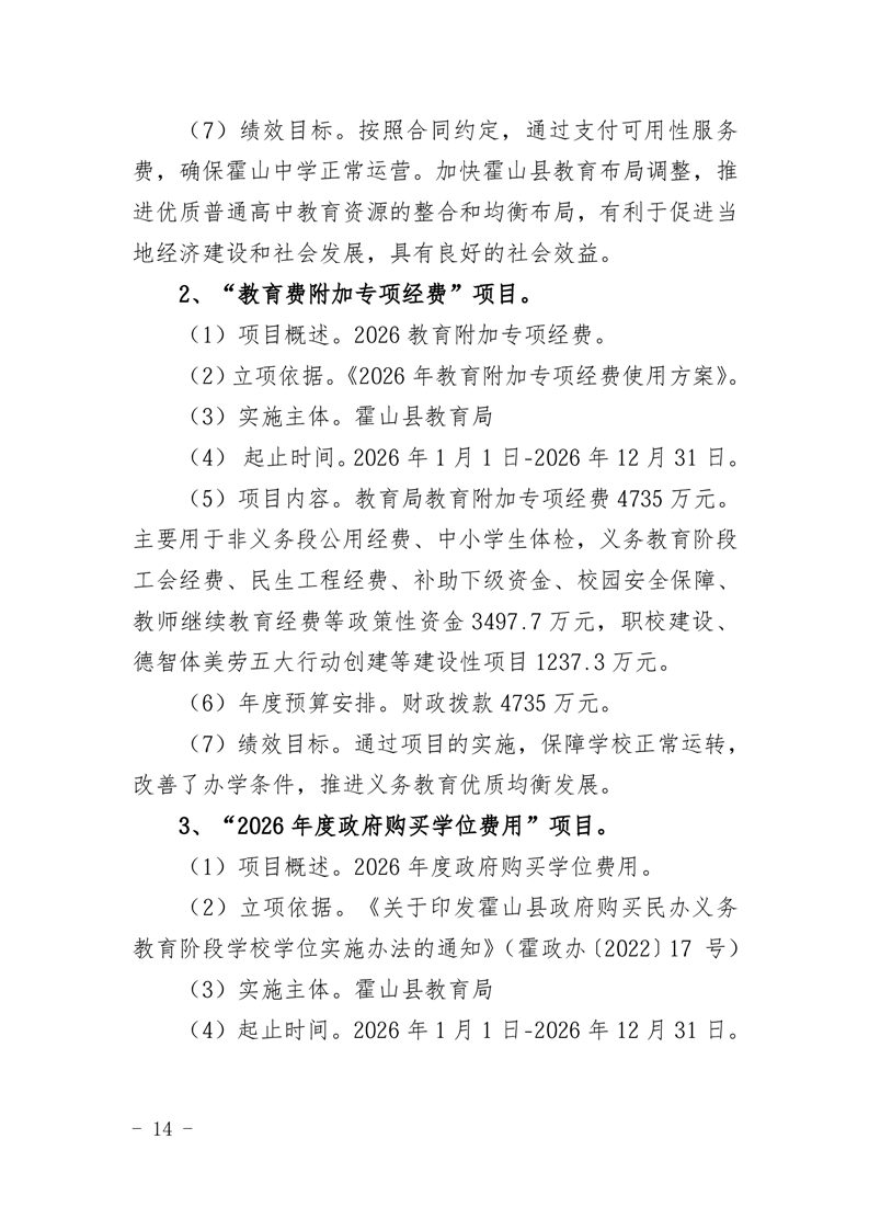 附表14 霍山县教育局(本级)2026年项目支出绩效目标表.pdf