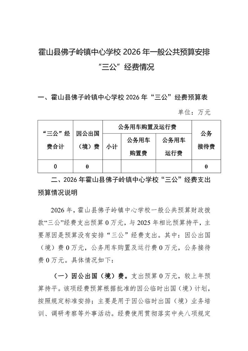 霍山县佛子岭镇中心学校2026年一般公共预算安排“三公”经费情况