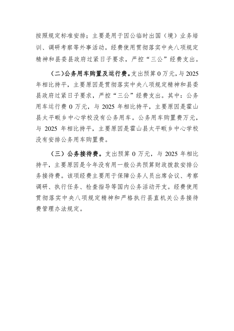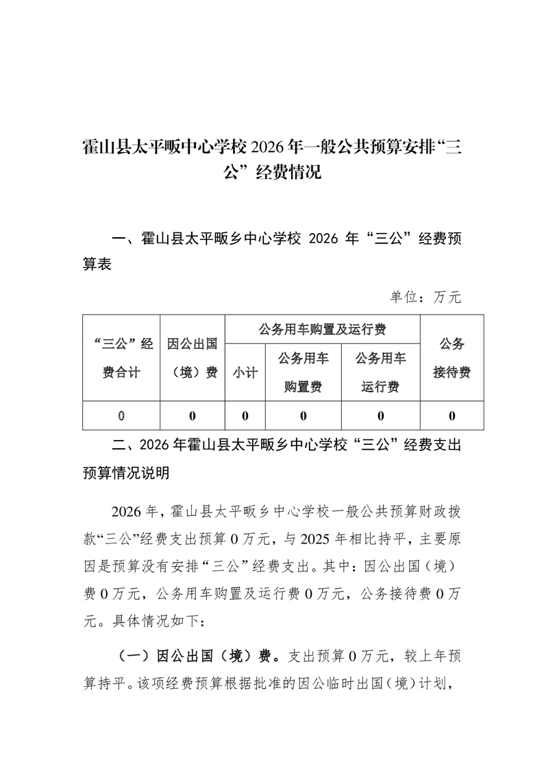 霍山县太平畈乡中心学校2026年一般公共预算安排“三公”经费情况