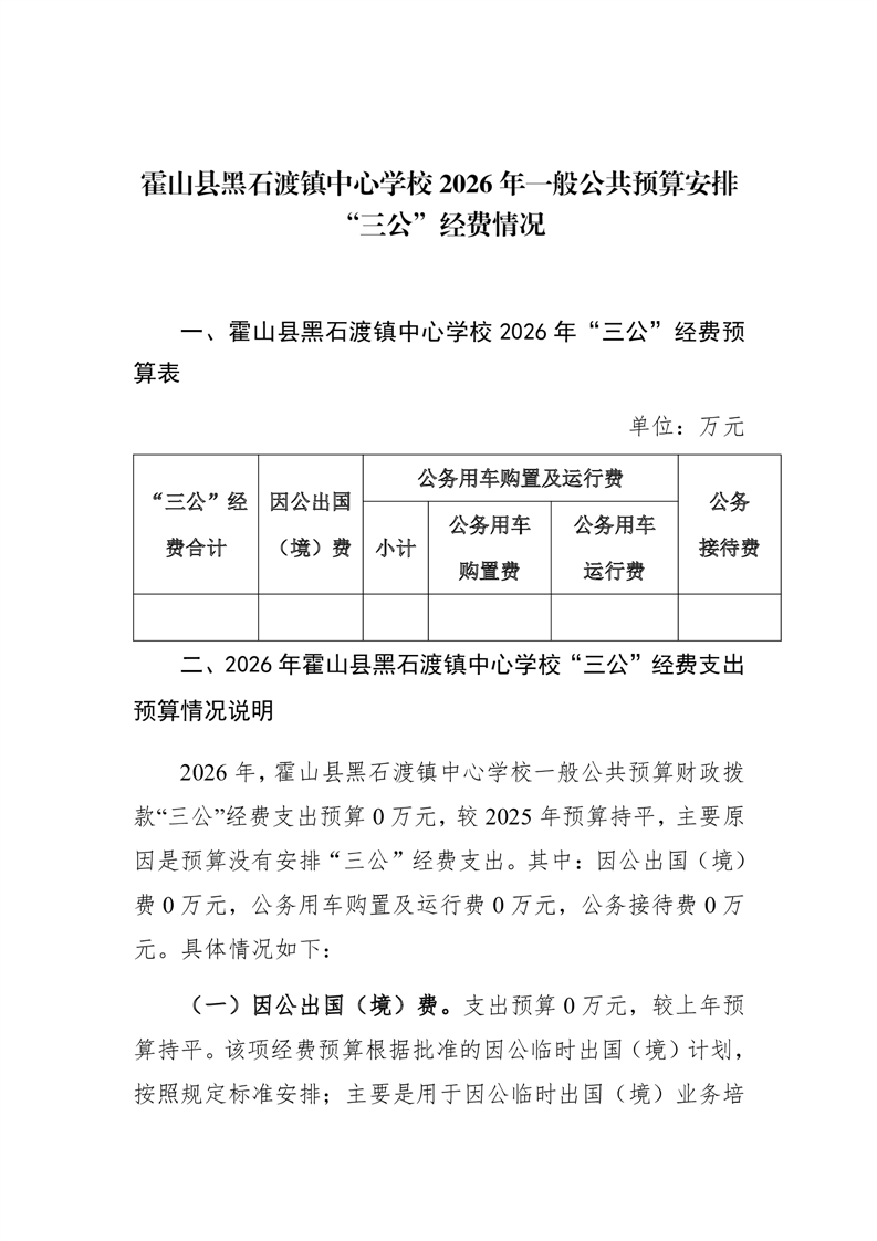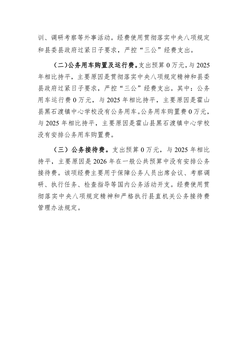 霍山县黑石渡镇中心学校2026年一般公共预算安排“三公”经费情况