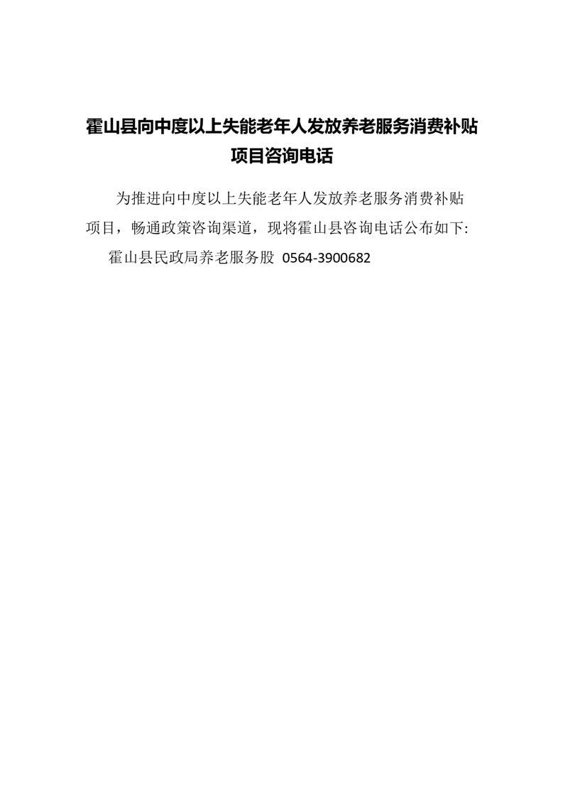霍山县向中度以上失能老年人发放养老服务消费补贴项目咨询电话
