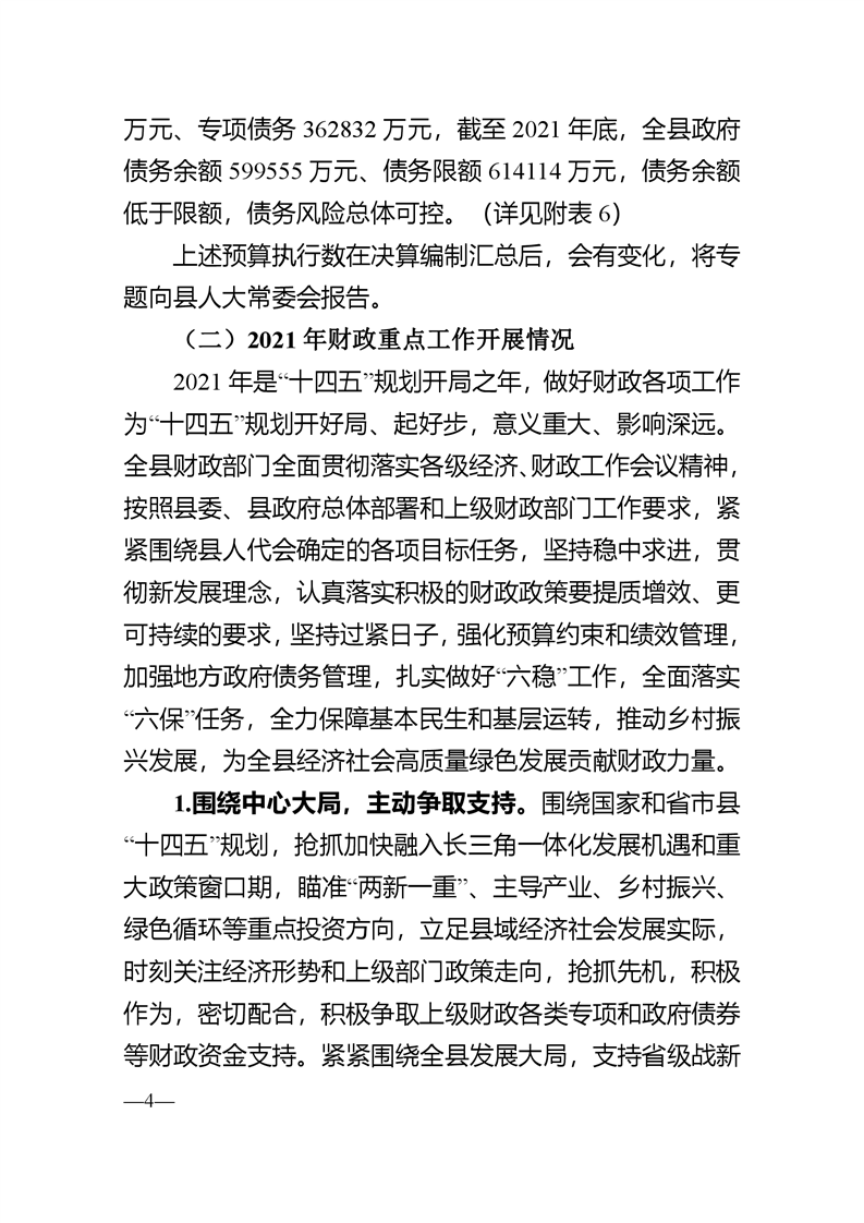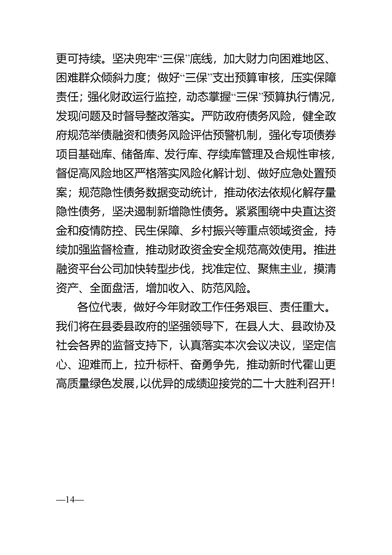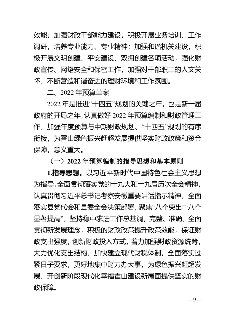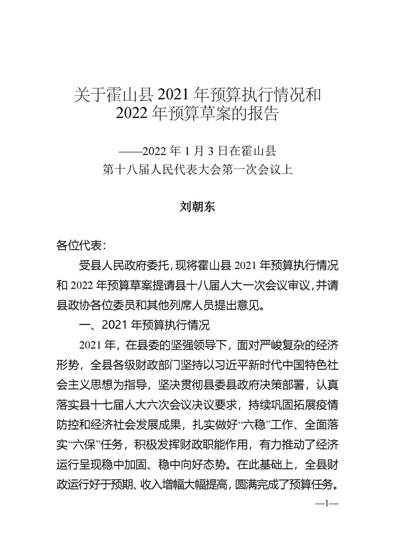 关于霍山县2021年预算执行情况和2022年预算草案的报告