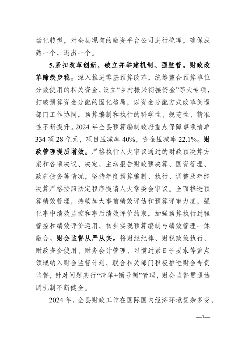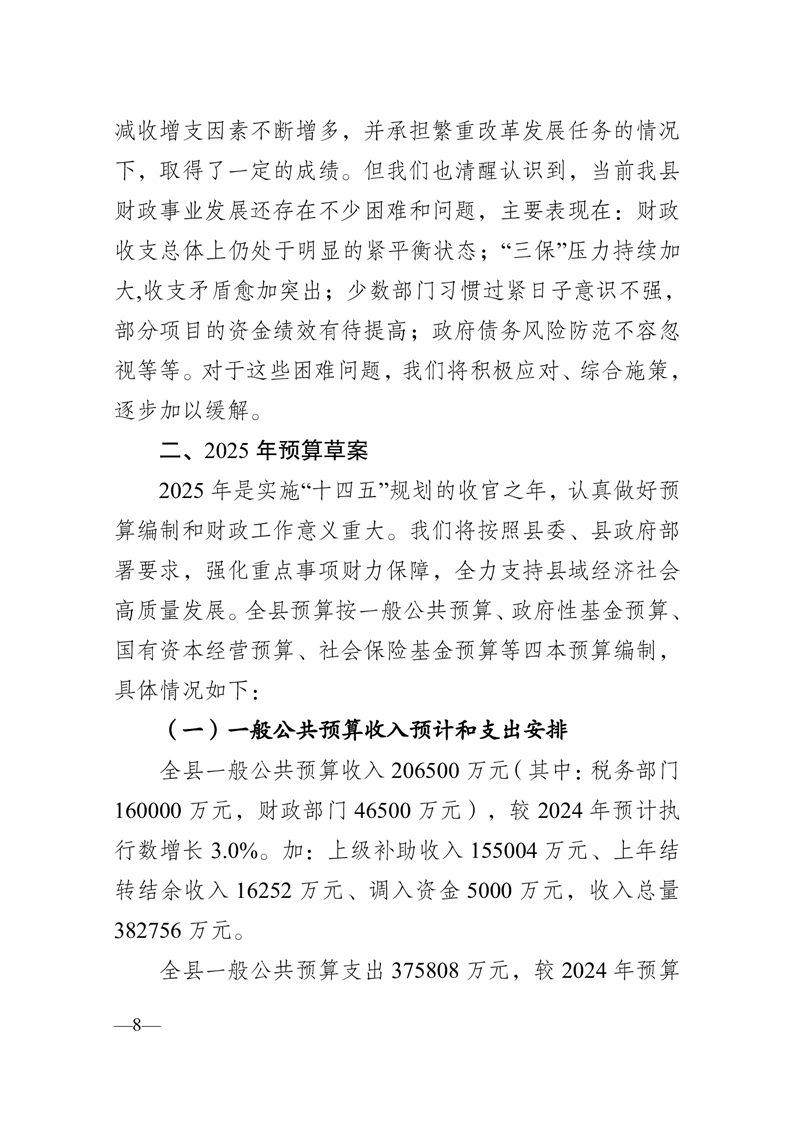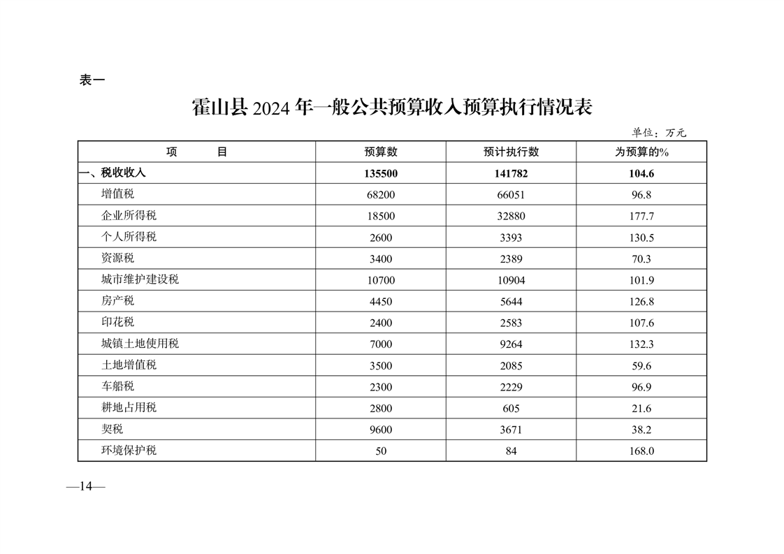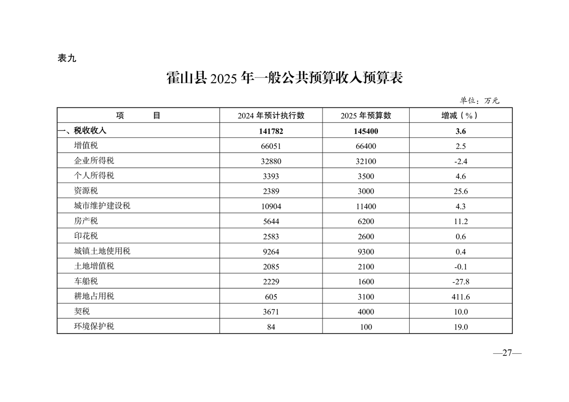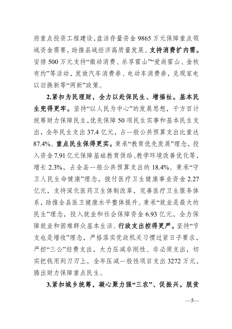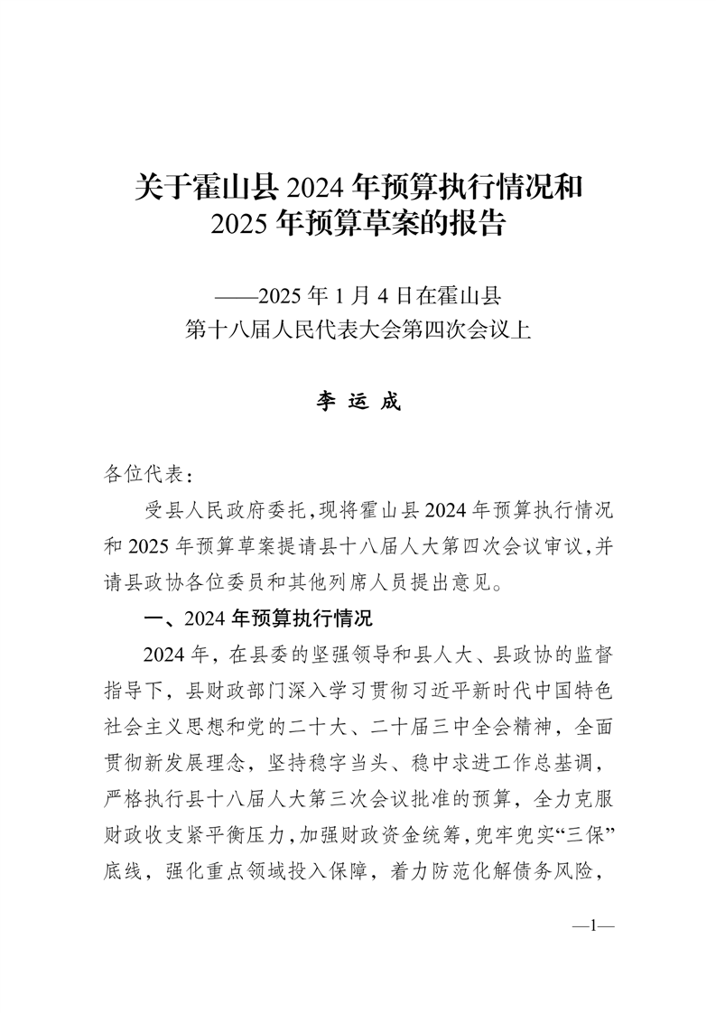 关于霍山县2024年预算执行情况和2025年预算草案的报告