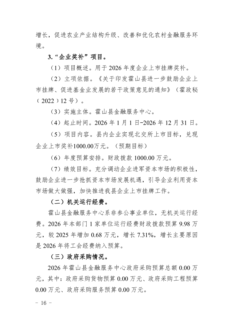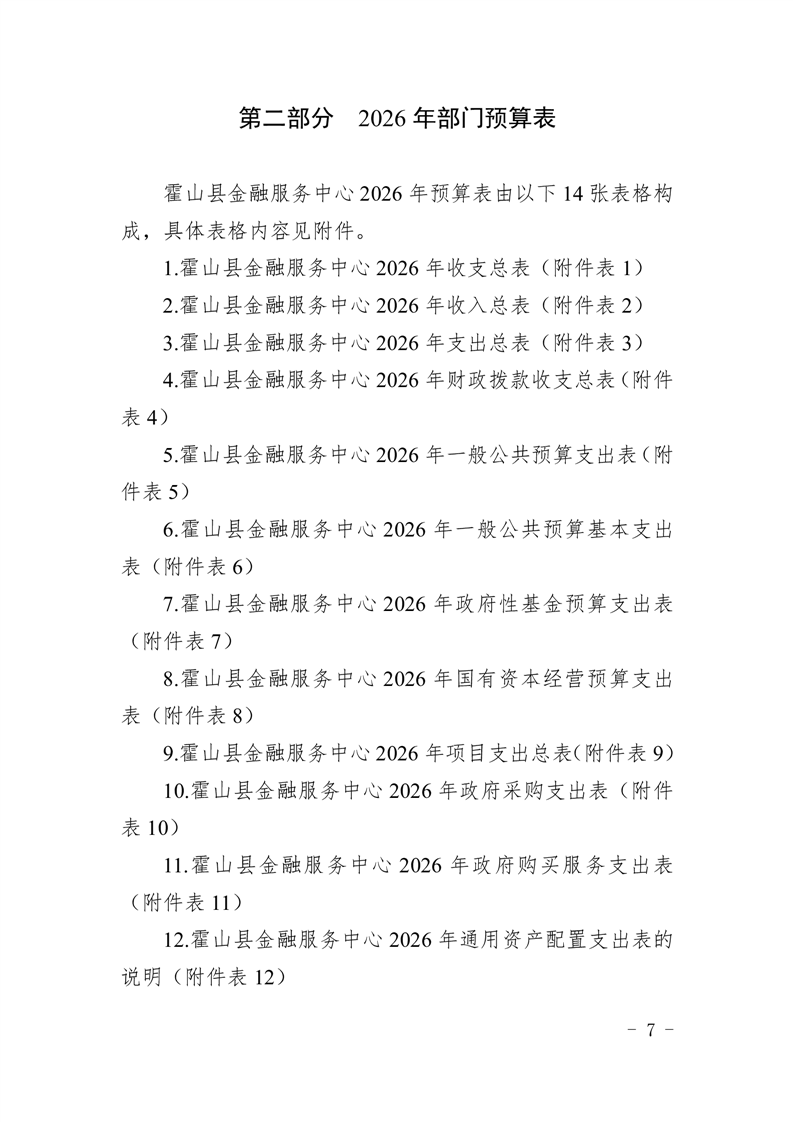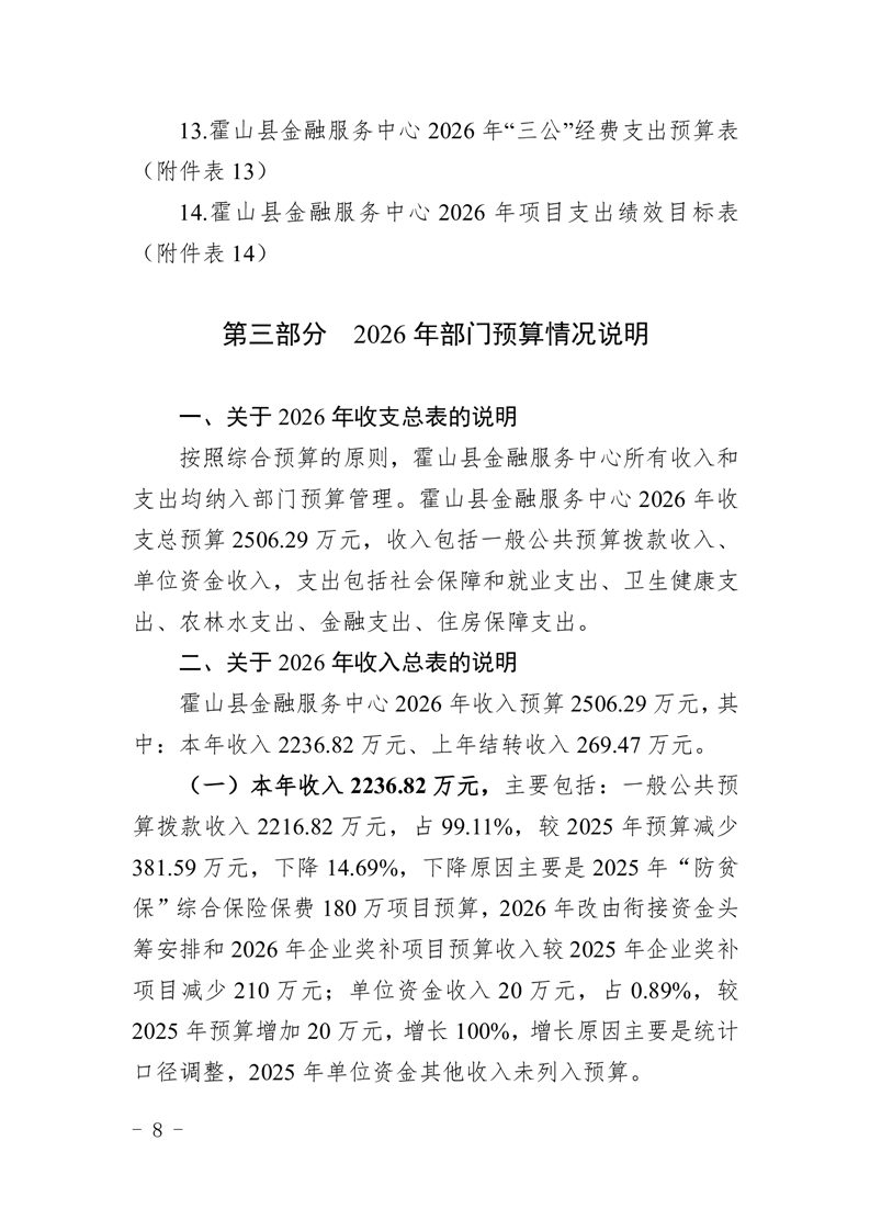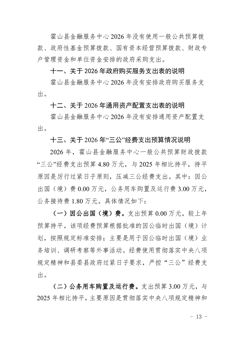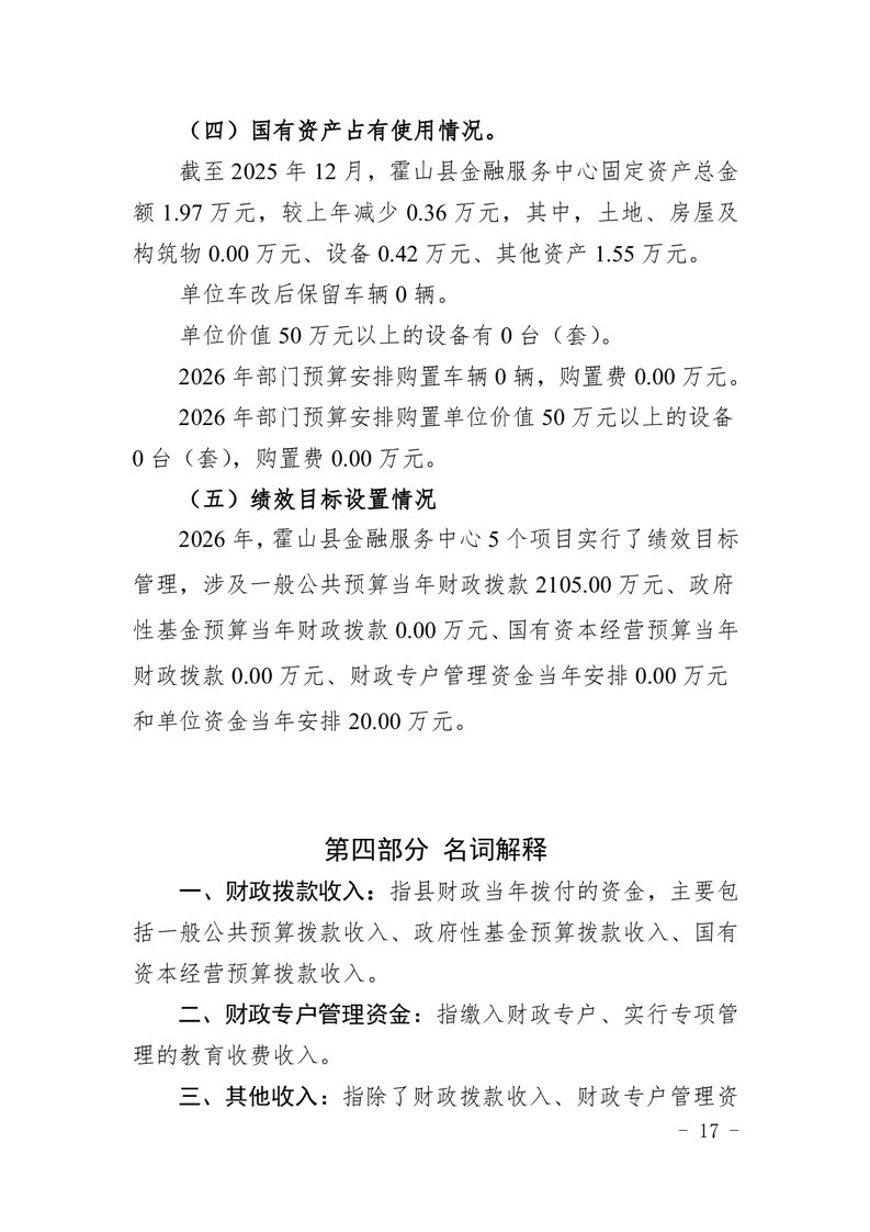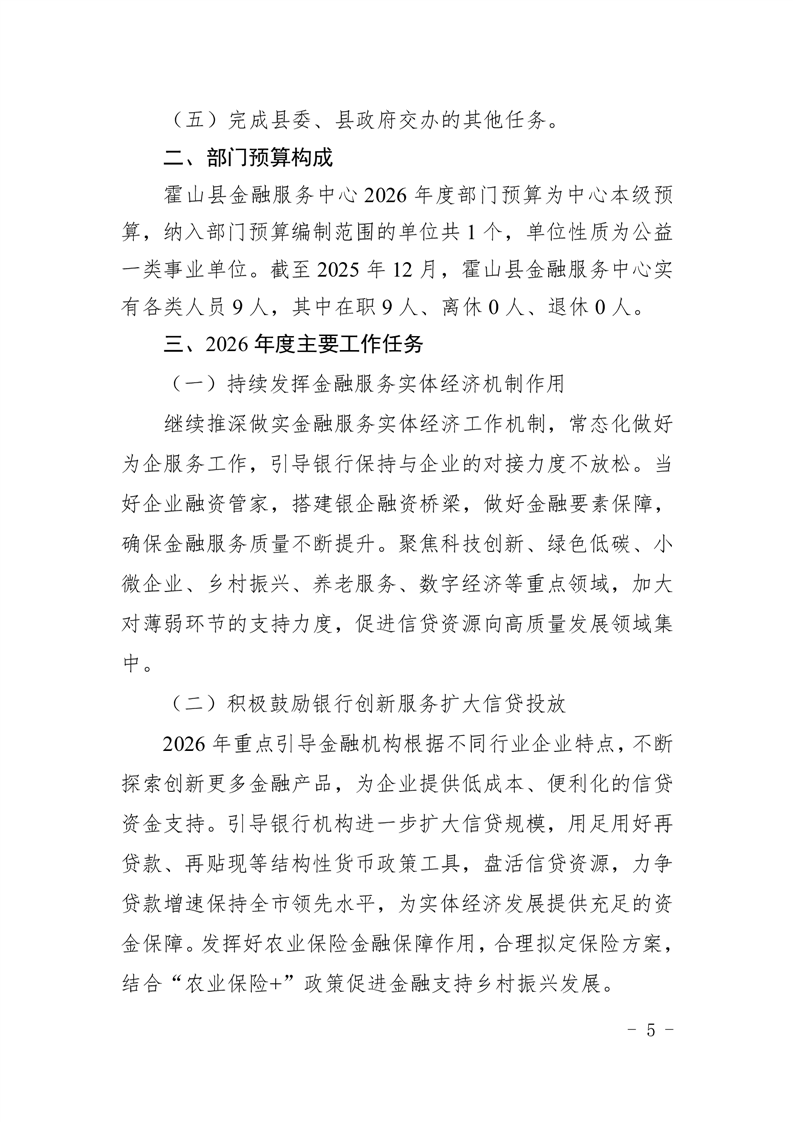 霍山县金融服务中心2026年部门预算
