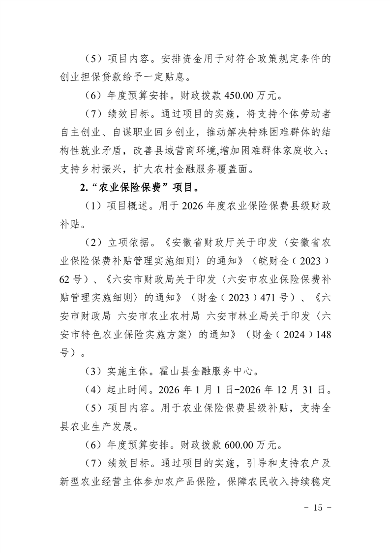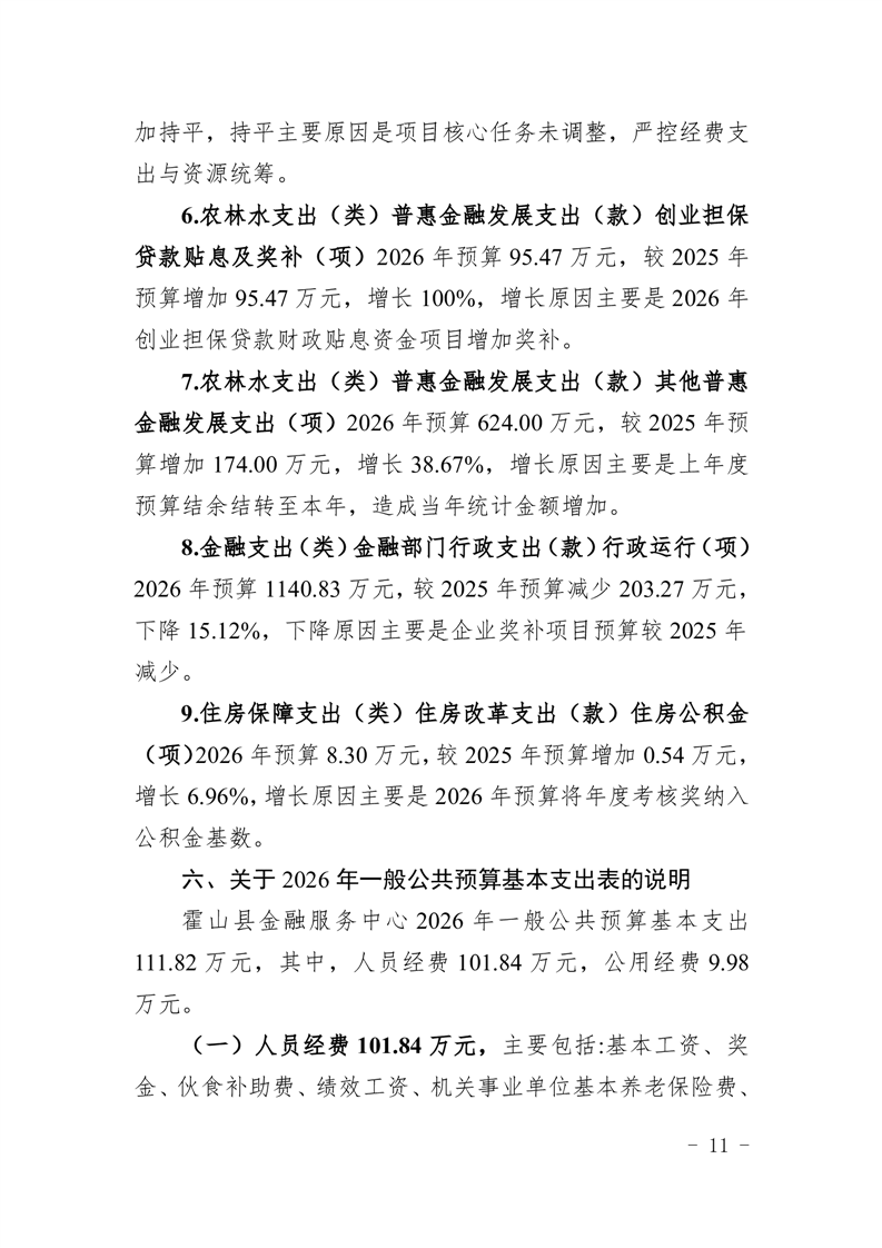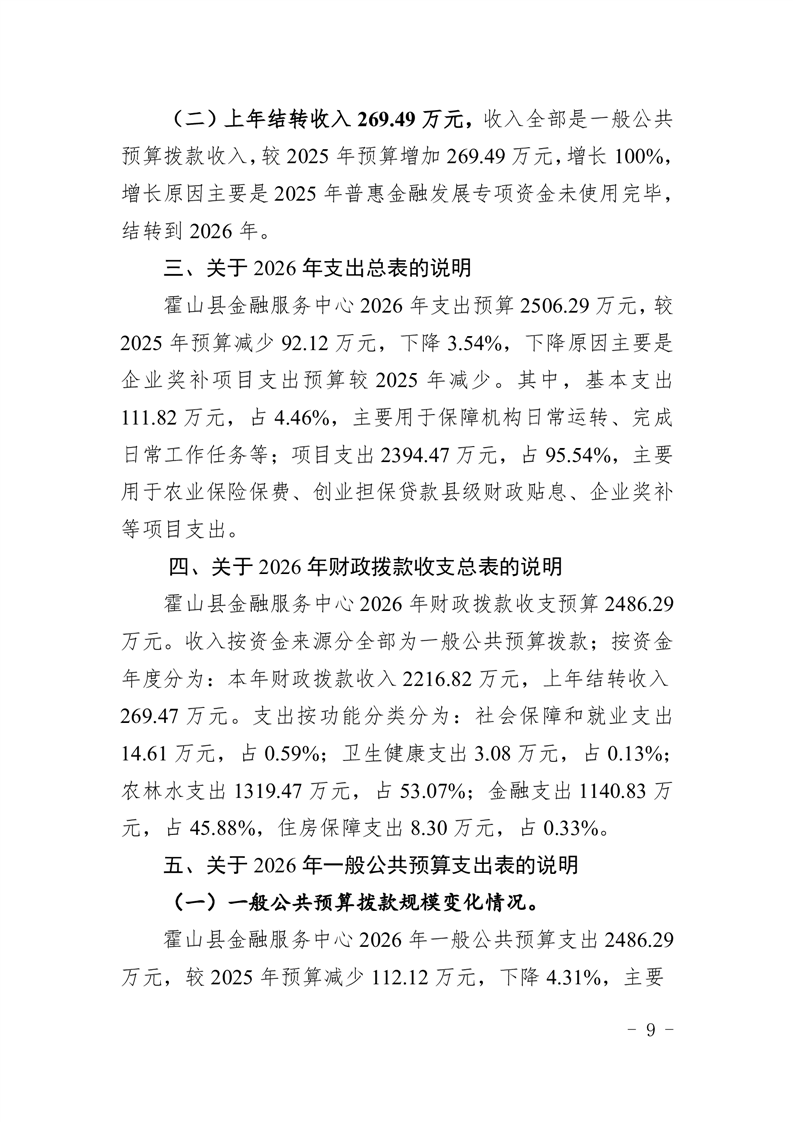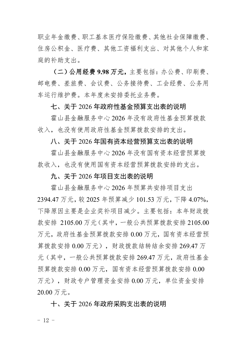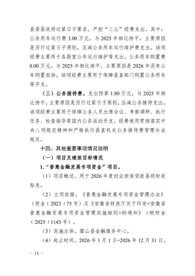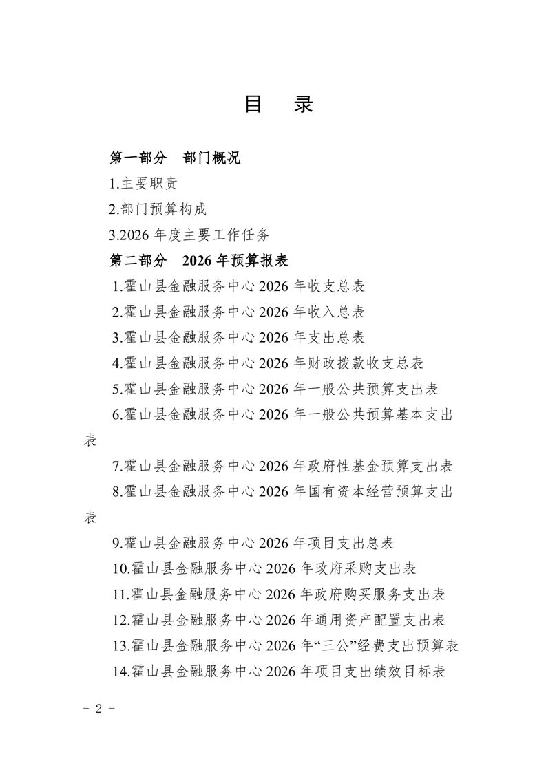 霍山县金融服务中心2026年部门预算