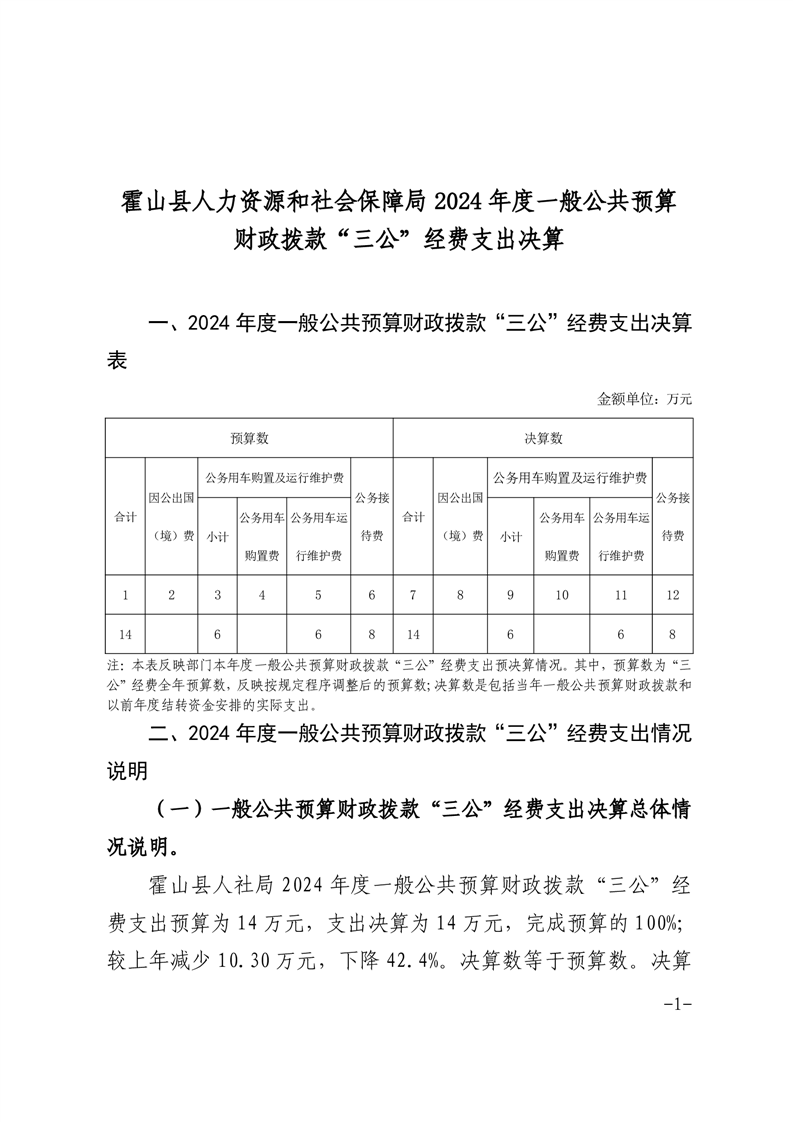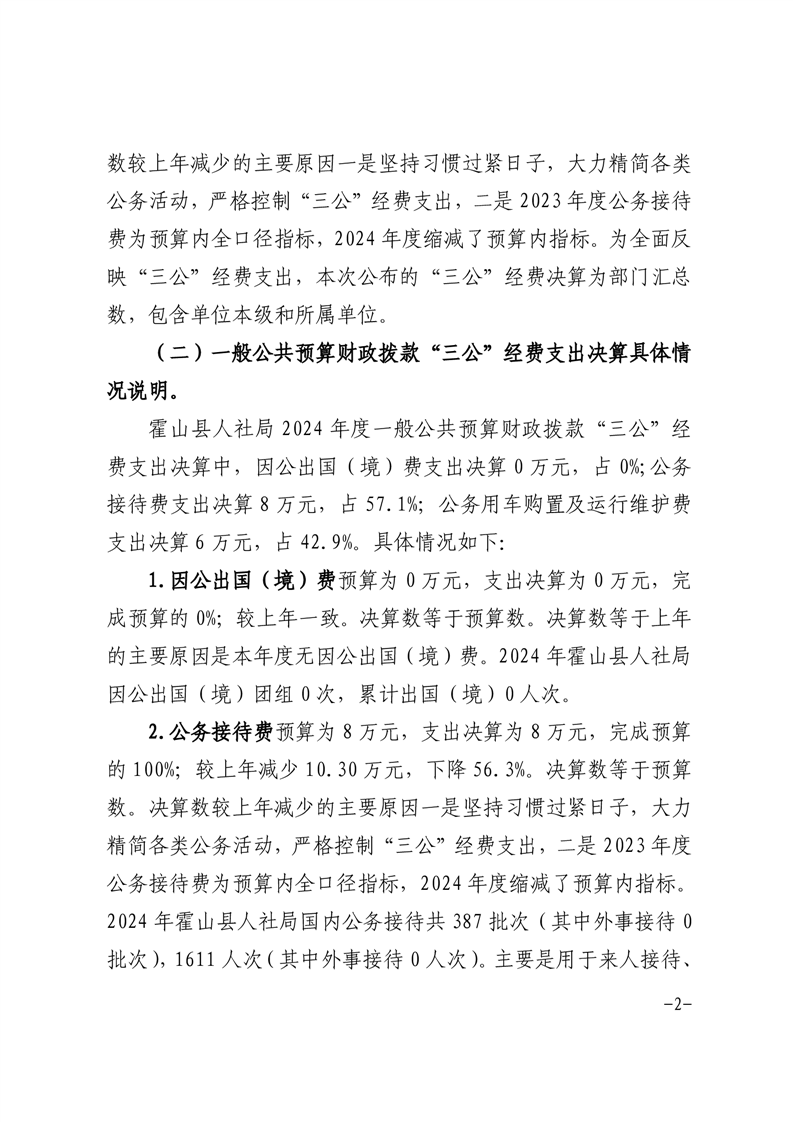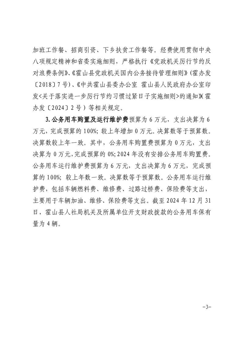 霍山县人力资源和社会保障局2024年度一般公共预算财政拨款“三公”经费支出决算