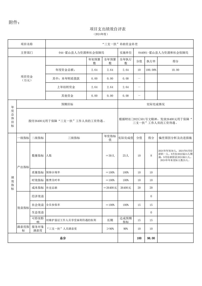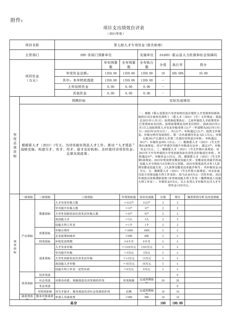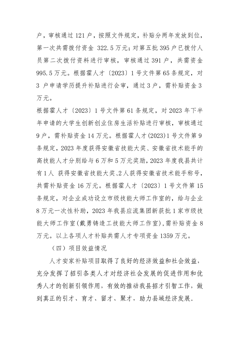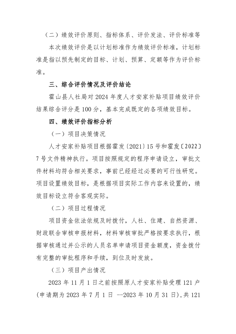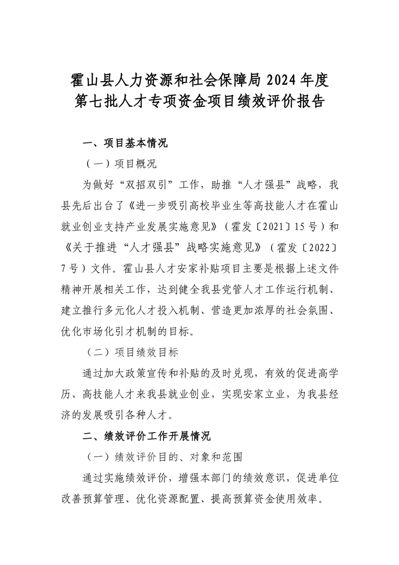 霍山县人力资源和社会保障局2024年度人才安家补贴项目绩效评价报告