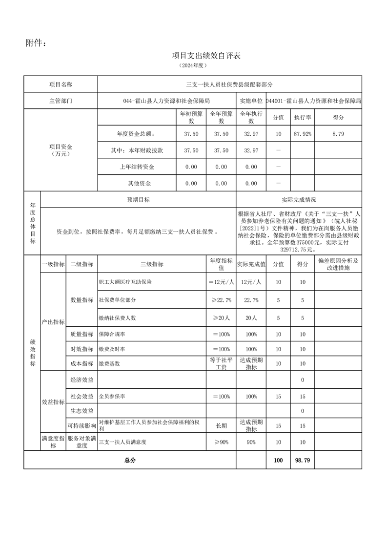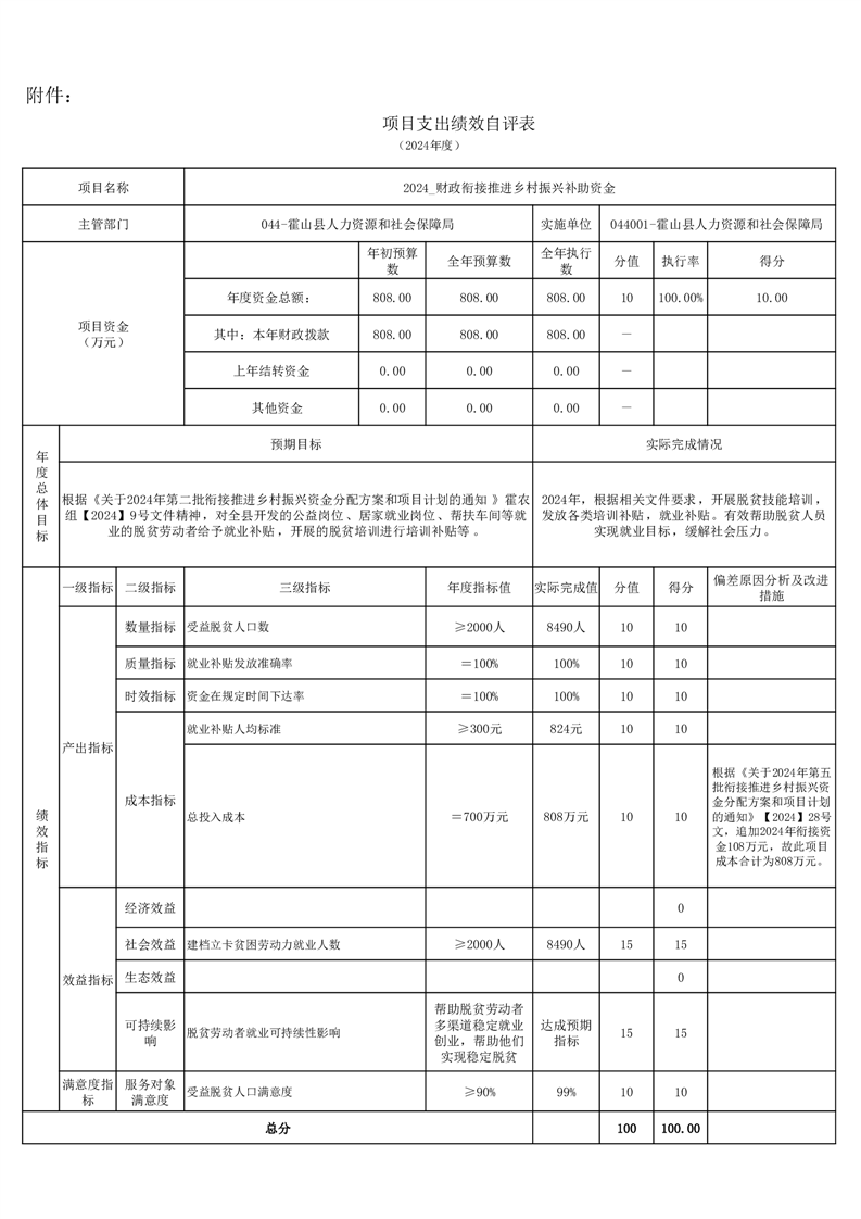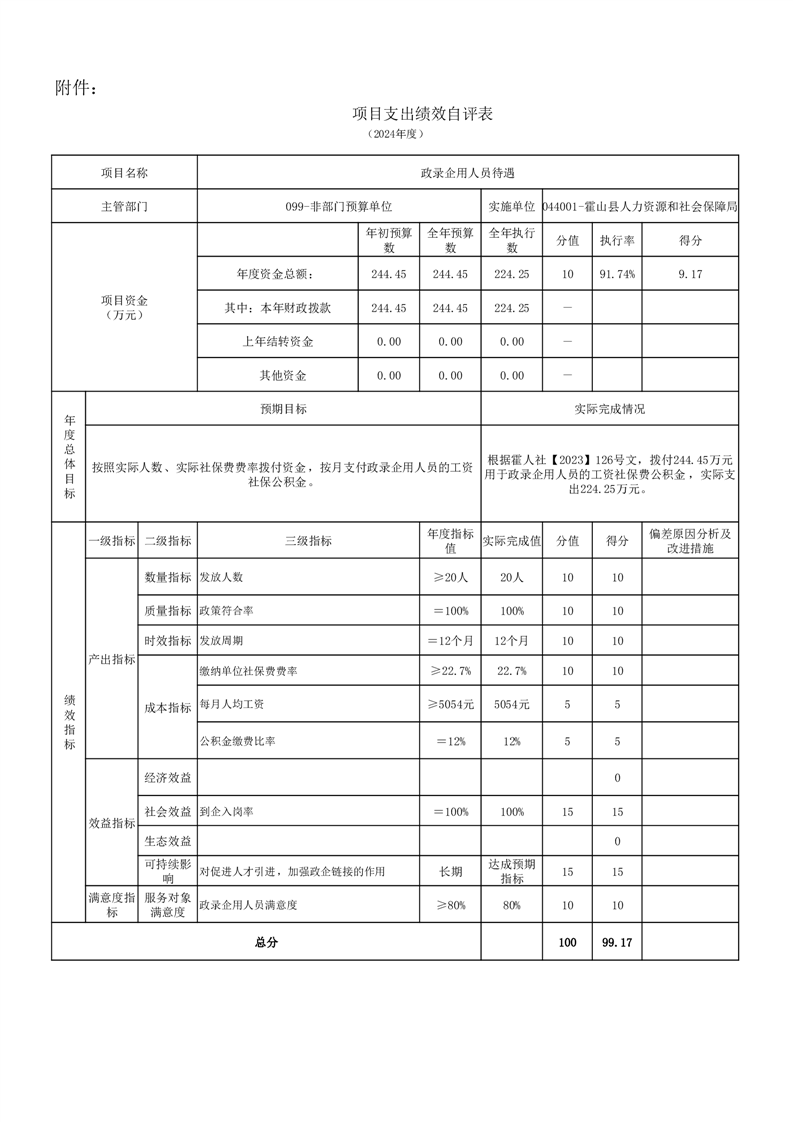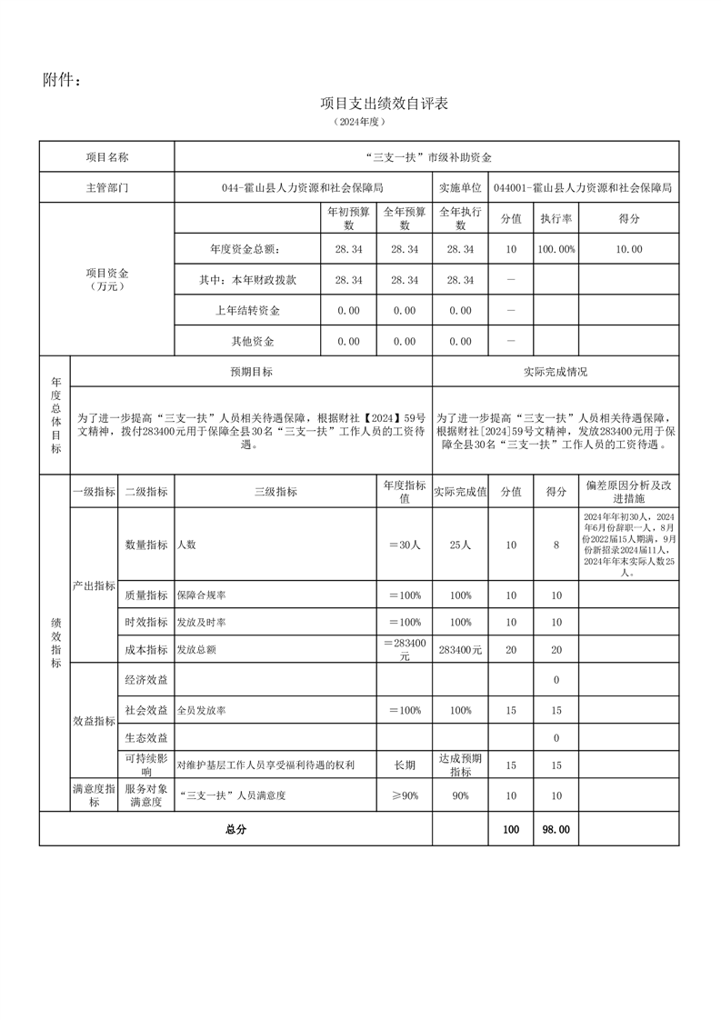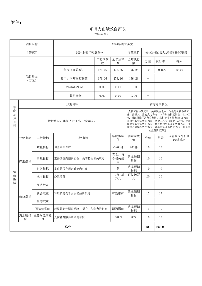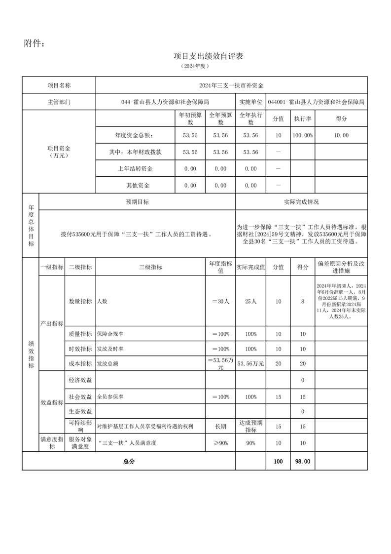 霍山县人力资源和社会保障局2024年度人才安家补贴项目绩效评价报告