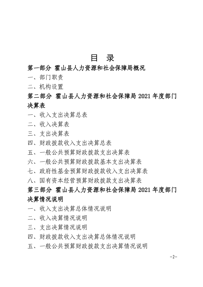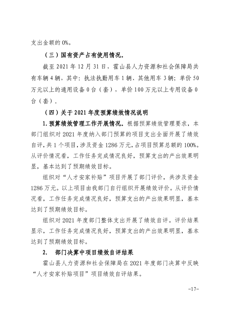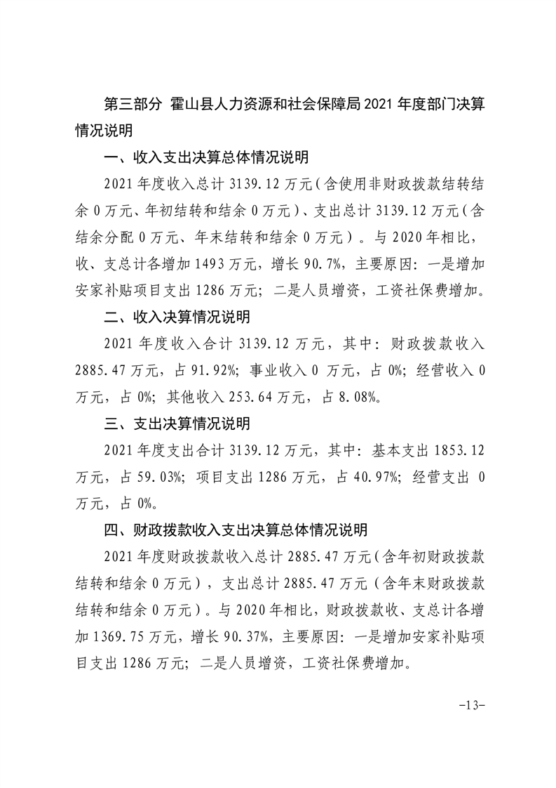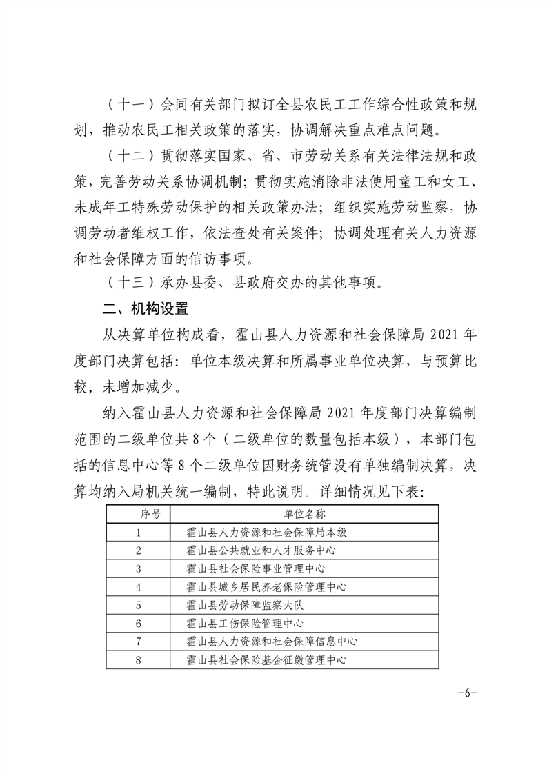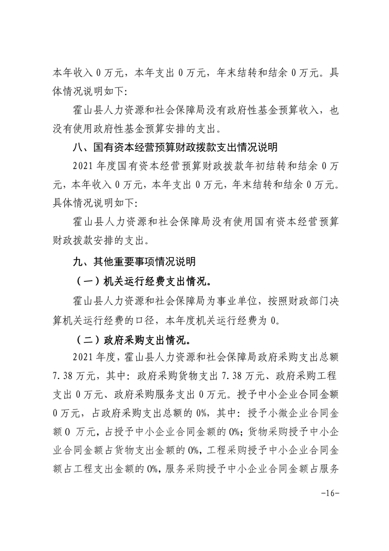 霍山县人力资源和社会保障局2021年度部门决算
