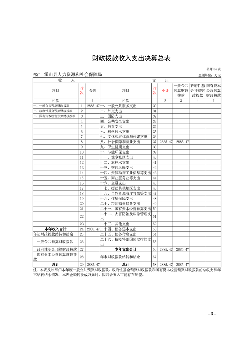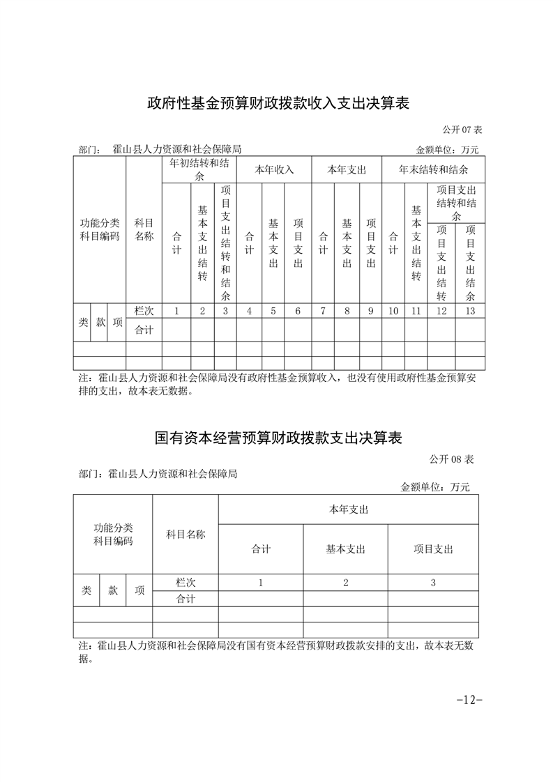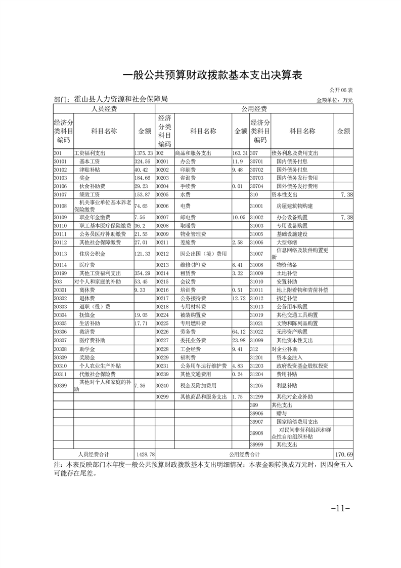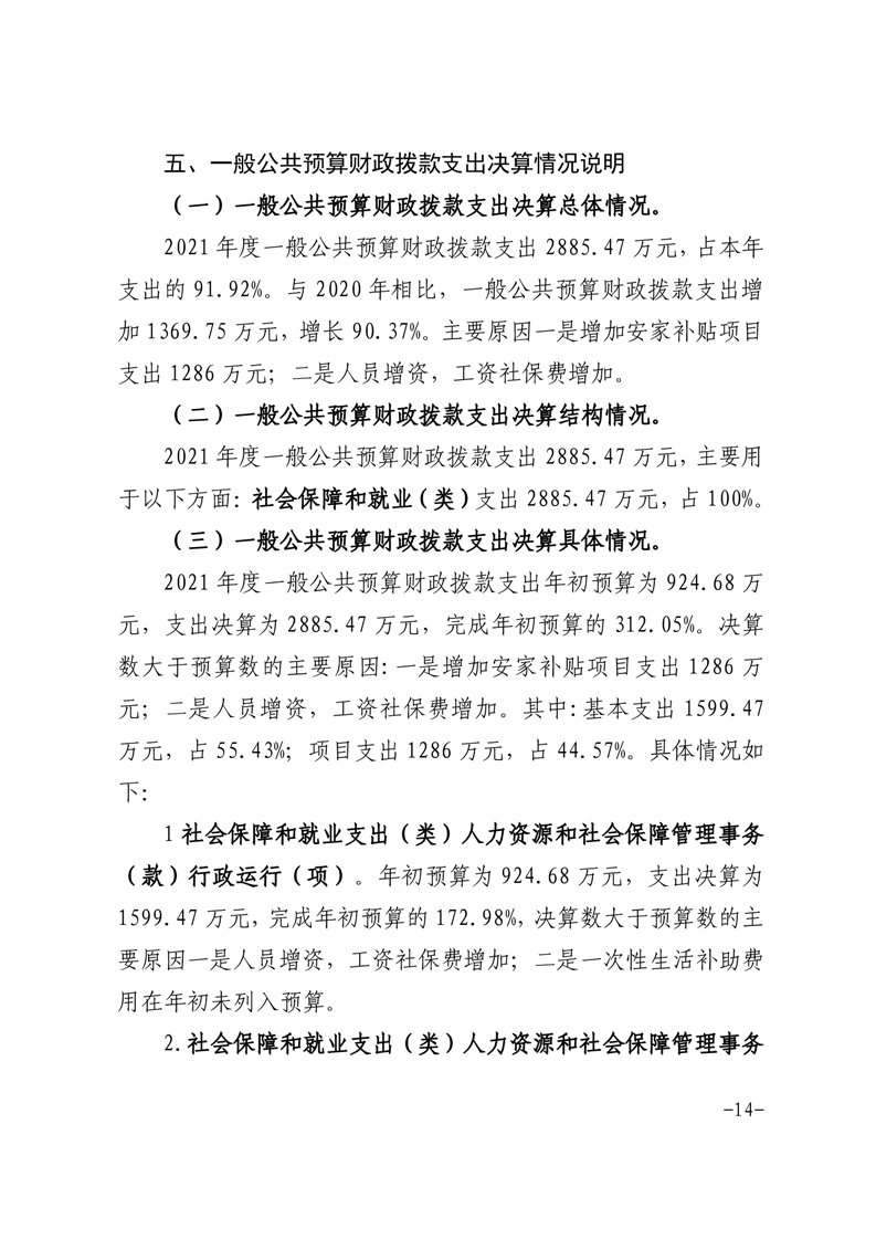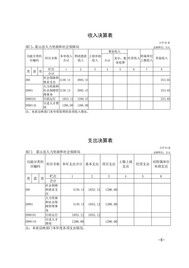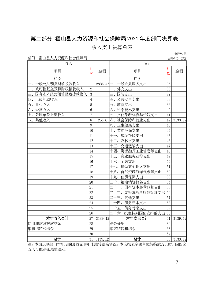 霍山县人力资源和社会保障局2021年度部门决算