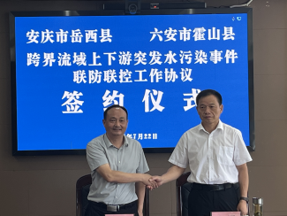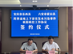 7月22日,安庆市岳西县与六安市霍山县跨界流域上下游突发水污染事件联防联控工作协议在霍山正式签订,两县生态环境、水利部门共同出席签约仪式。该协议旨在构建跨市流域水污染应急协同体系,最大限度控制、减轻和消除突发水污染事件危害,筑牢流域上下游生态环境安全防线。