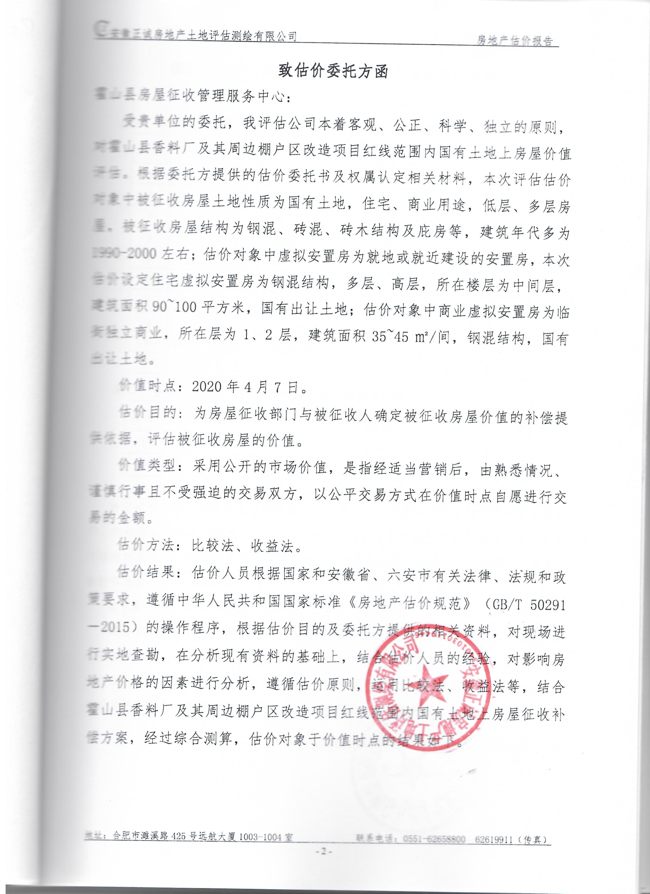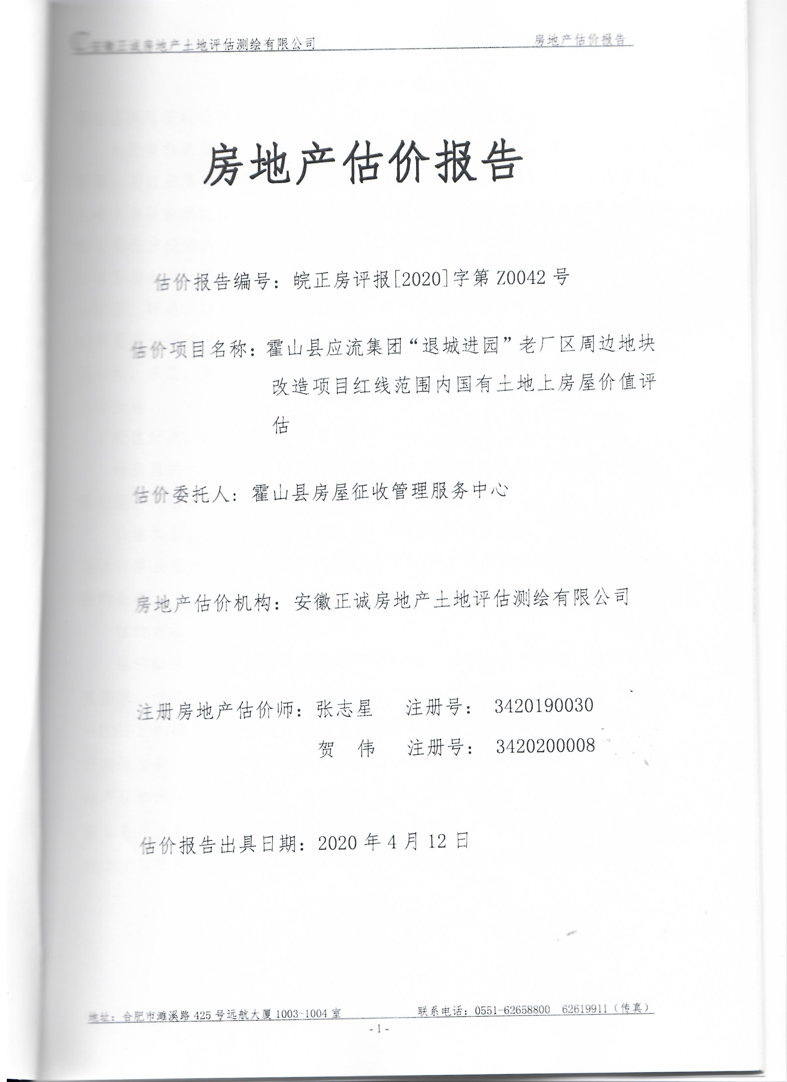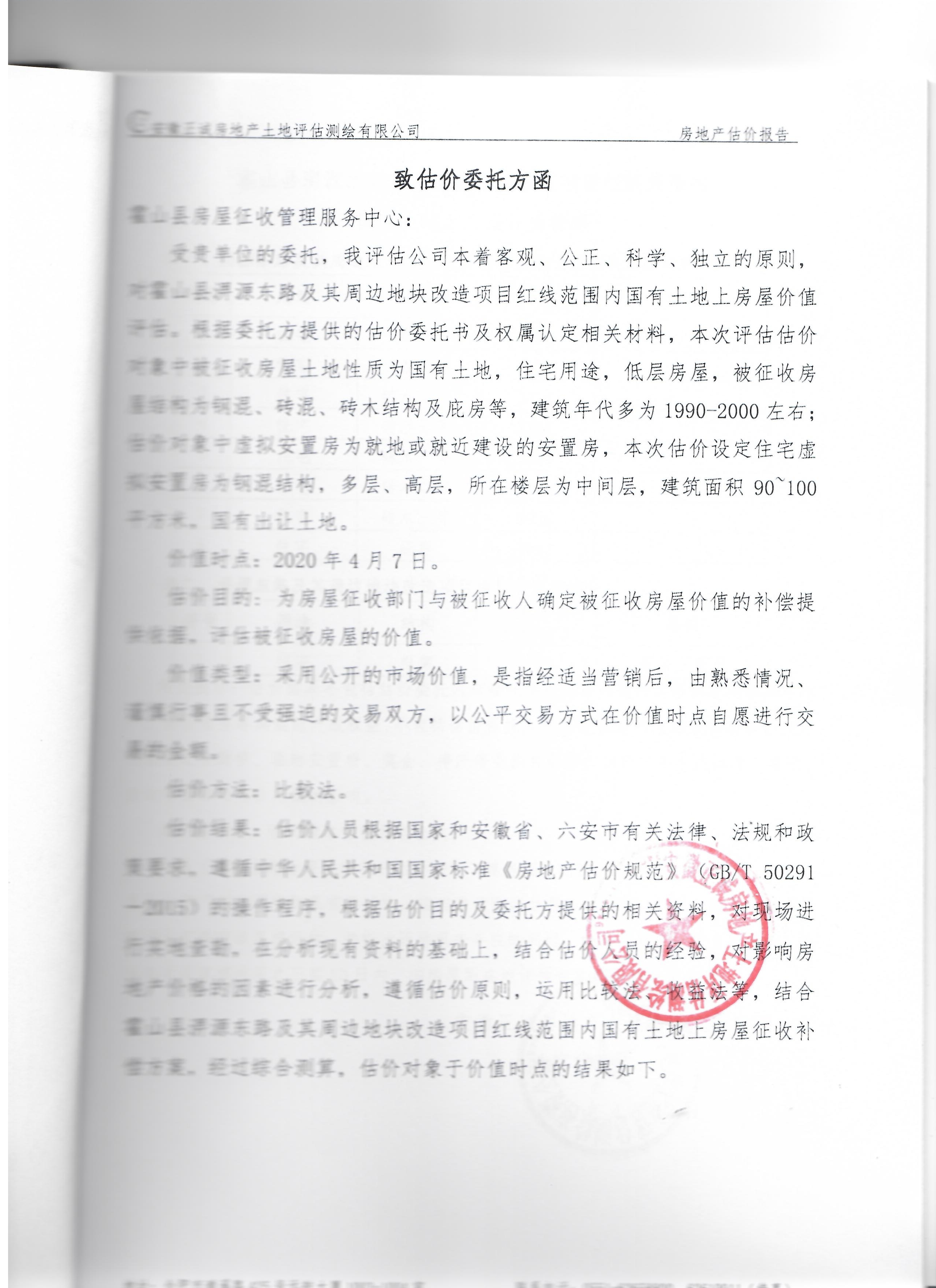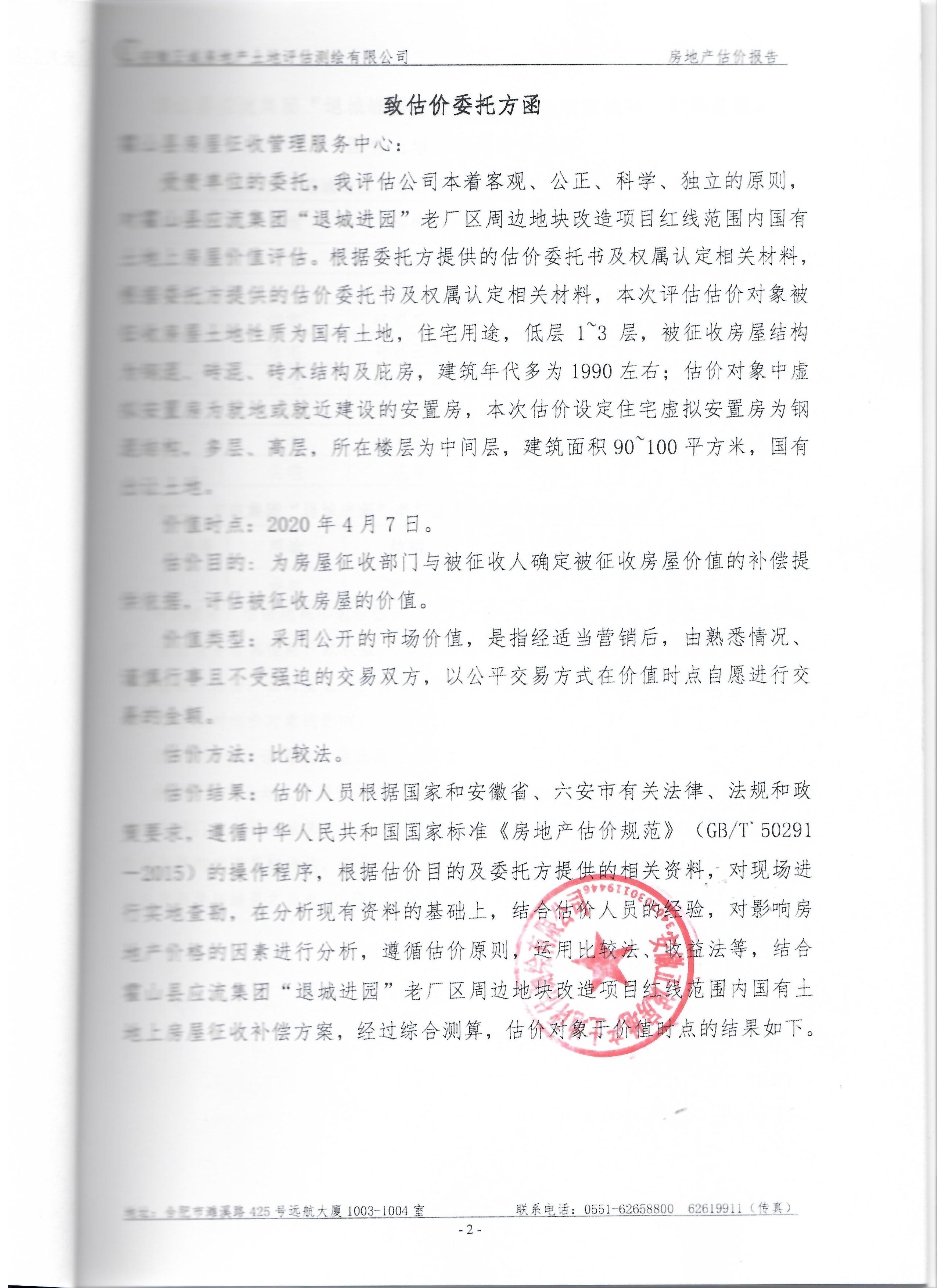 霍山县酒源大道北段、淠源东路及其周边、香料厂及其周边、新城小学迁建项目、应流集团“退城进园”项目及其周边等国有土地上房屋价值评估报告