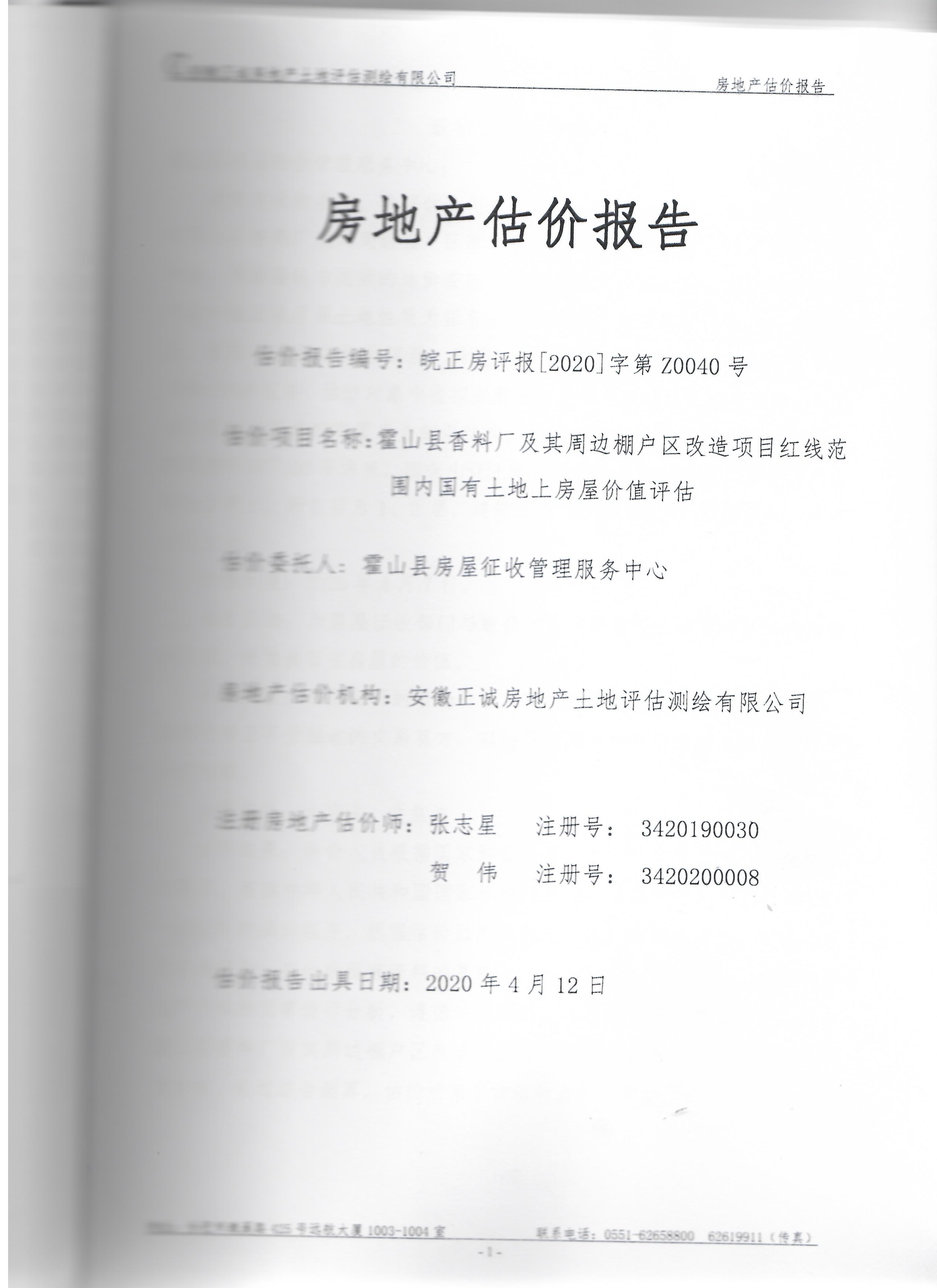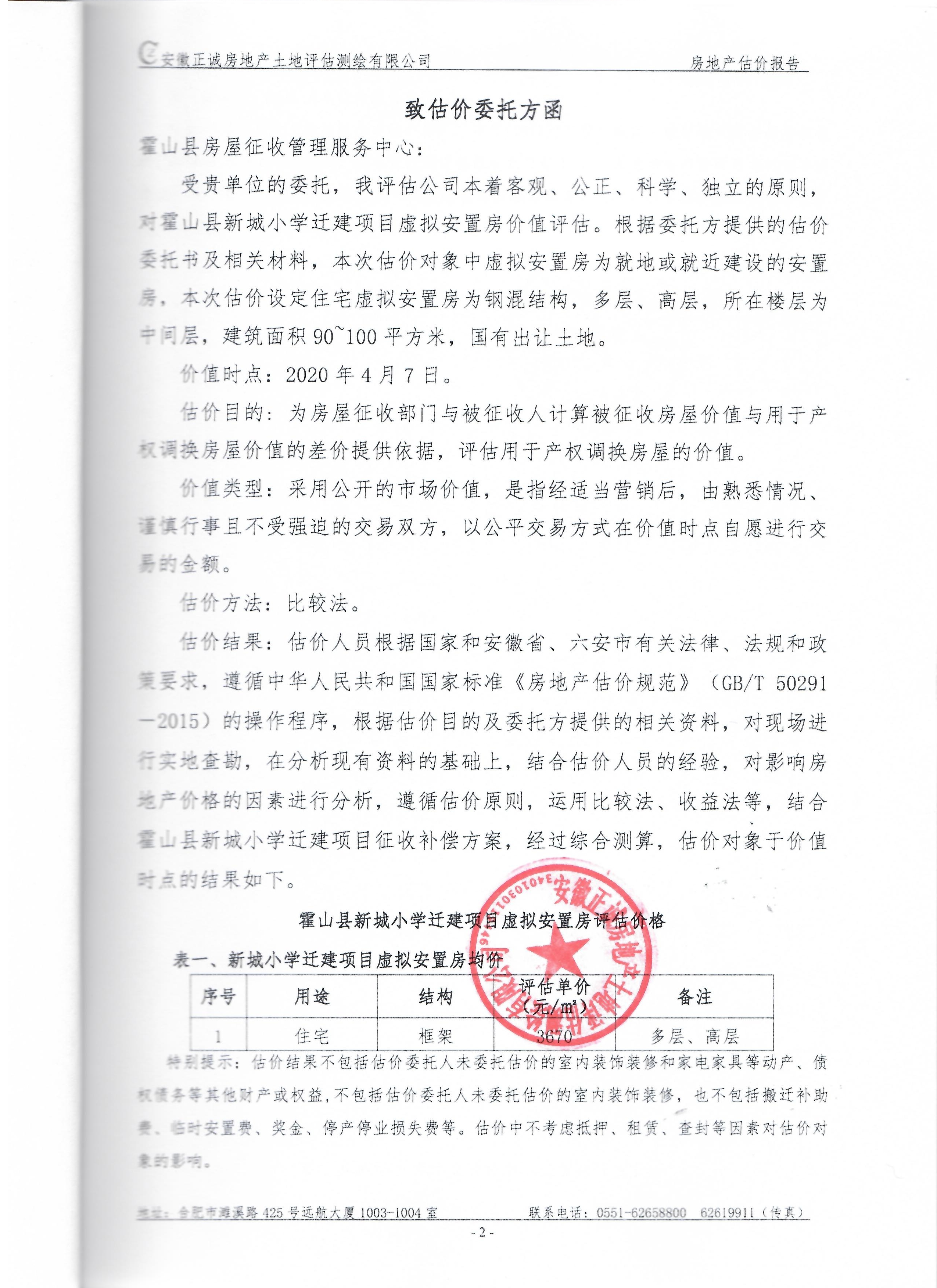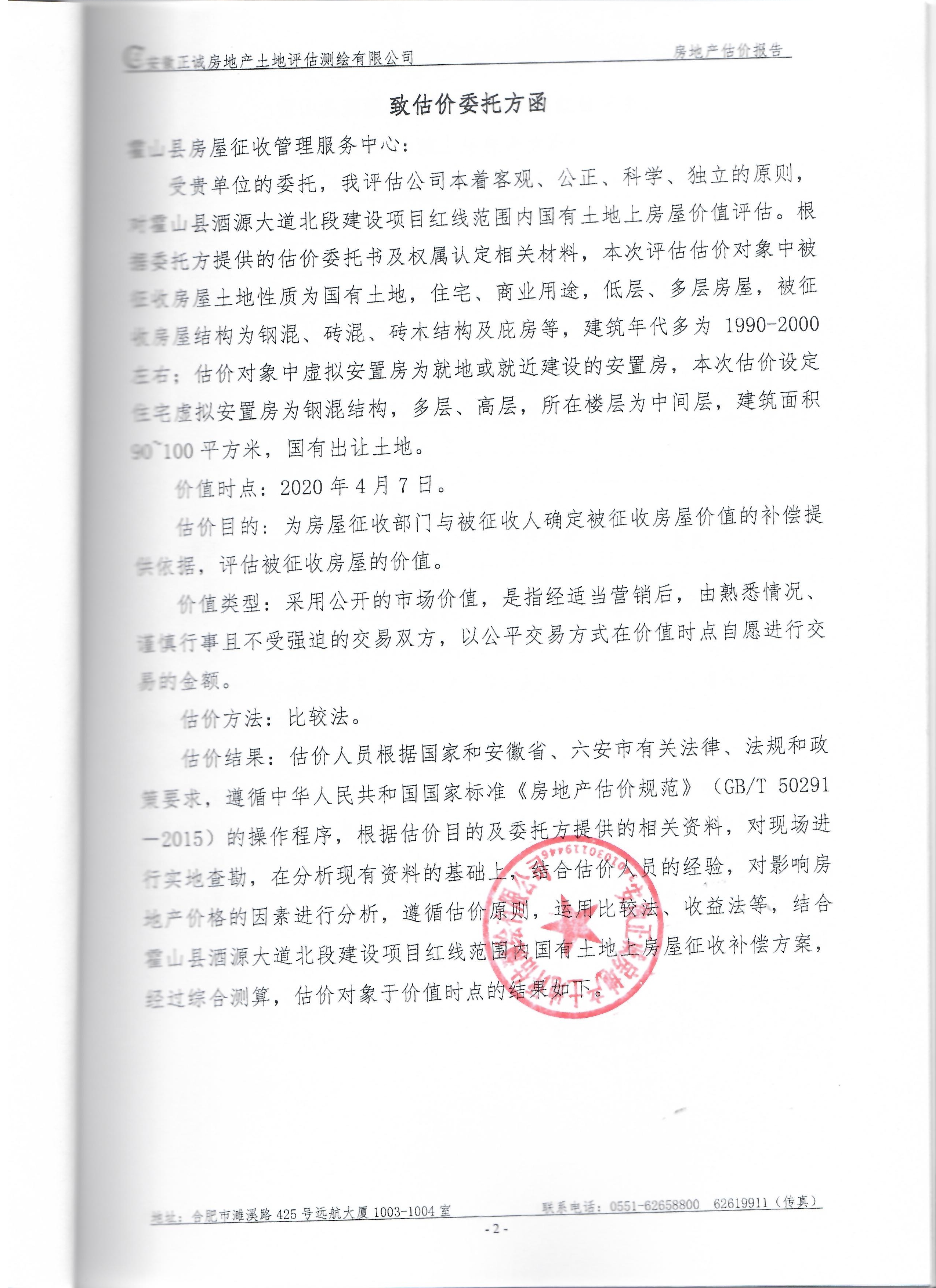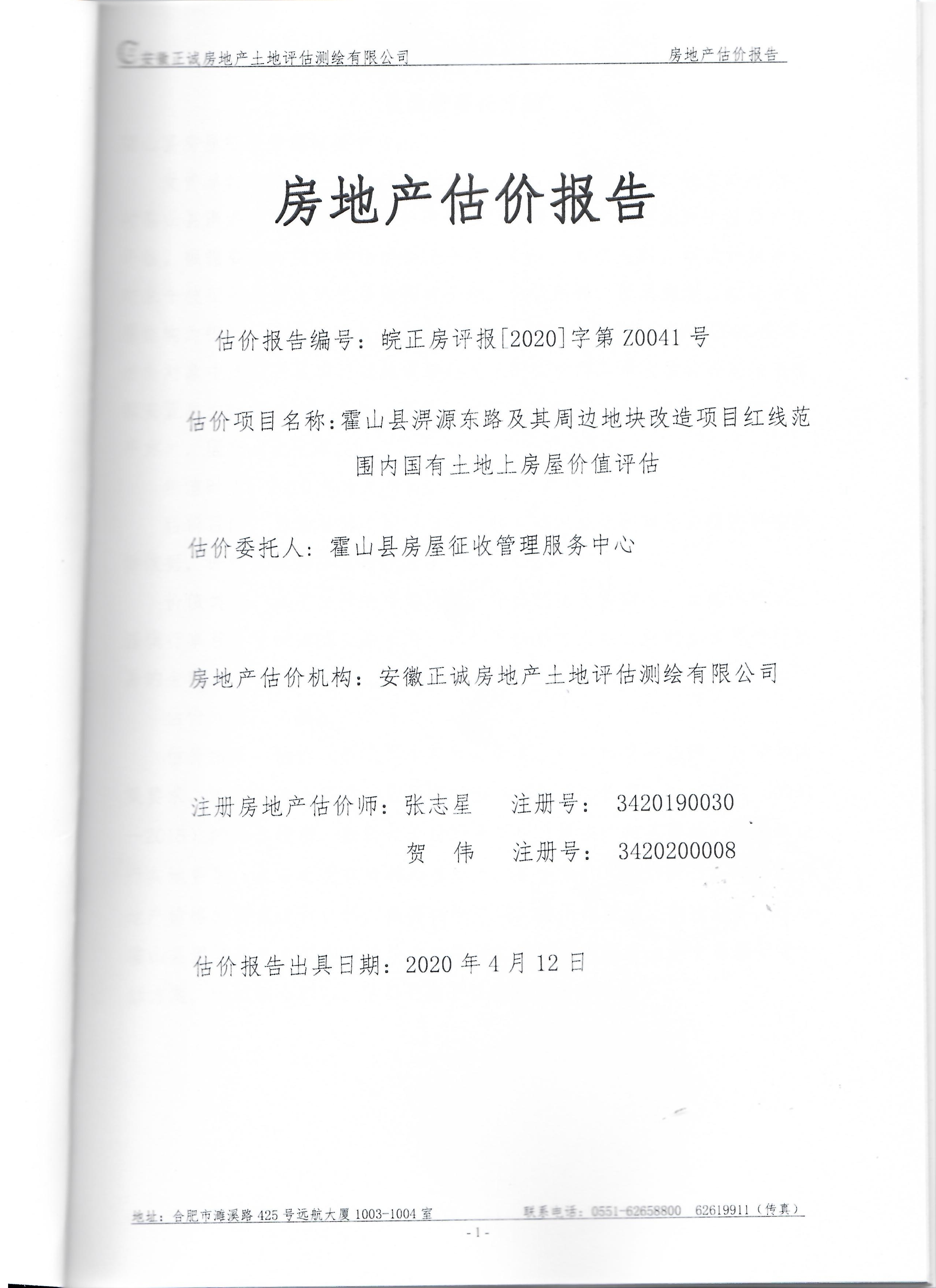 霍山县酒源大道北段、淠源东路及其周边、香料厂及其周边、新城小学迁建项目、应流集团“退城进园”项目及其周边等国有土地上房屋价值评估报告