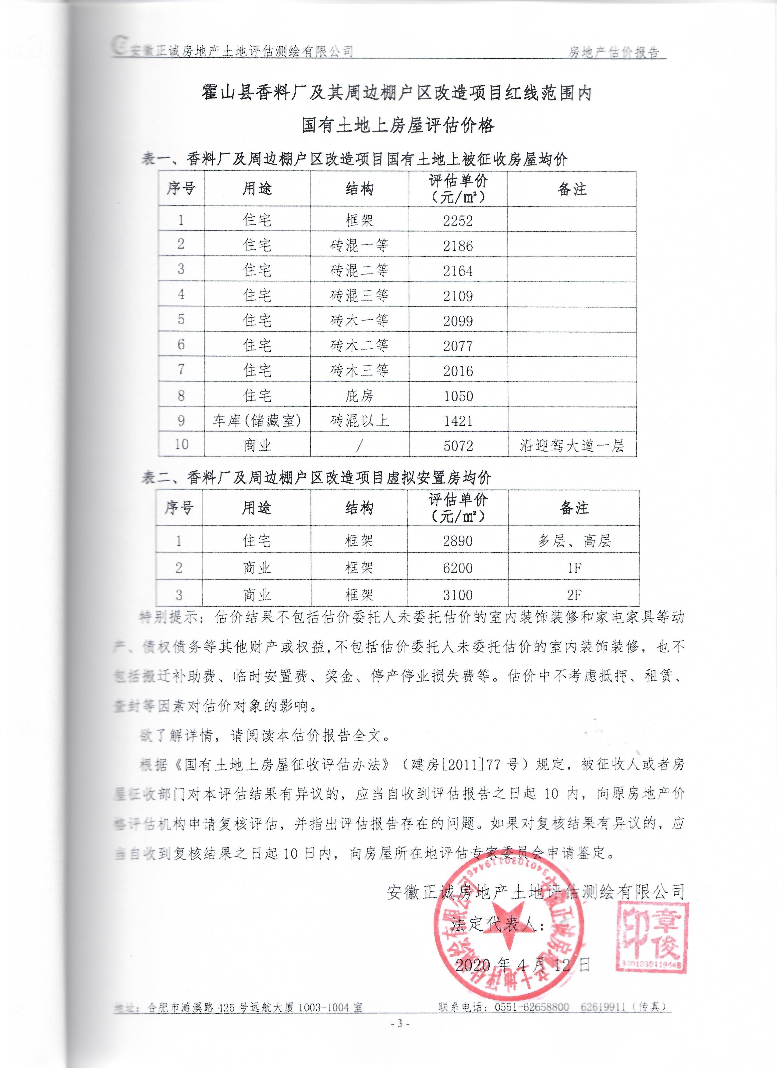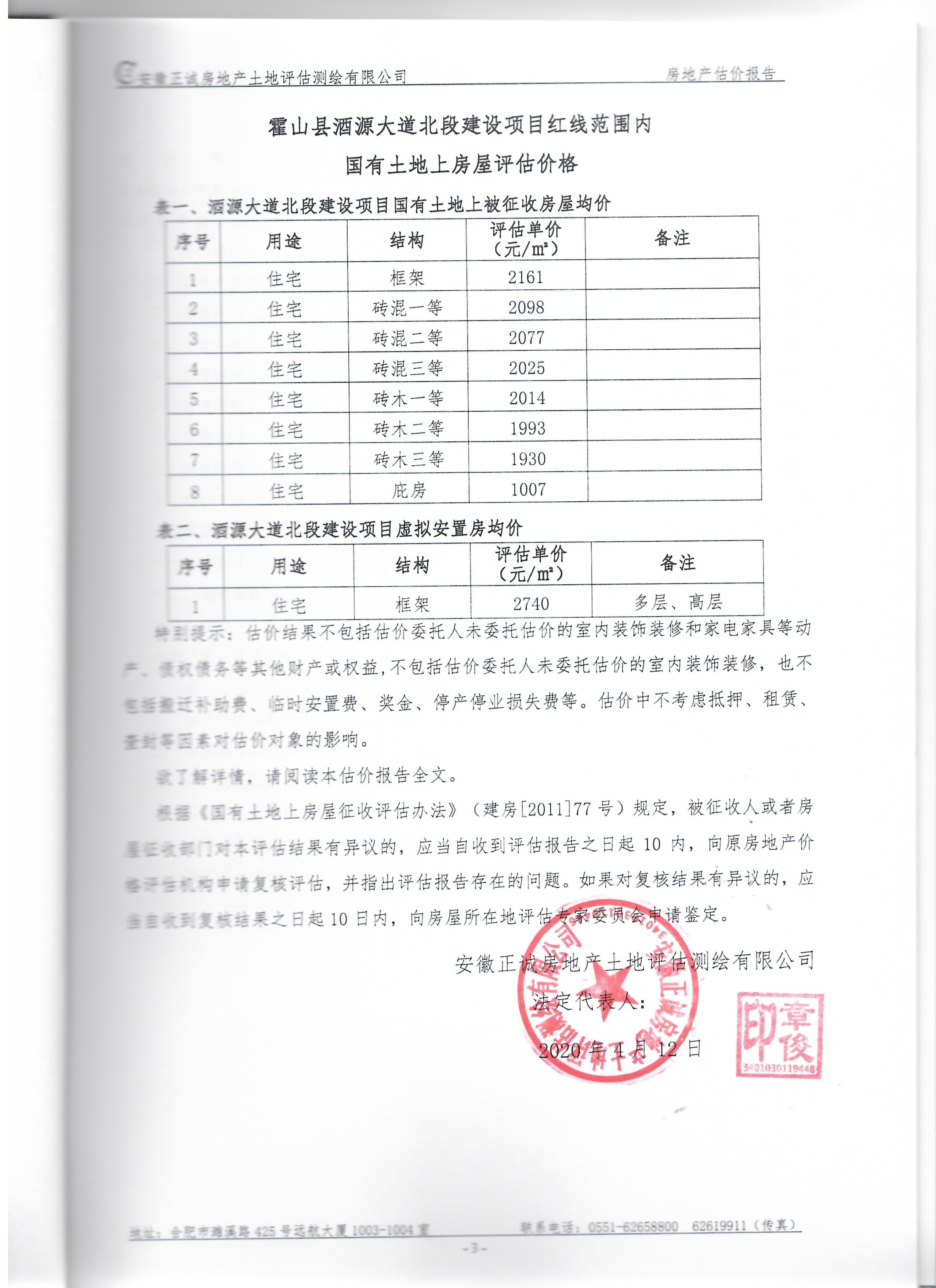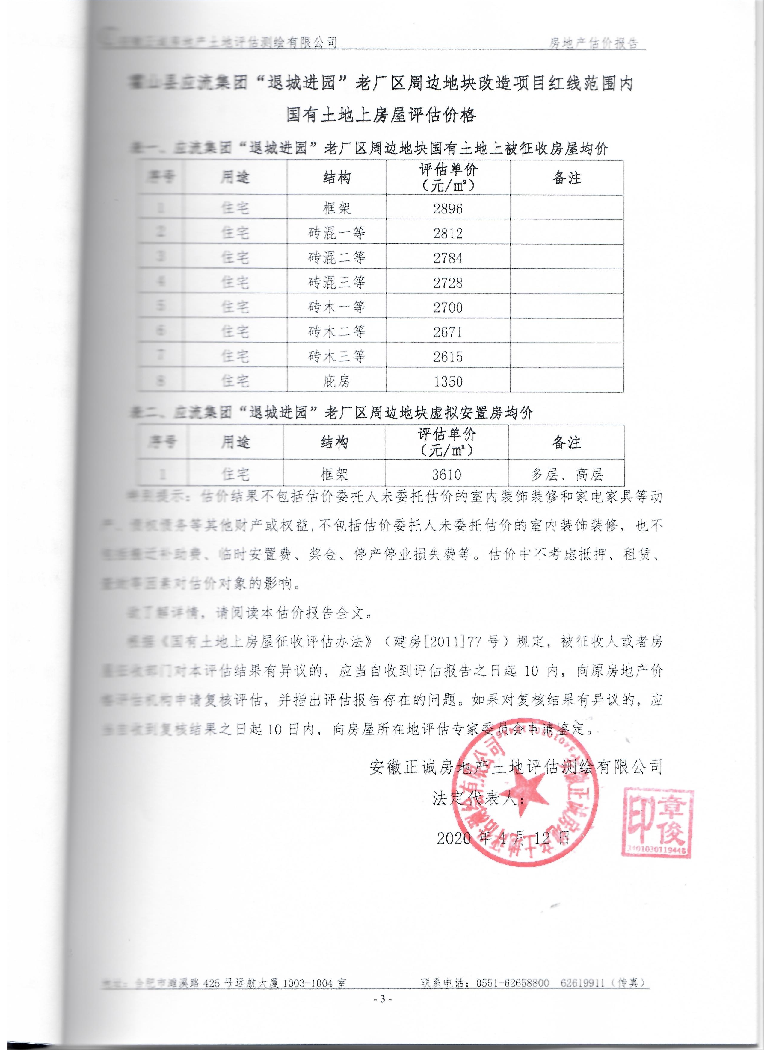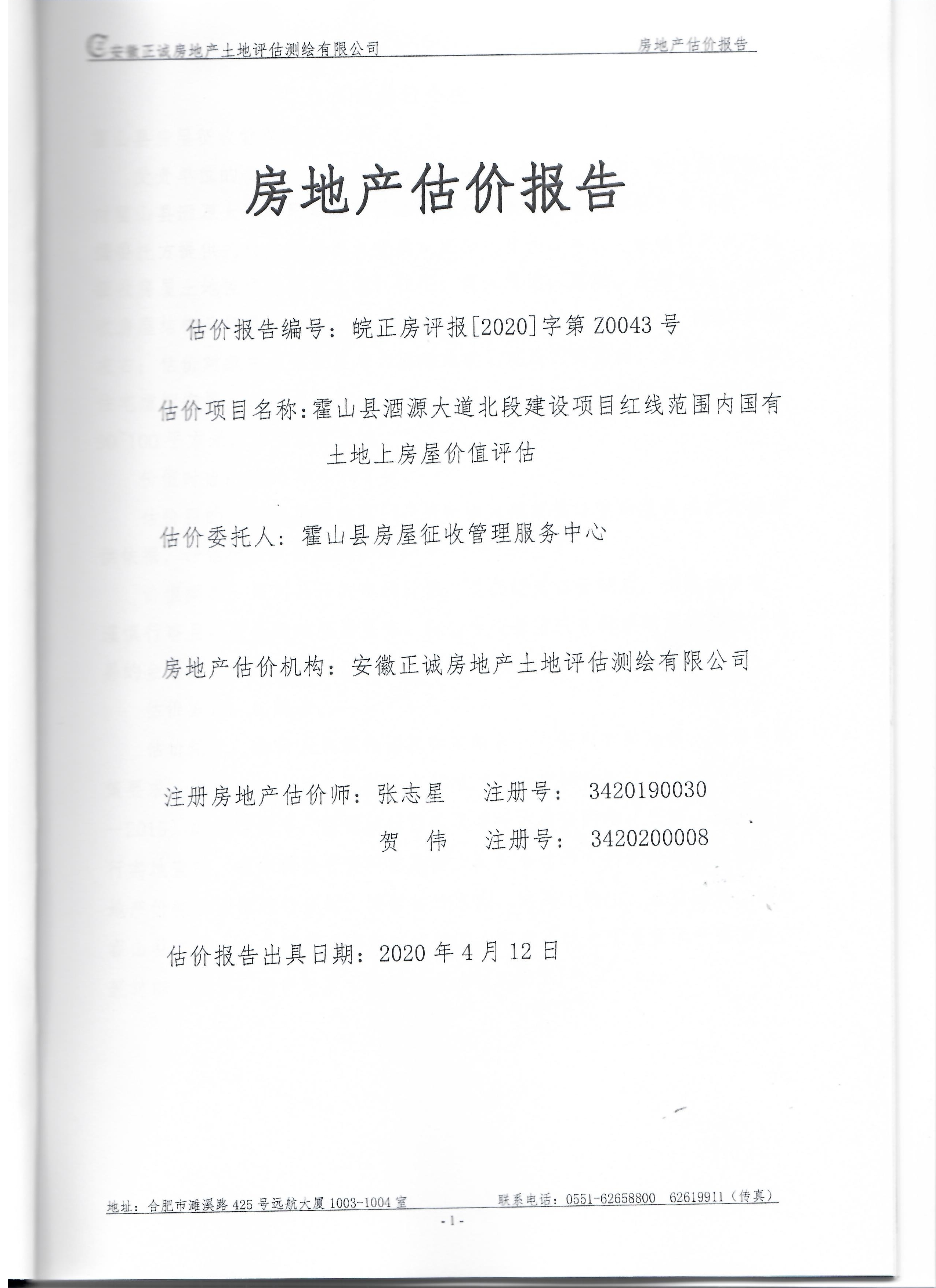 霍山县酒源大道北段、淠源东路及其周边、香料厂及其周边、新城小学迁建项目、应流集团“退城进园”项目及其周边等国有土地上房屋价值评估报告