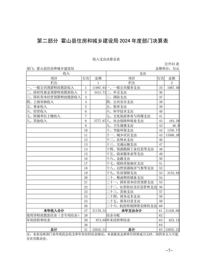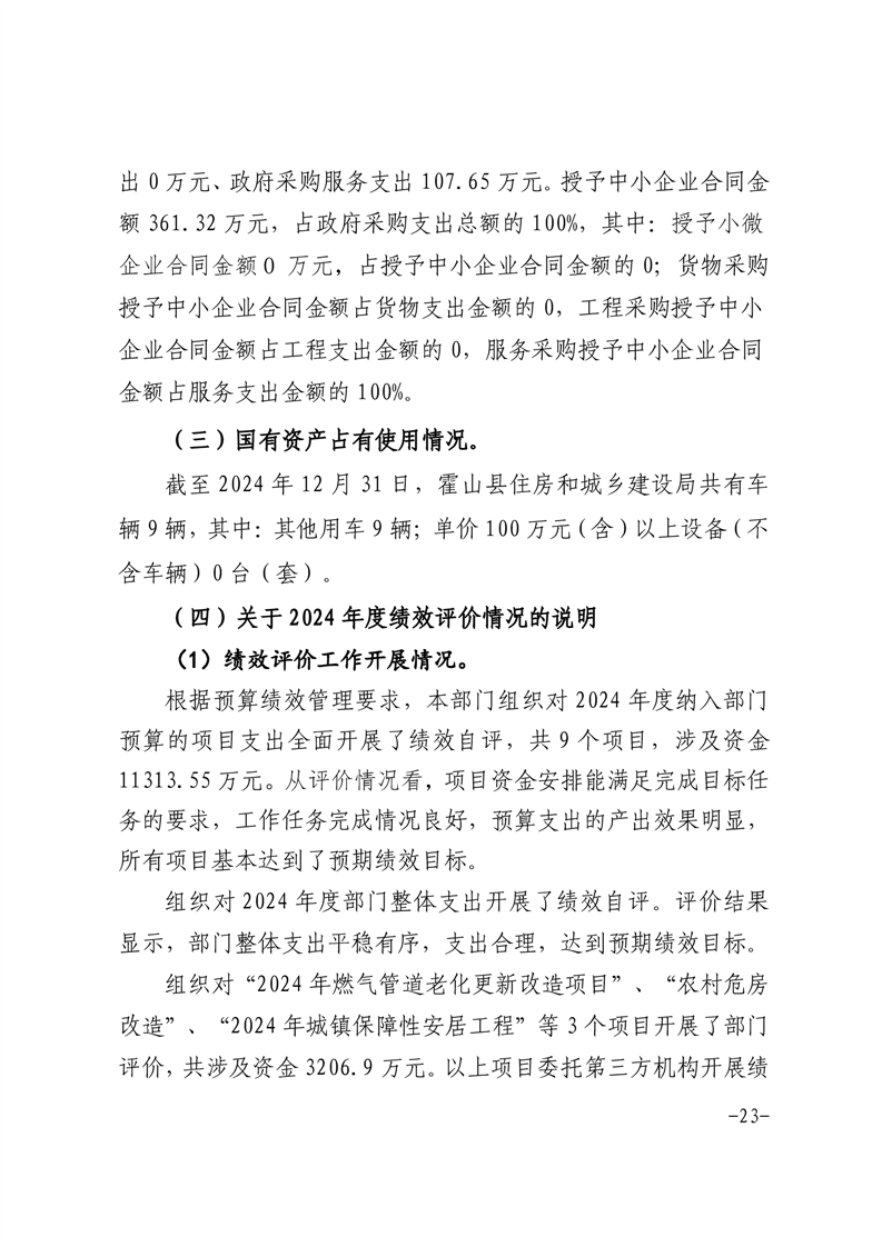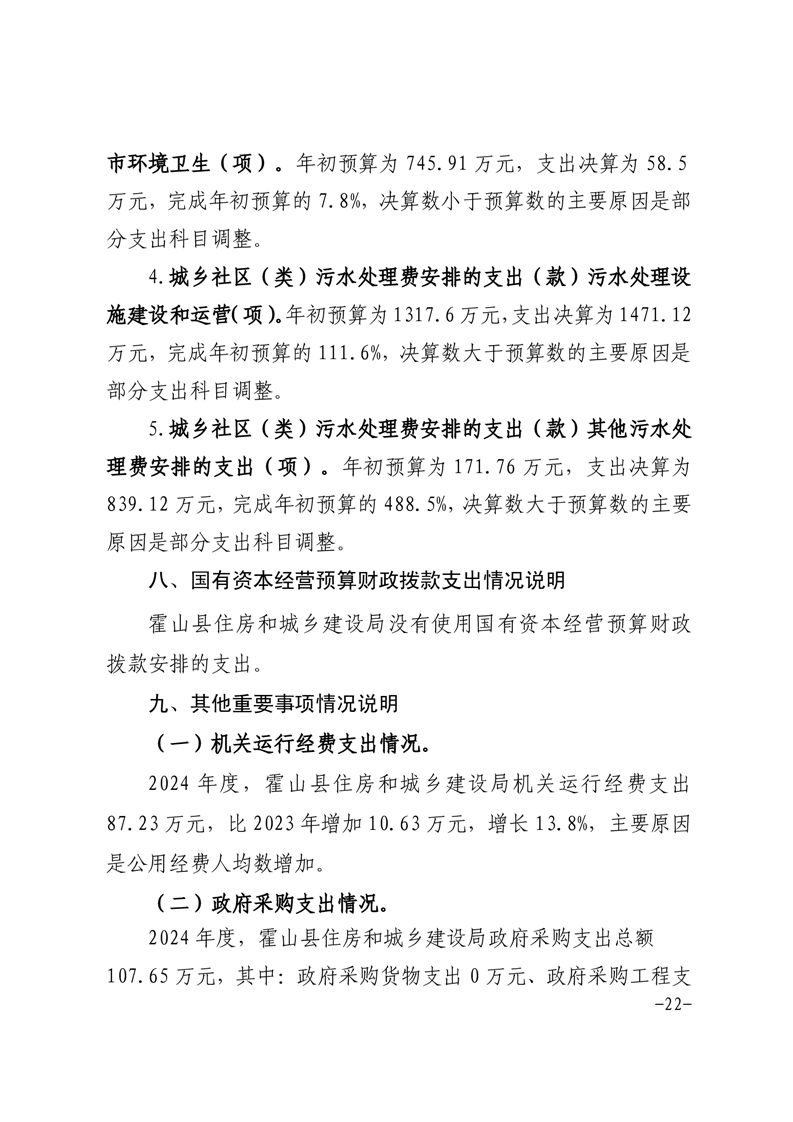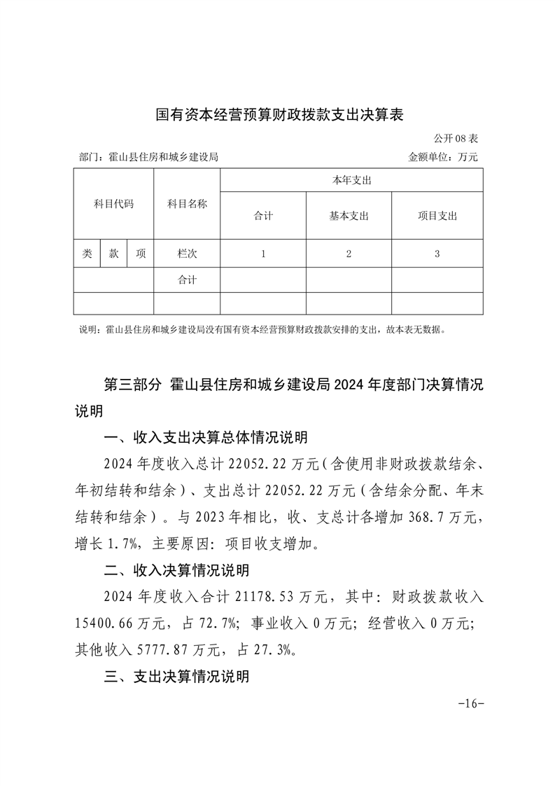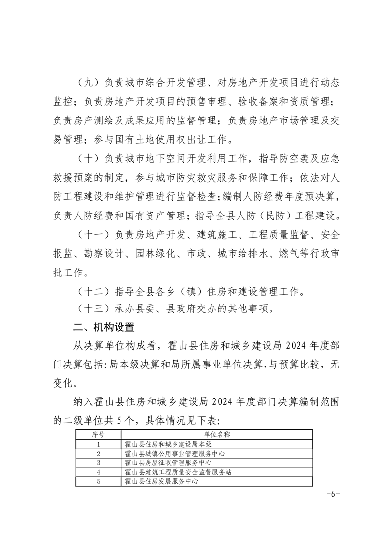 霍山县住房和城乡建设局2024年度部门决算