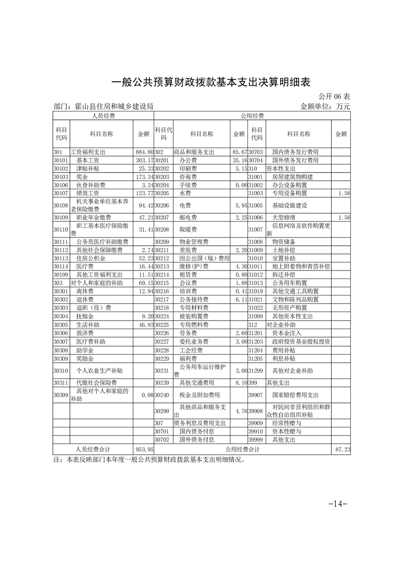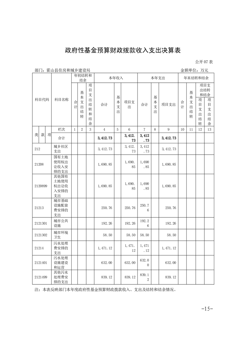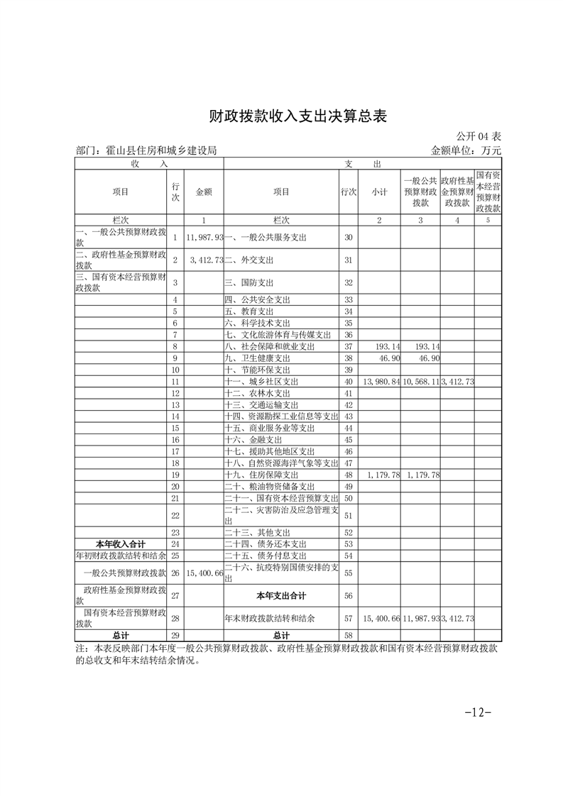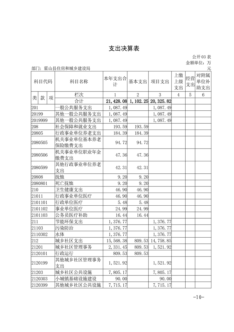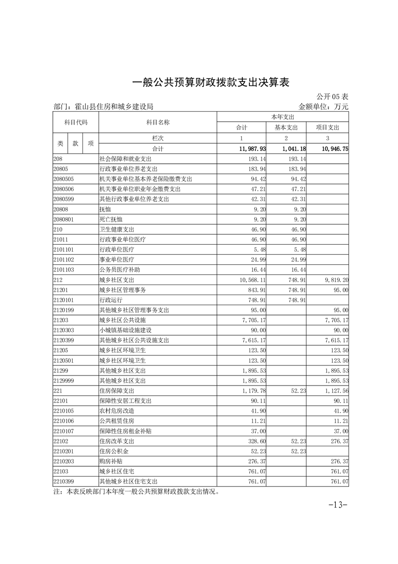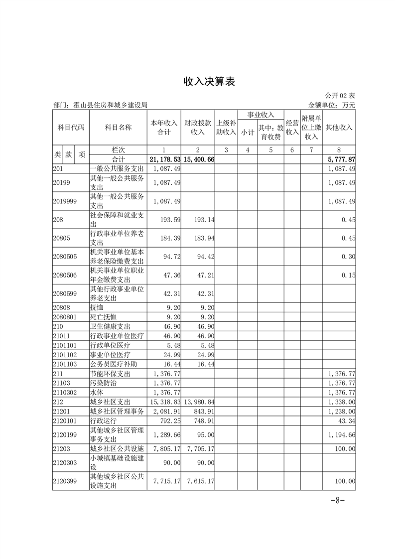 霍山县住房和城乡建设局2024年度部门决算