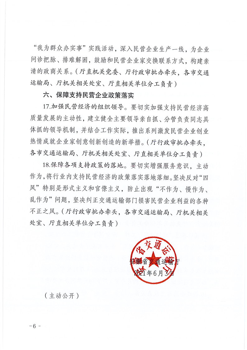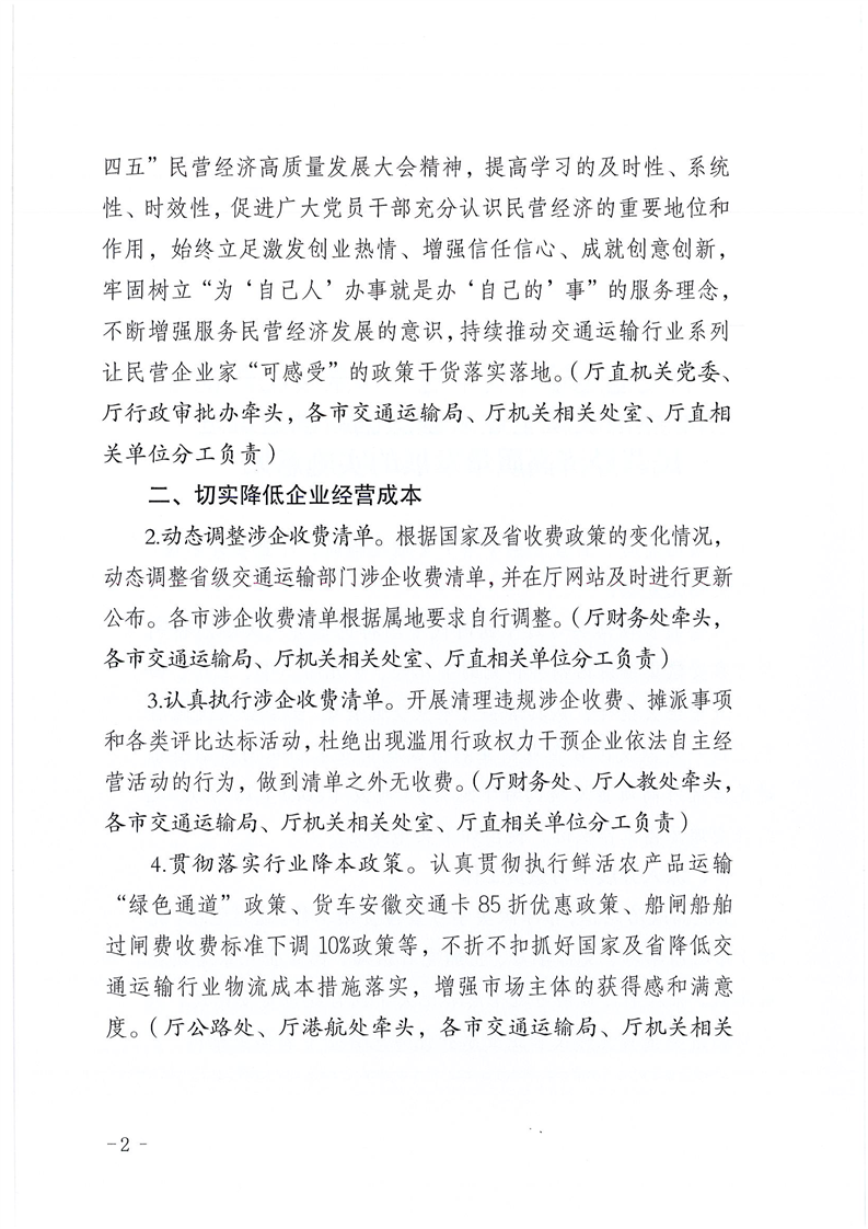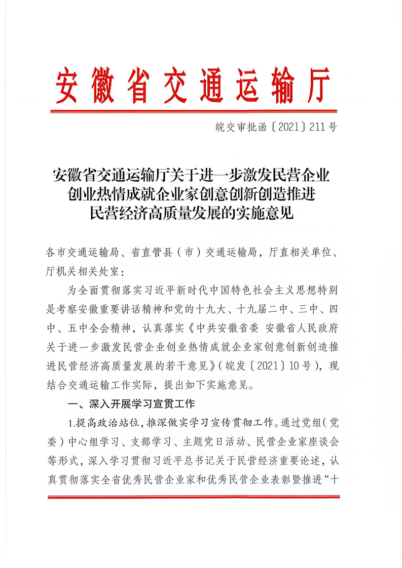 安徽省交通运输厅关于进一步激发民营企业创业热情成就企业家创意创新创造推进民营经济高质量发展的实施意见
