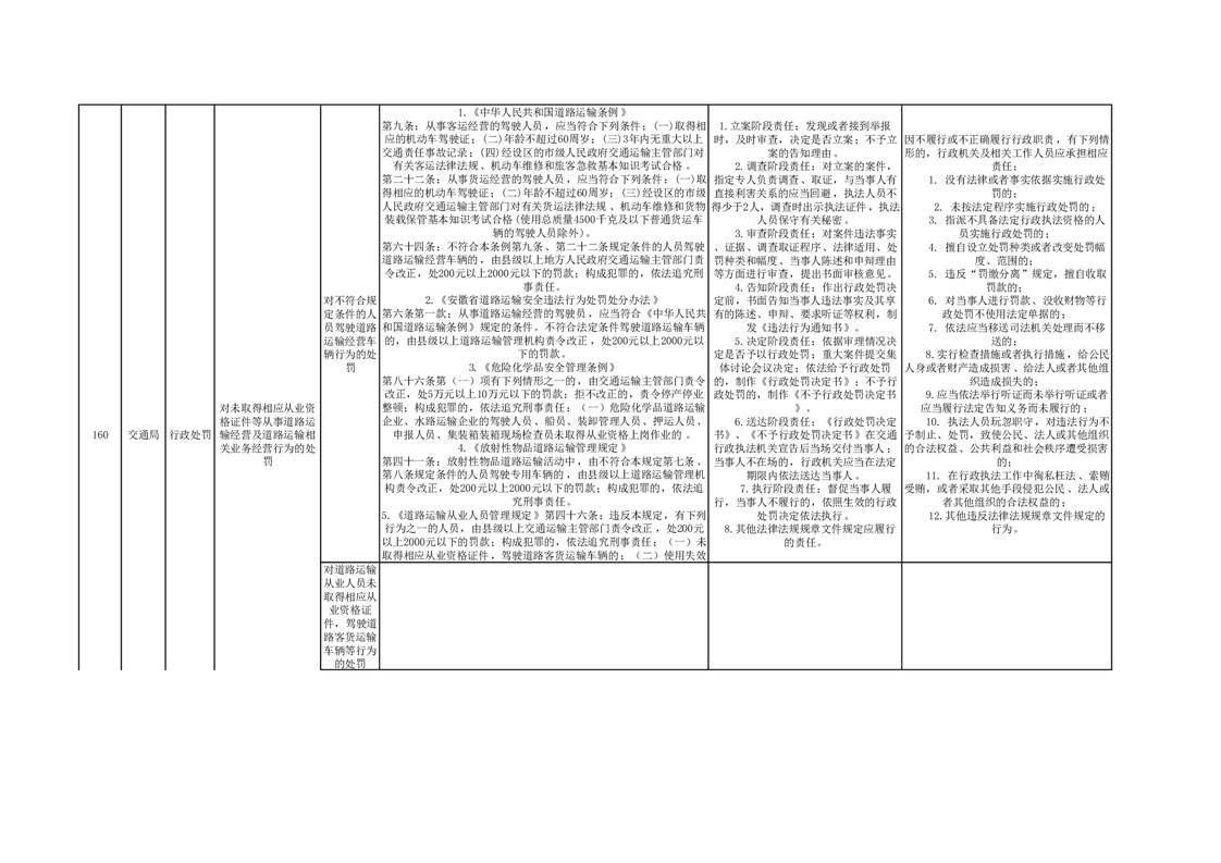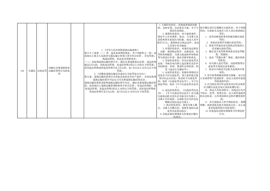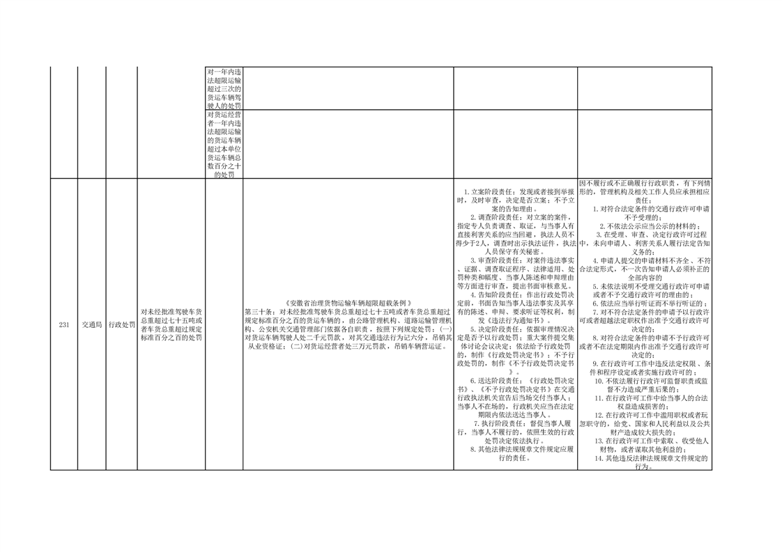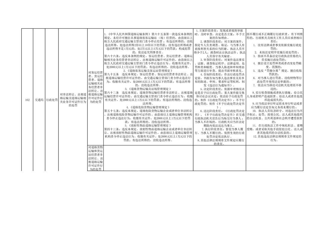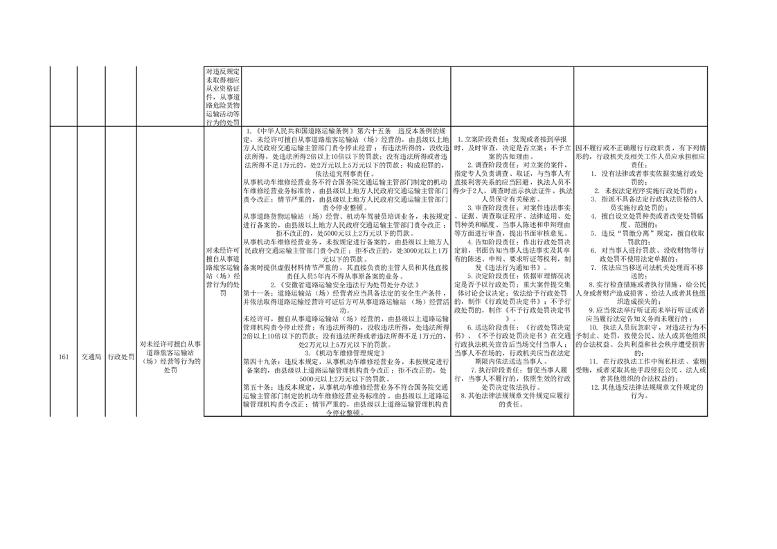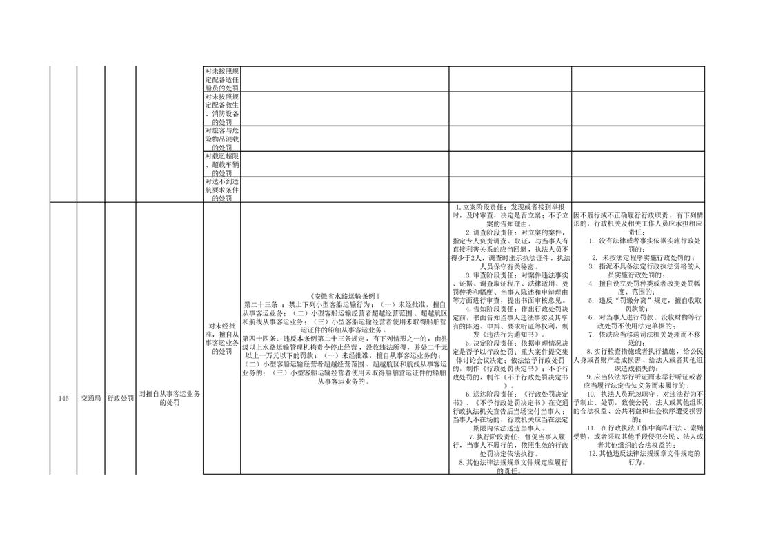 霍山县交通运输局行政处罚分目录(2023年版)